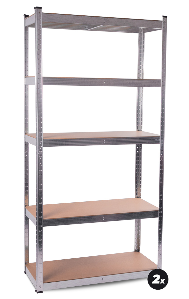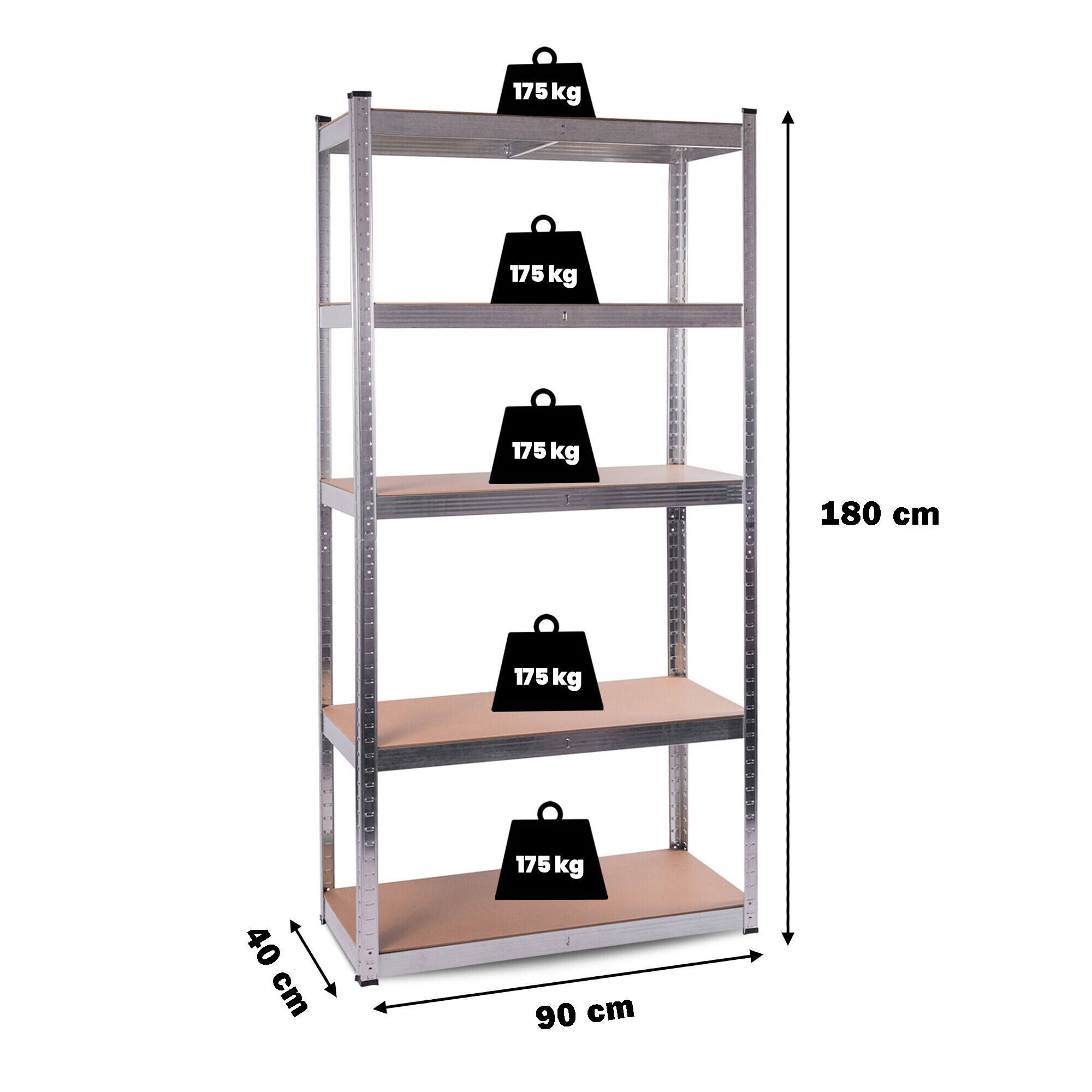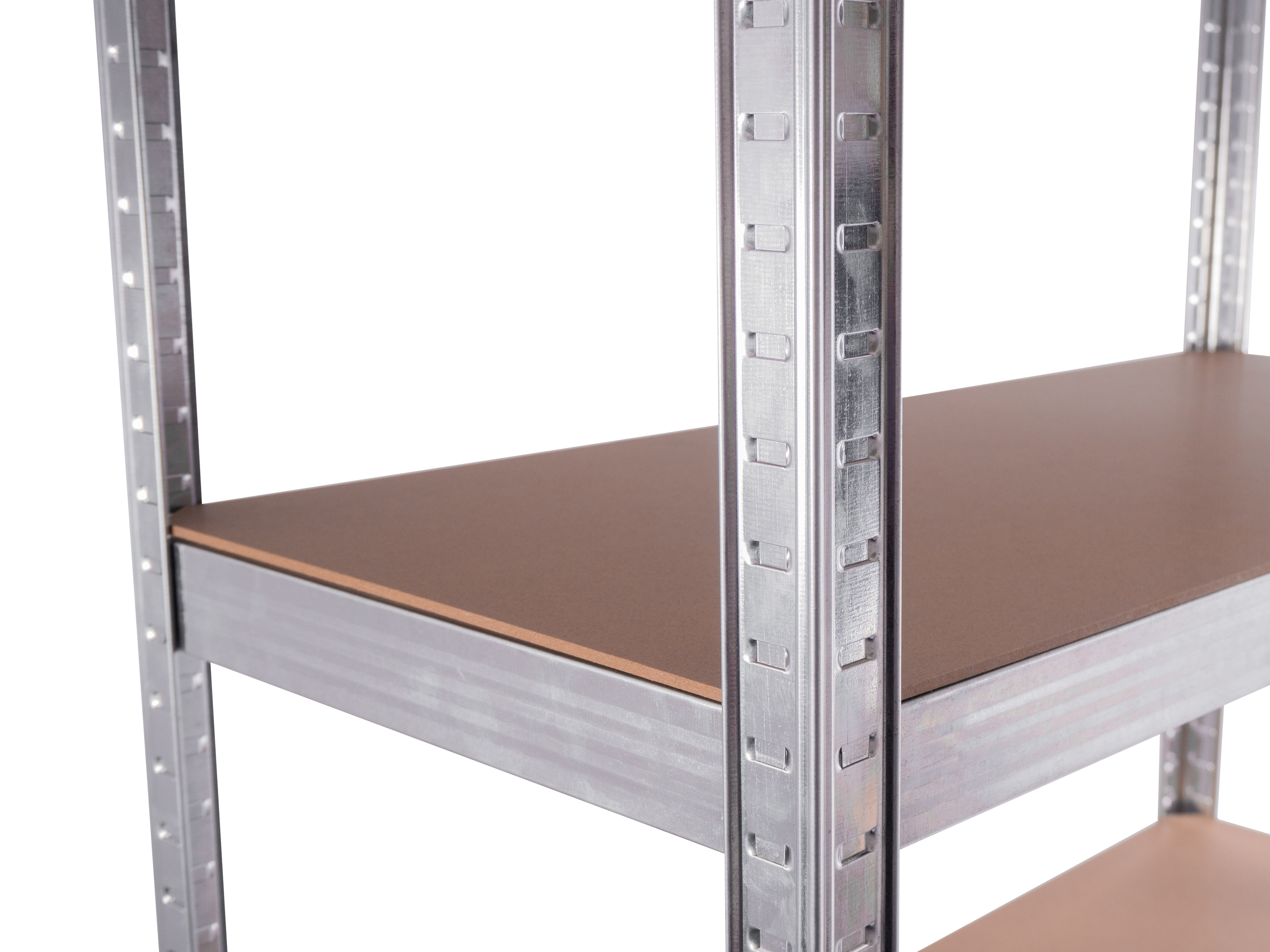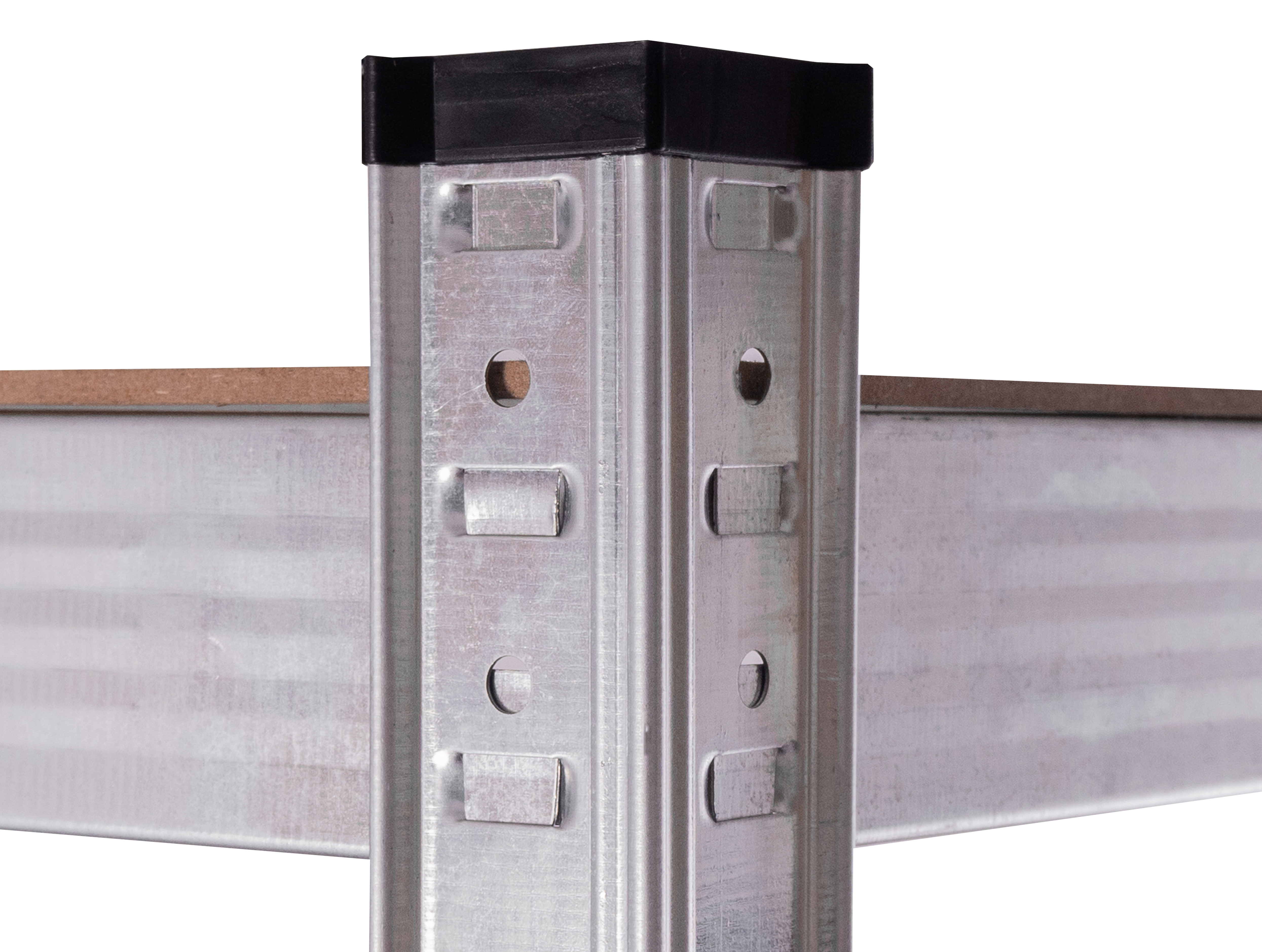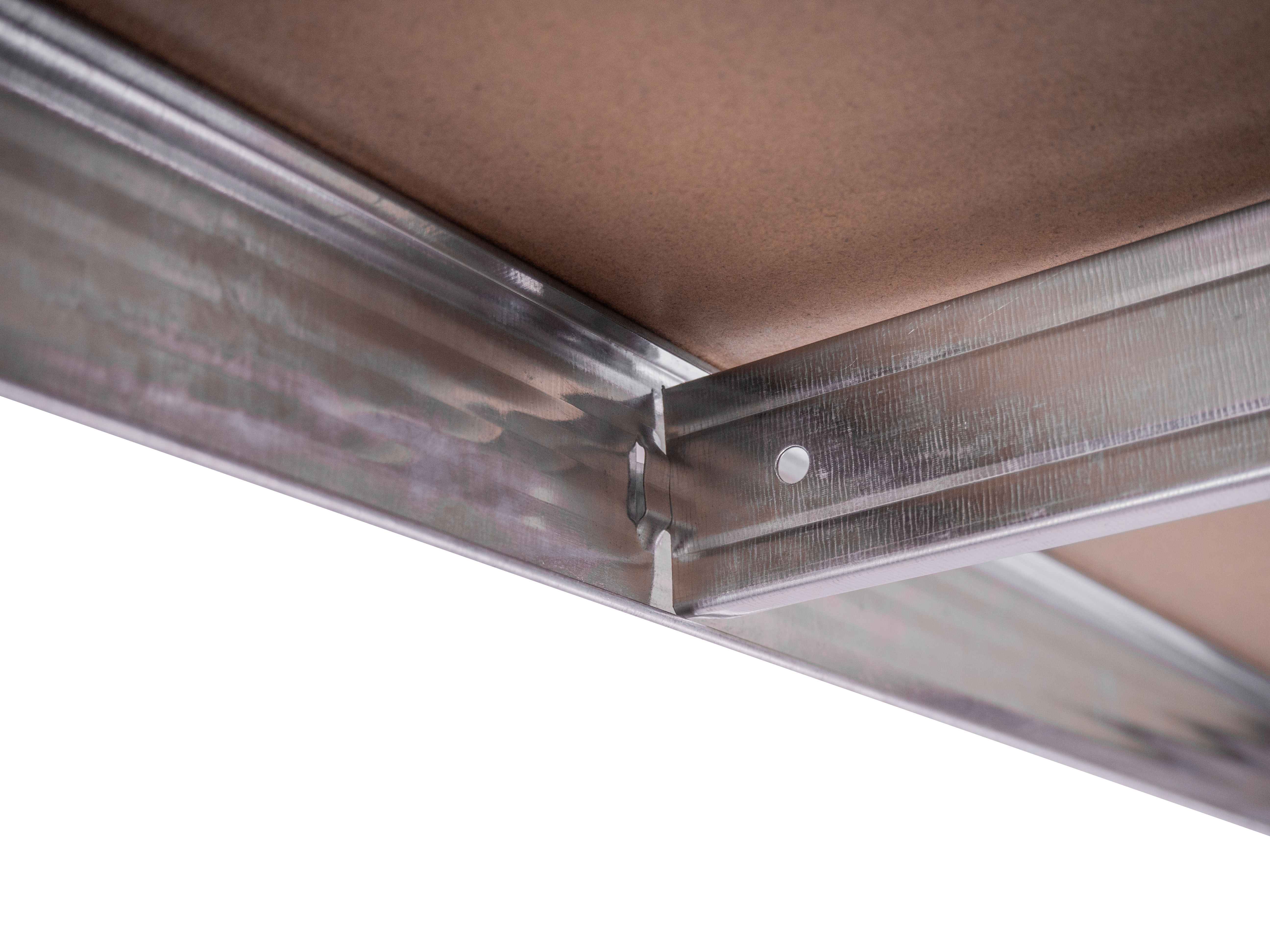 Okvir iz pocinkane jeklene srebrne barve zagotavlja stabilnost in veliko nosilnost približno 875 kg (za vsako polico približno 175 kg).