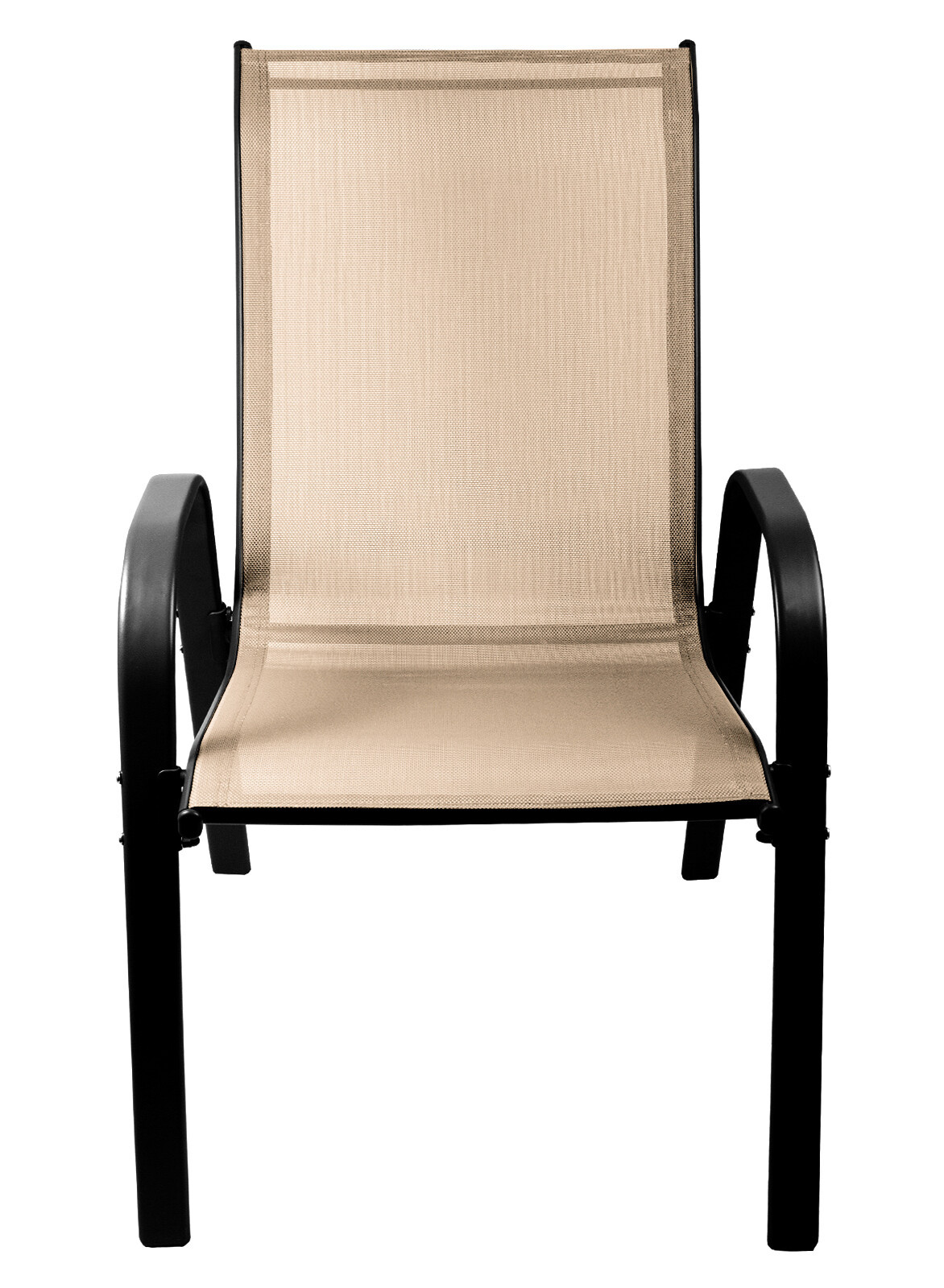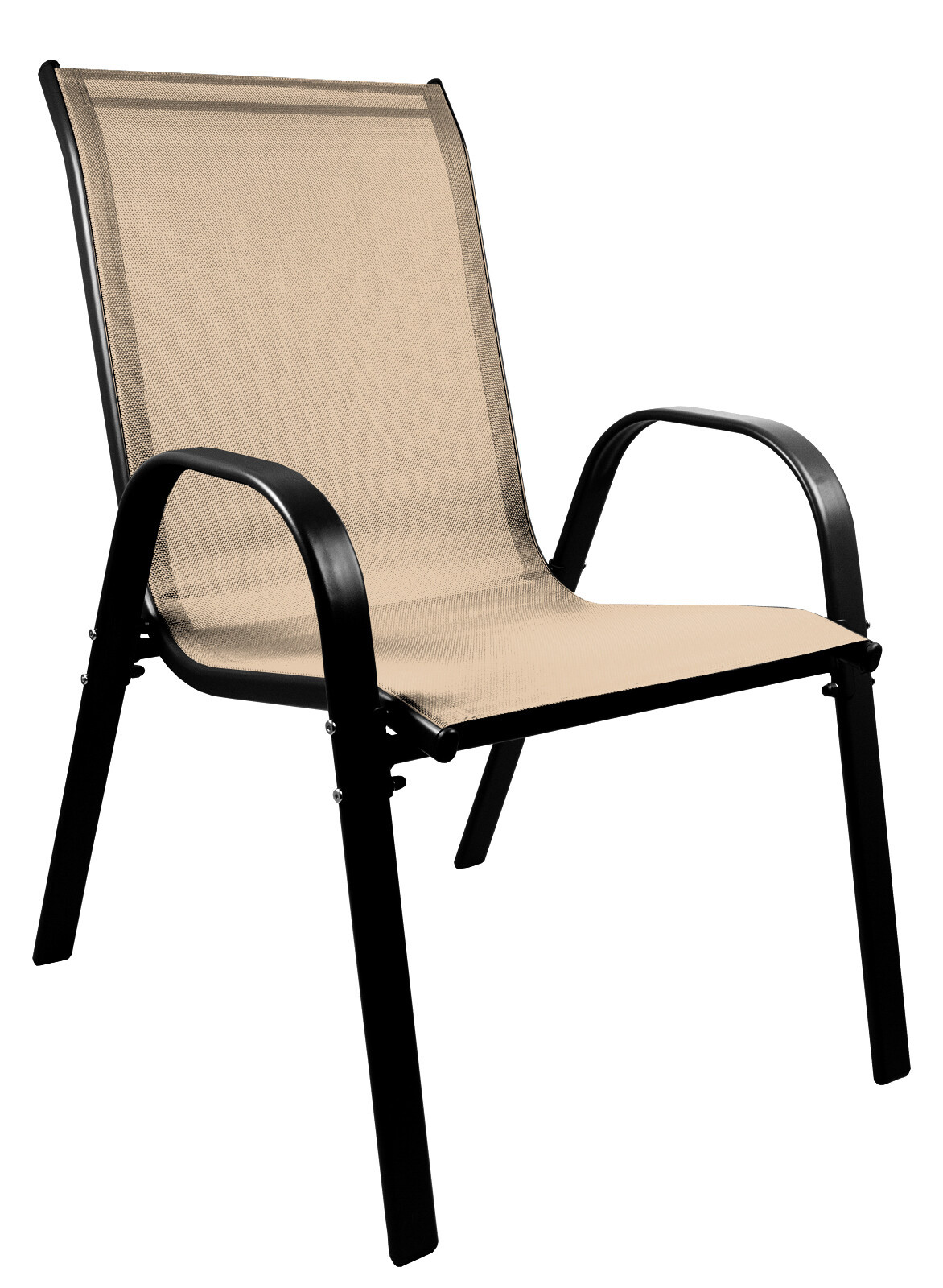 Stol je udoben, ima stabilno konstrukcijo, ki ne rjavi, in močno tekstilno prevleko, ki je vodoodporna.