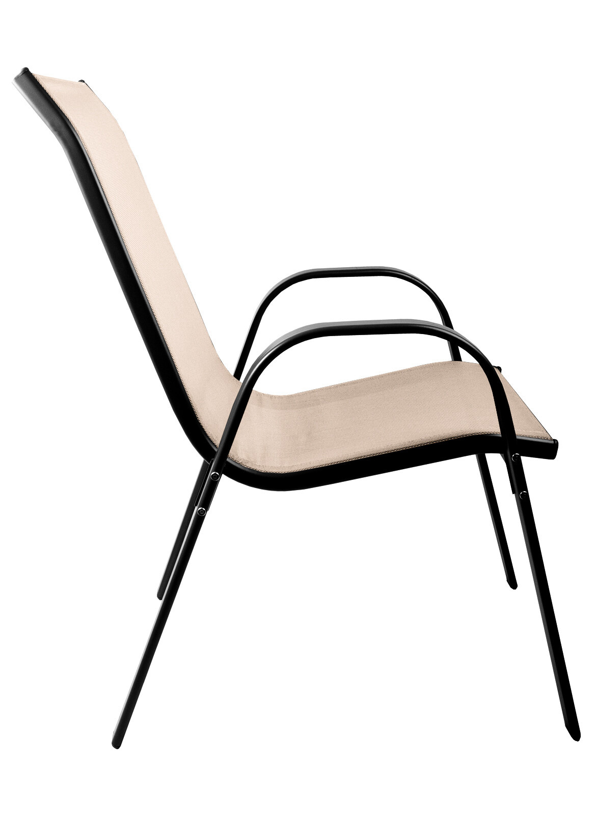 Vrtni stol z lahkim kovinskim okvirjem, v modernem dizajnu, primeren za vrtove, terase, verande, balkone ali plaže.