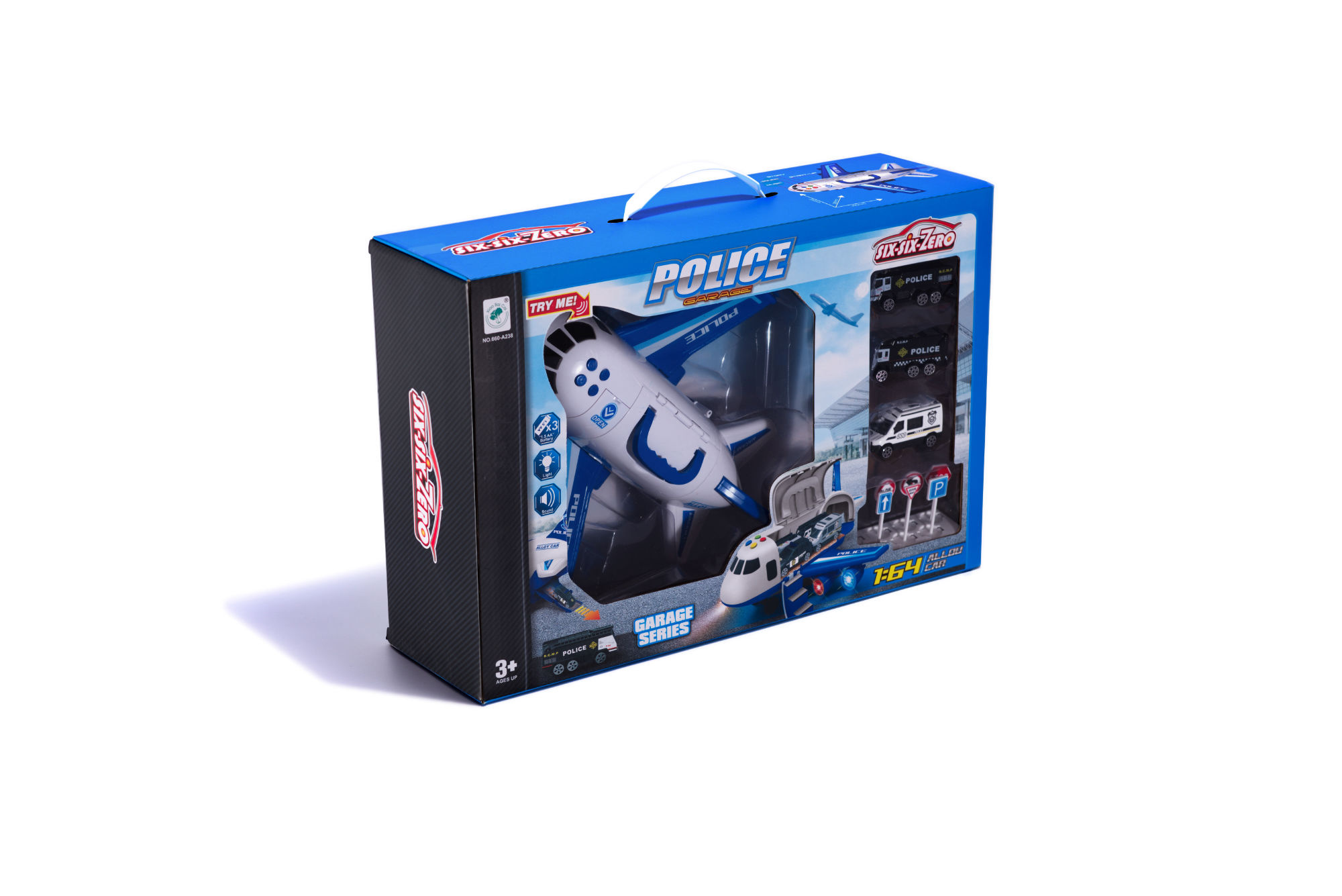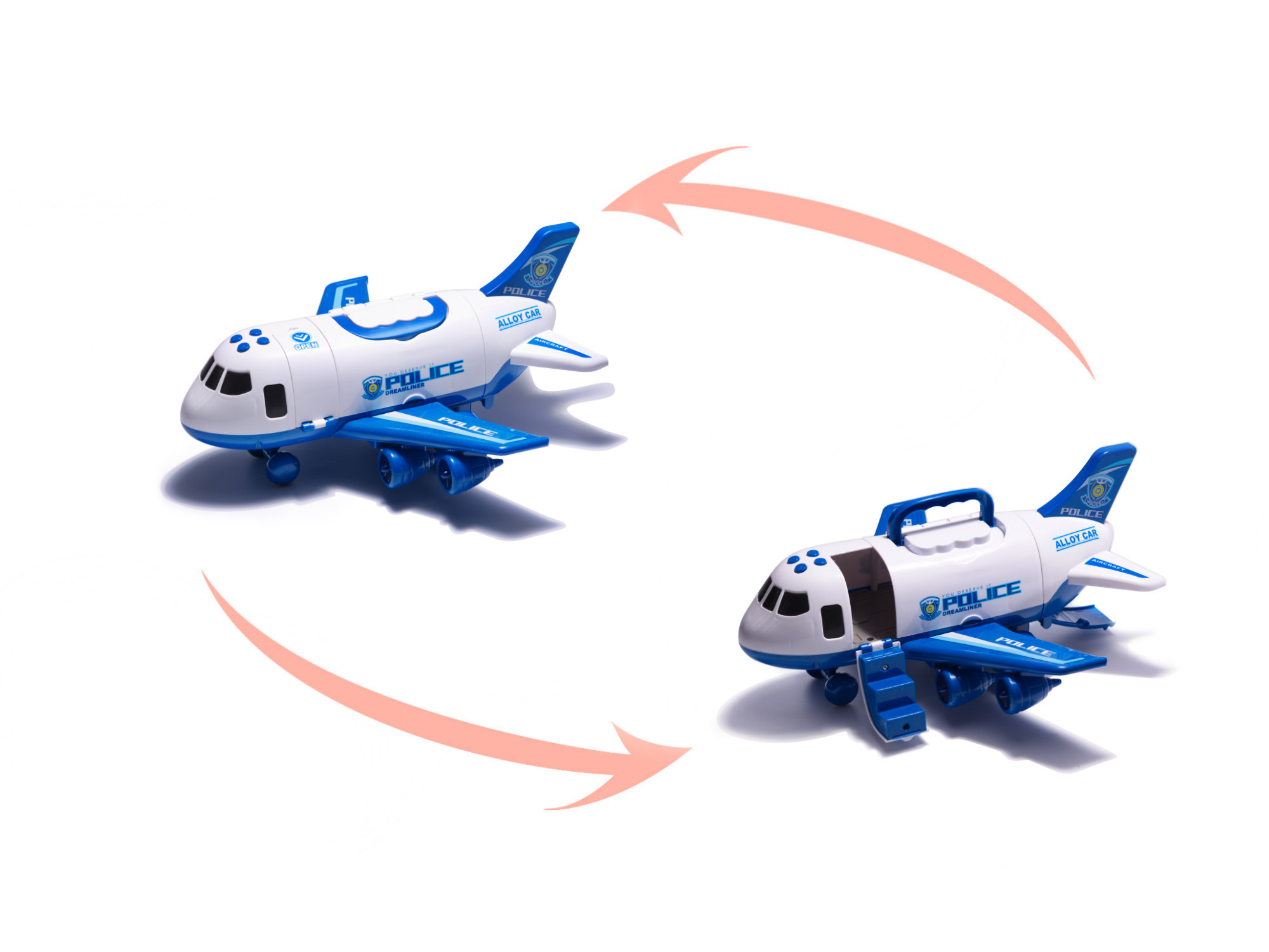 Veliko letalo ki lahko prevaža priložena vozila in figure na krovu.
