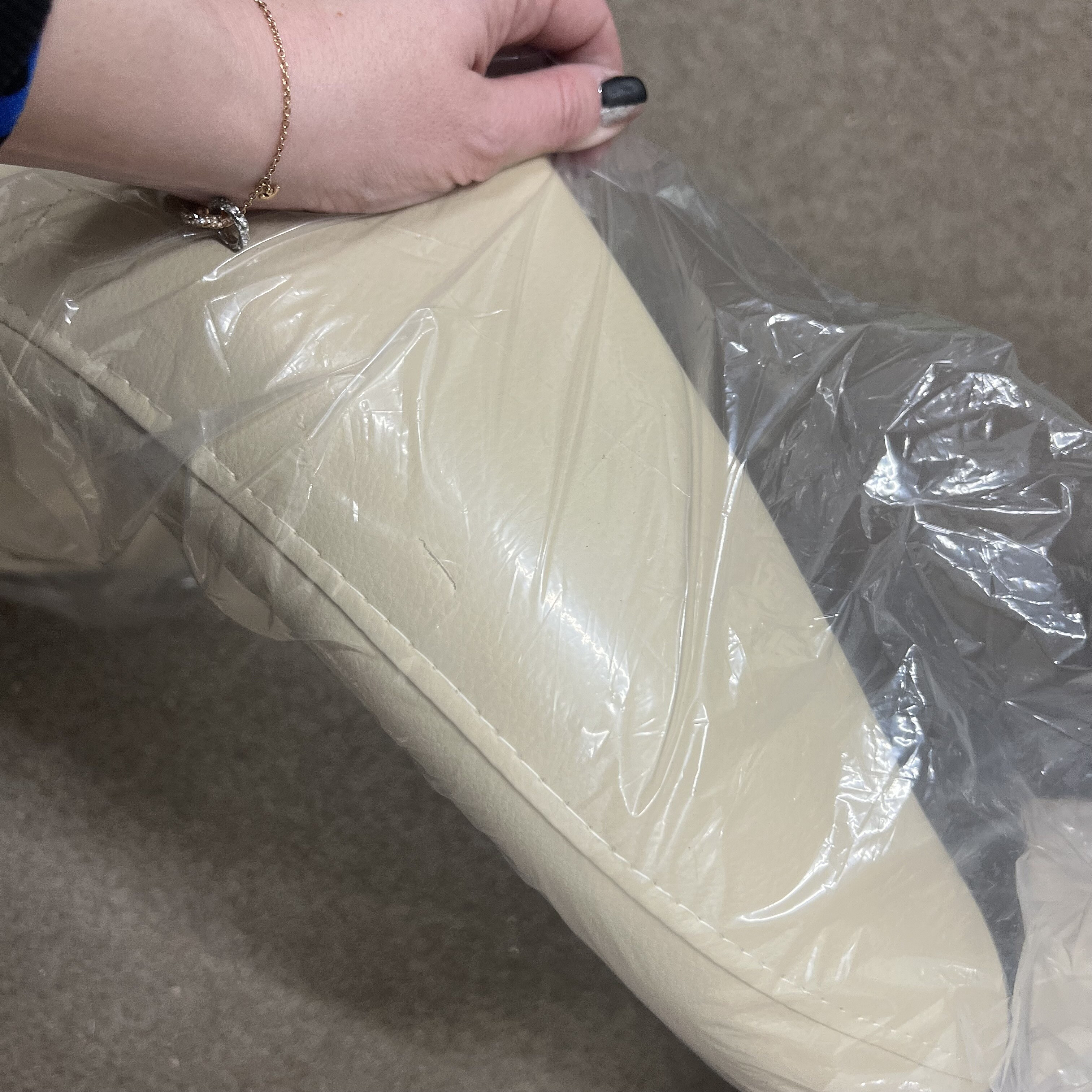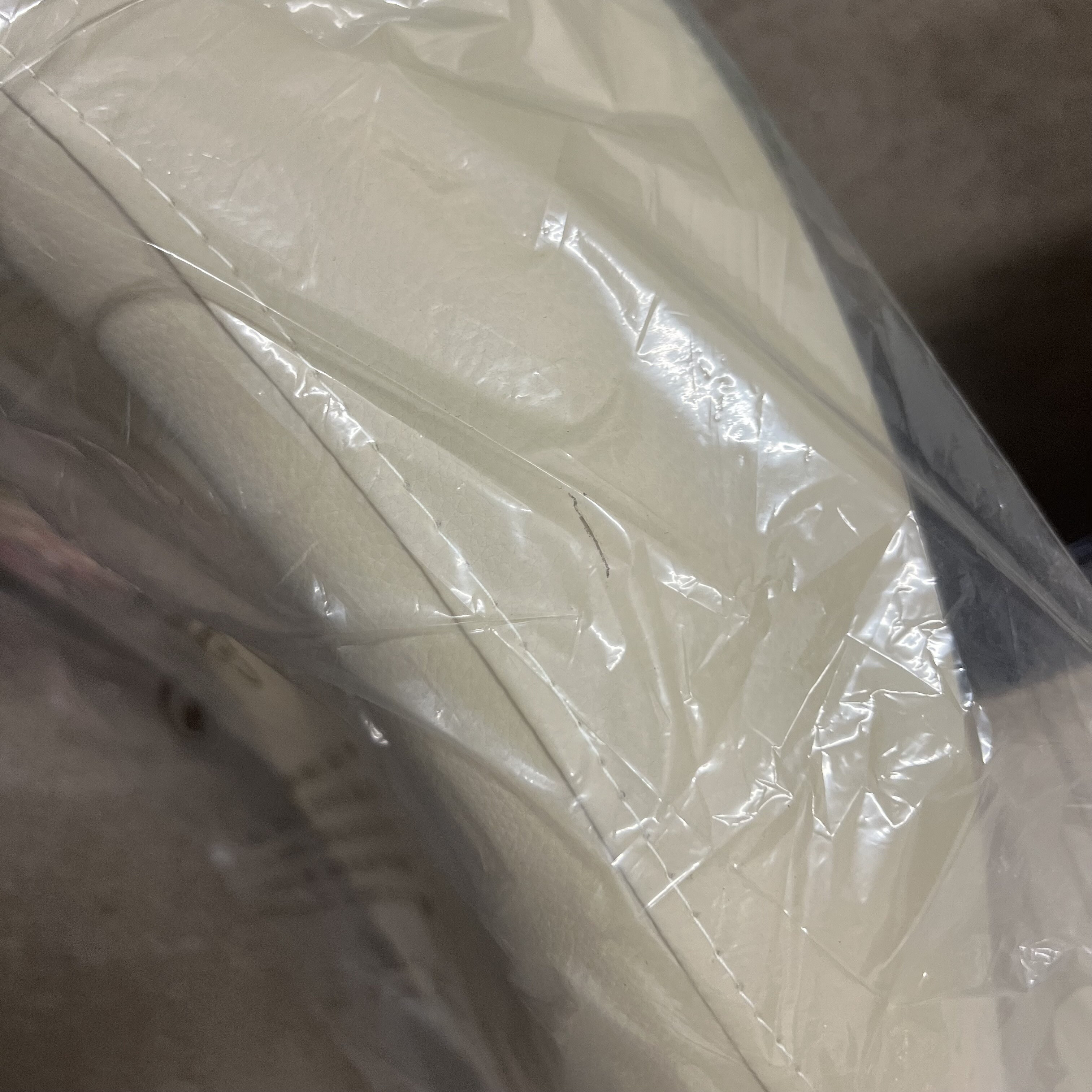 Sedež je na enem mestu ob strani poškodovan (zarezan).