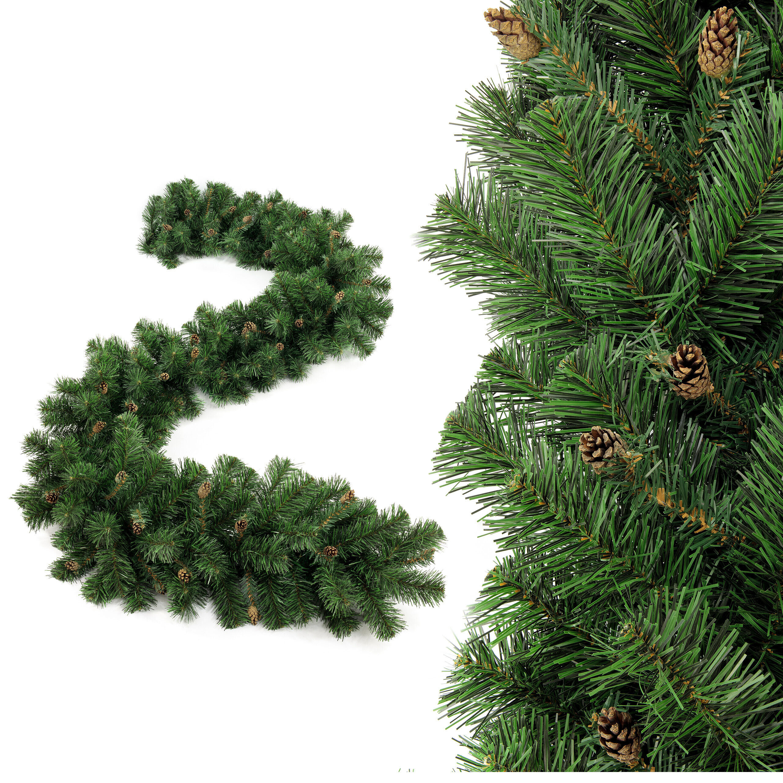 Božična girlanda iz umetnih vejic, ki spominjajo na pravo iglavje. Veriga je dolga 270 cm in ima zelo gosto sestavo vejic, zaradi česar se odlično dopolnjuje z drugimi okraski.