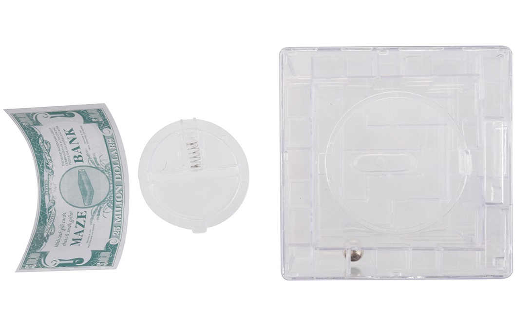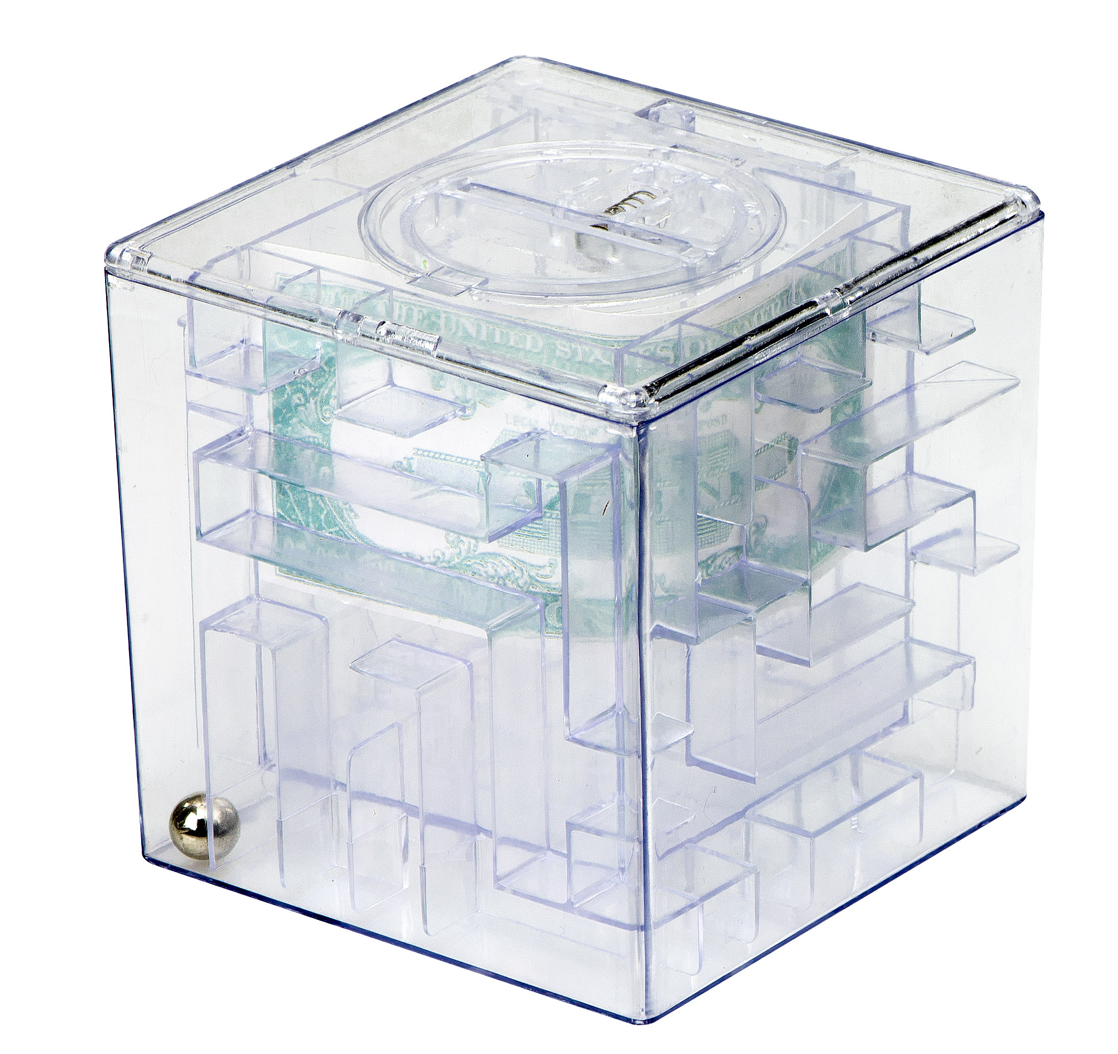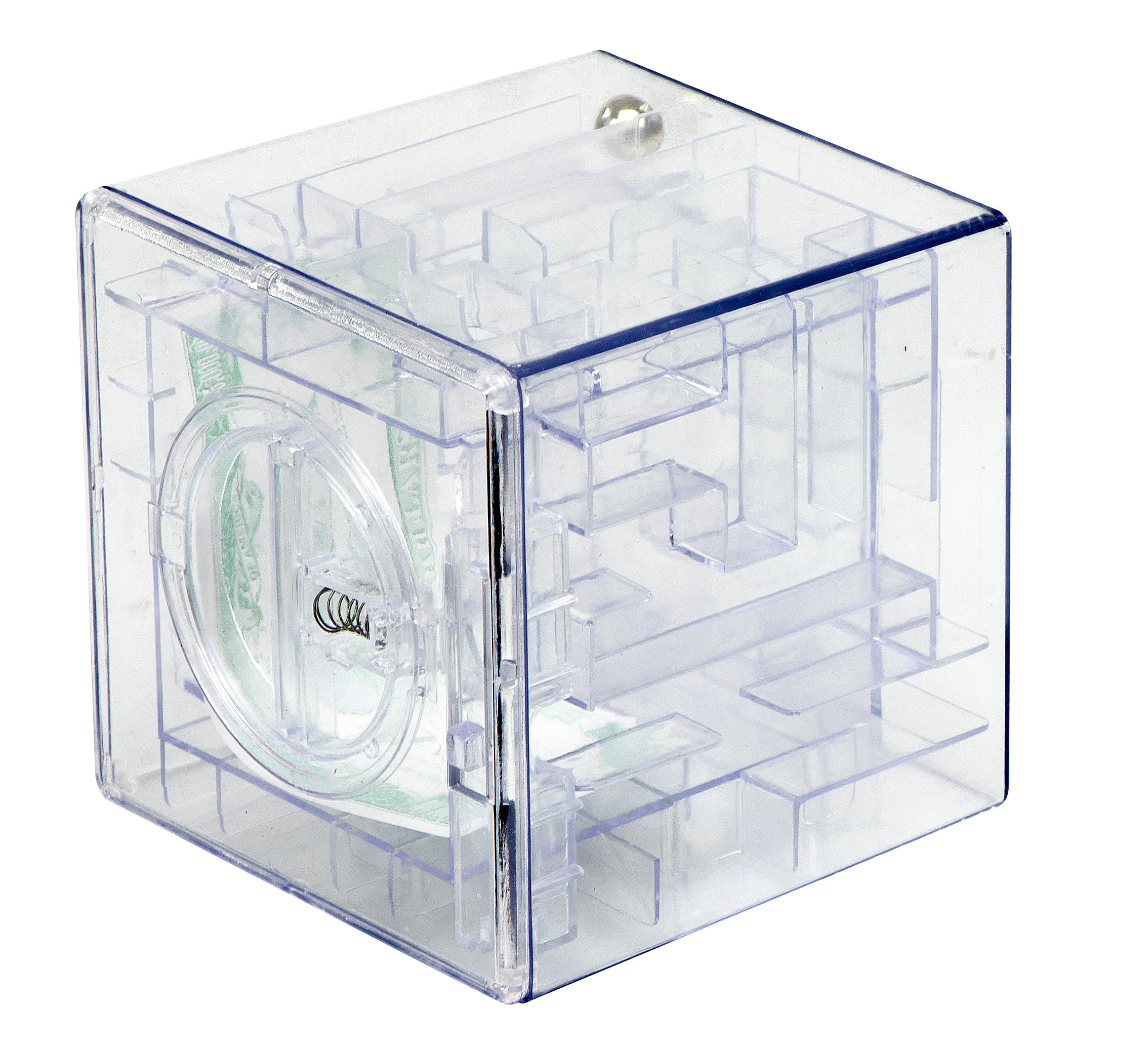 Senzacionalna 3D zakladnica z labirintom.Popoln pripomoček za tiste, ki poskušajo prihraniti denar.Da bi dobili denar iz pujska, morate najprej premagati poligon z ovirami.