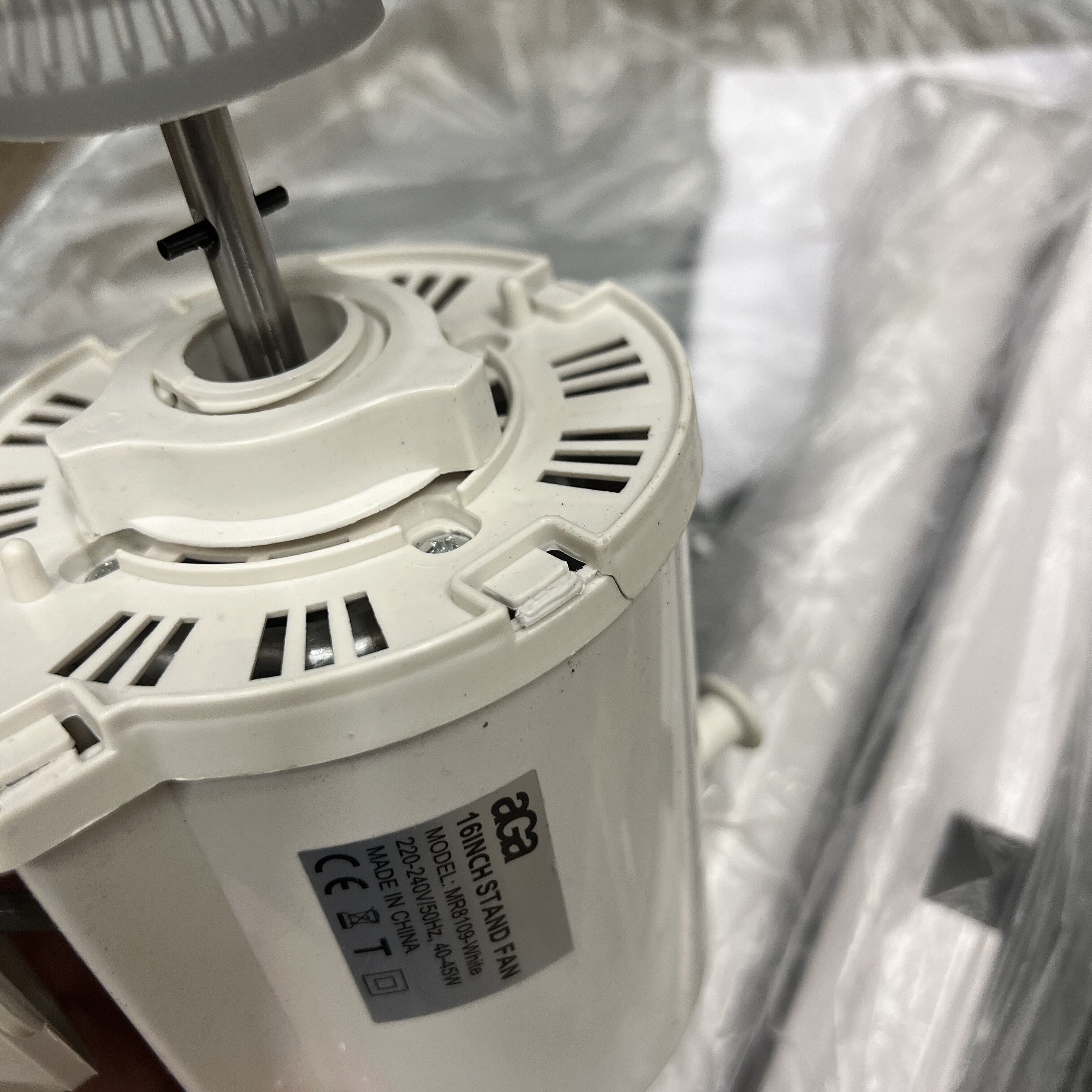 Ta ventilator je popolnoma funkcionalen, vendar ima na enem mestu počeno ohišje in embalaža izvira iz drugega modela.