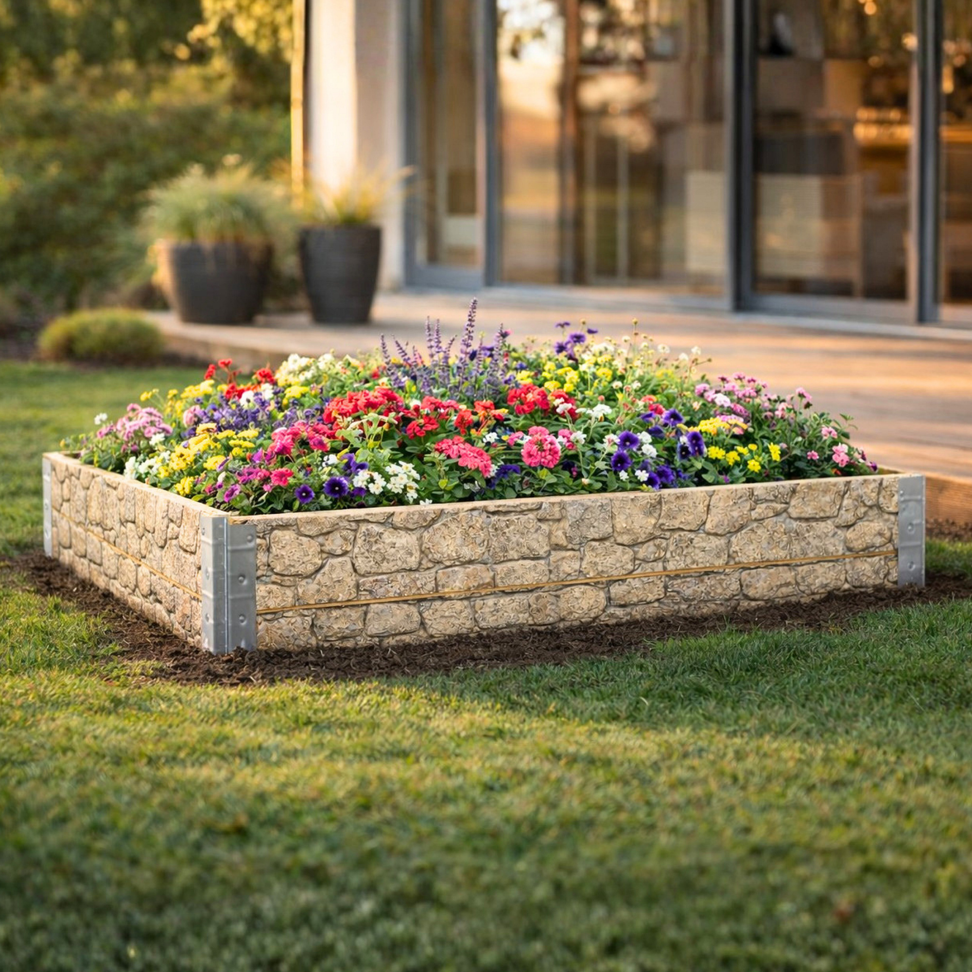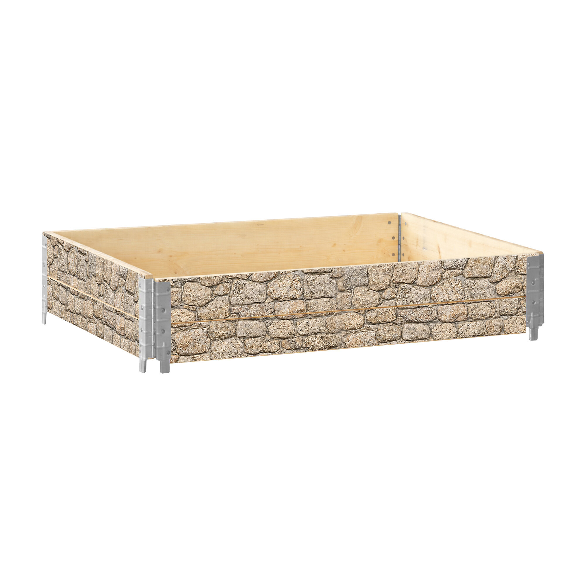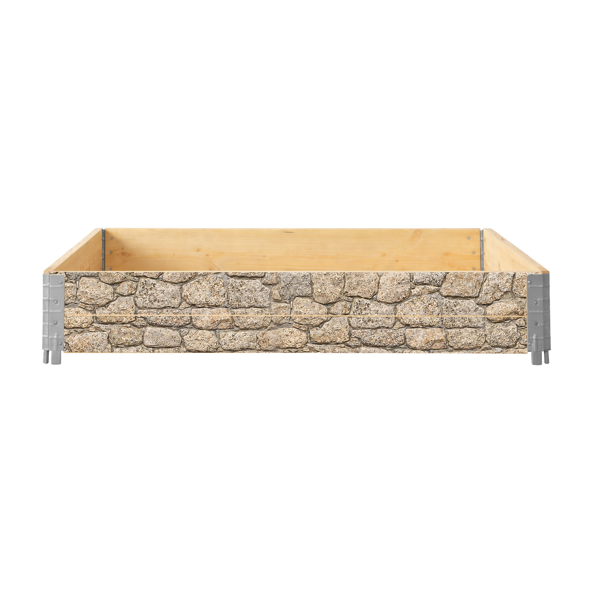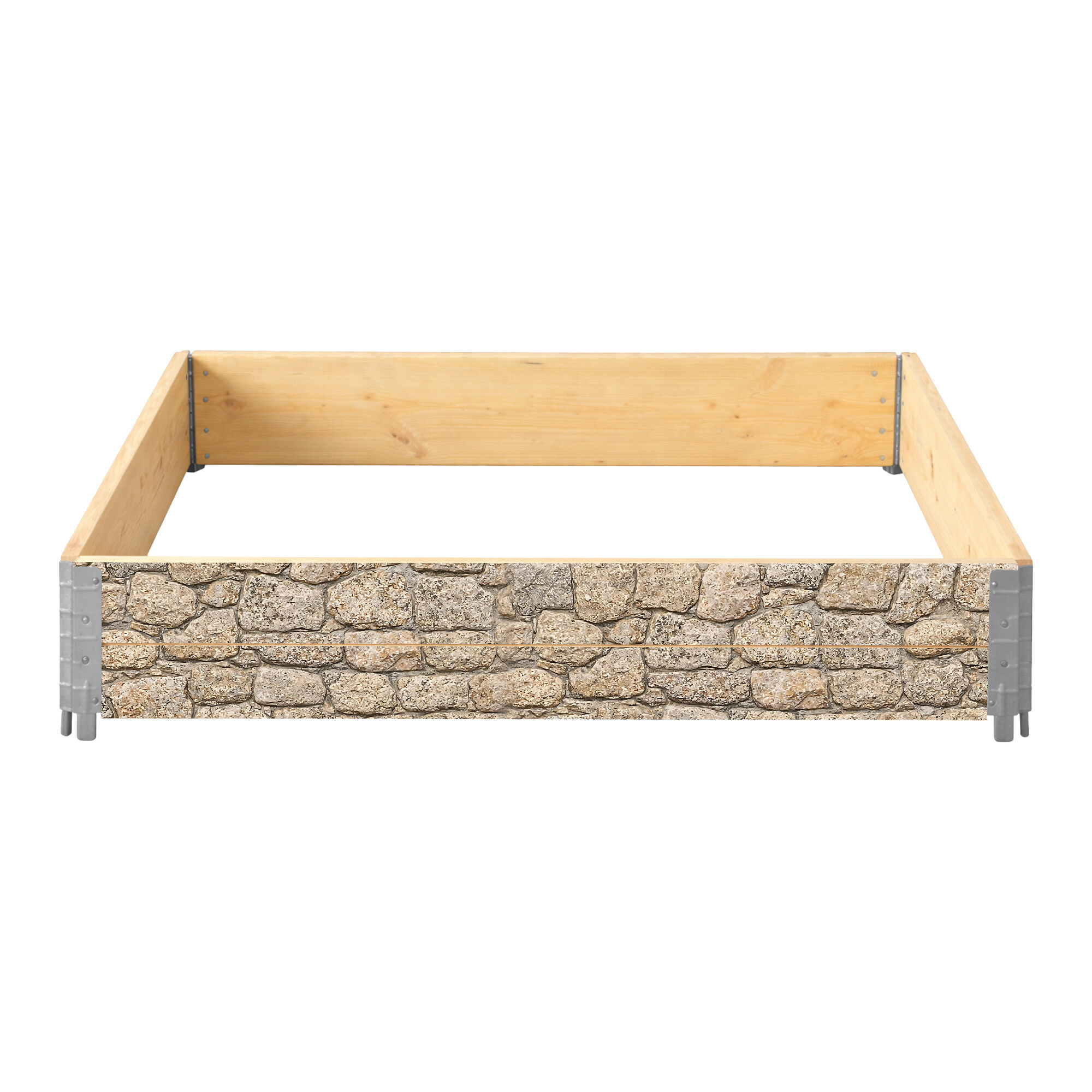 Greda je izdelana iz borovega lesa s certifikatom IPPC. Zunanja stran je dopolnjena z grafiko kamna, ki poudarja njegov vrtni videz in se dobro prilega zunanjemu okolju. Dimenzija 120 × 80 cm ponuja dovolj prostora za domačo pridelavo običajnih vrst zelenjave, zelišč, jagod in cvetlic. Višina 40 cm omogoča ustvarjanje plasti zemlje, primerne za različne vrste sajenja.