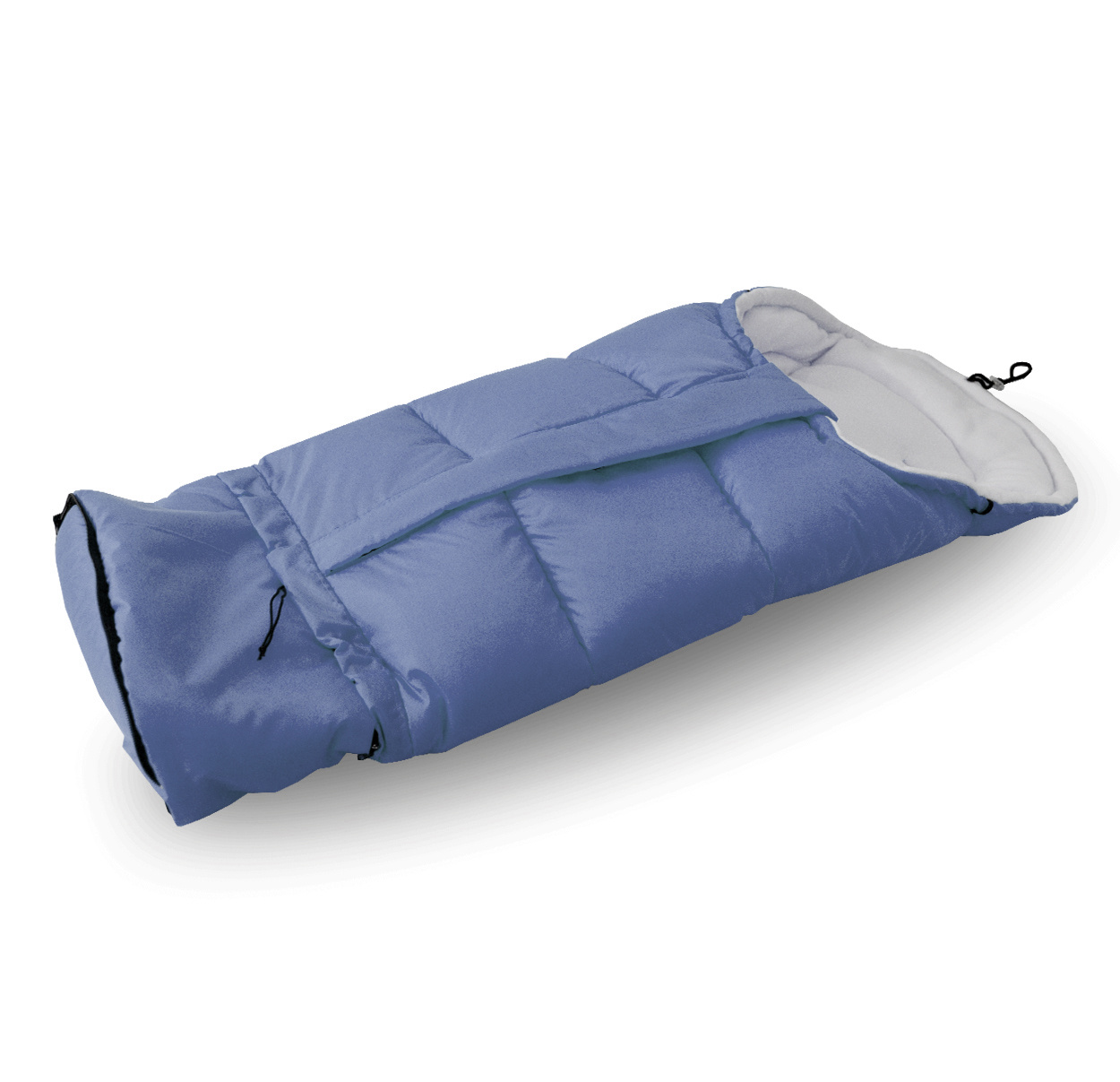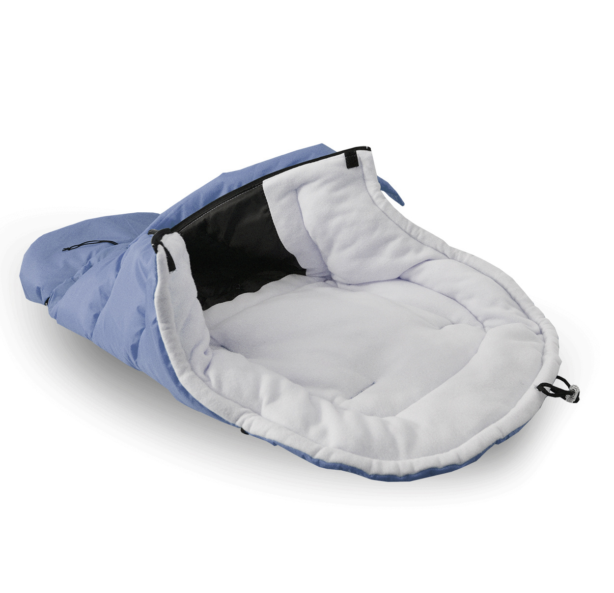 Otroška vreča ima zadrgo, odprtine za 5-točkovne varnostne pasove in gumijaste zaponke, ki omogočajo pritrditev na voziček.