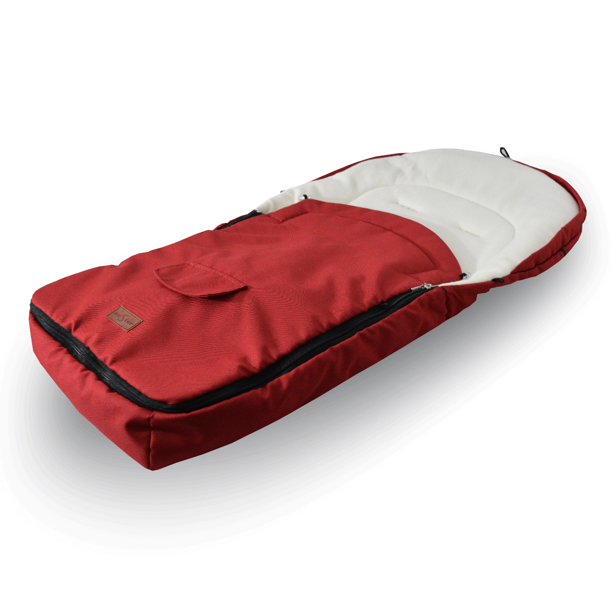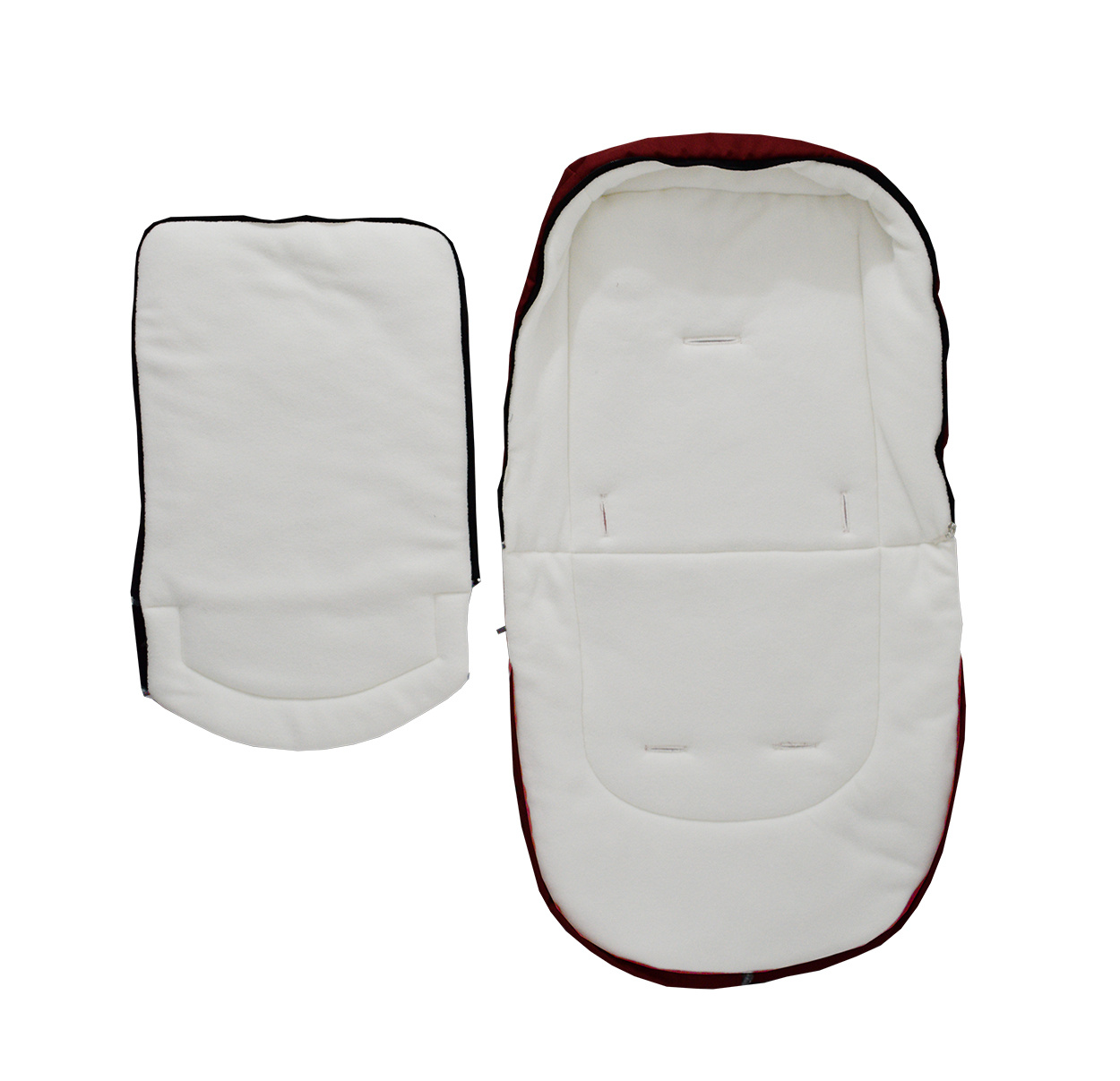 Otroška vreča ima zadrgo, odprtine za 5-točkovne varnostne pasove in gumijaste zaponke, ki omogočajo pritrditev na voziček.