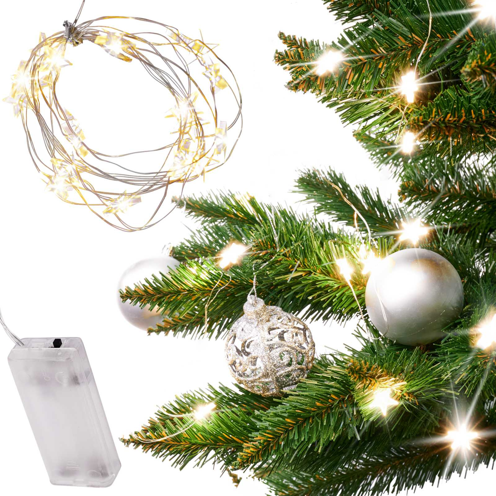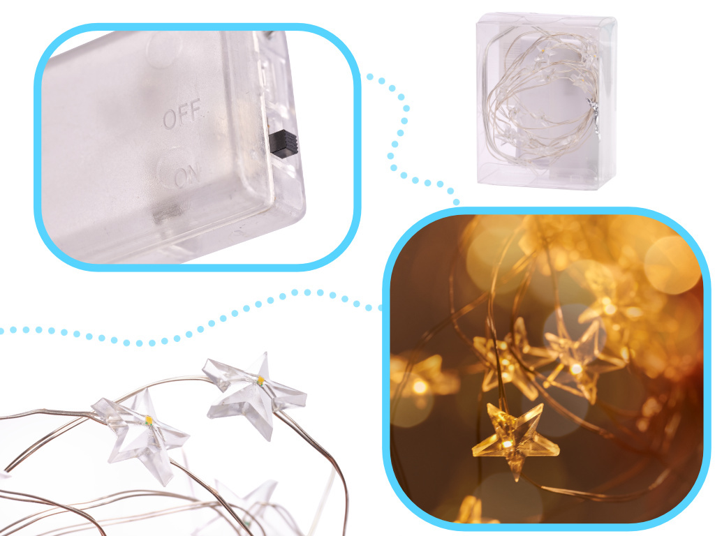 Lučičke so idealne za osvetlitev vsakega božičnega drevesa. Ker je žica tanka, jo zlahka skrijete v iglavci.Upogljiva žica z LED zvezdicami je odlična osnova za najrazličnejše ustvarjalne projekte. Zvezdice na tanki žici so same po sebi popolna dekoracija! Lahko služijo na primer za okrasitev božične mize. Lučke lahko uporabite kjerkoli želite! Niste omejeni z vtičnicami in kabli.