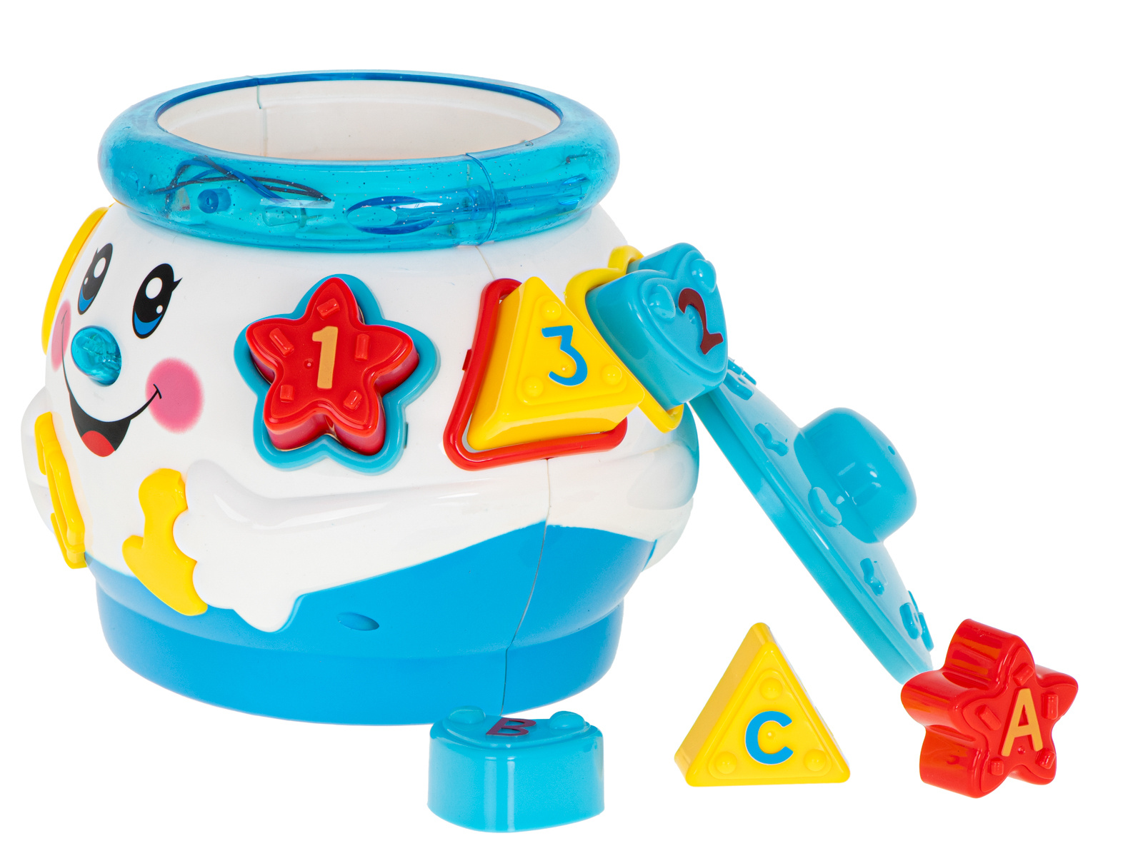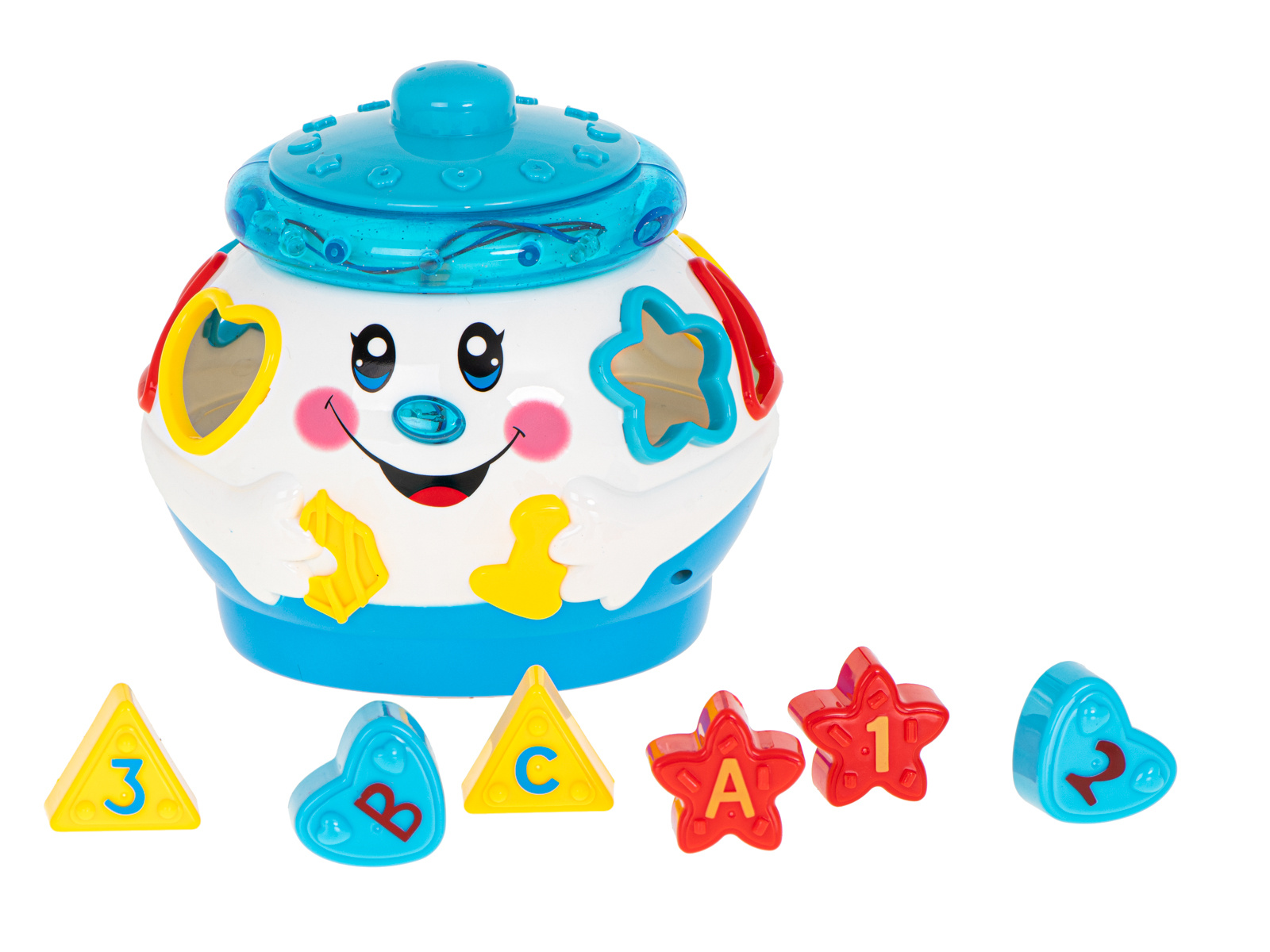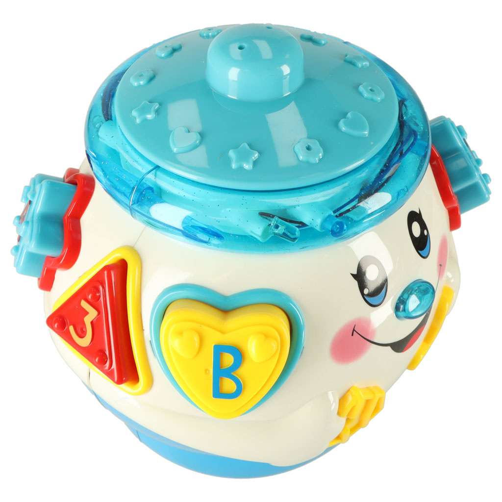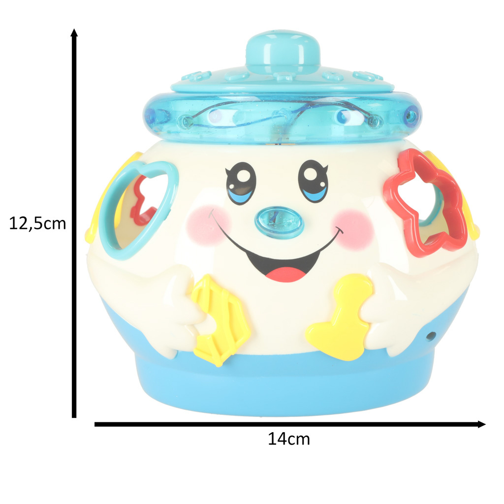 Ko je vklopljen, lonec igra melodijo in se premika po prostoru.- Odlična izobraževalna igrača.