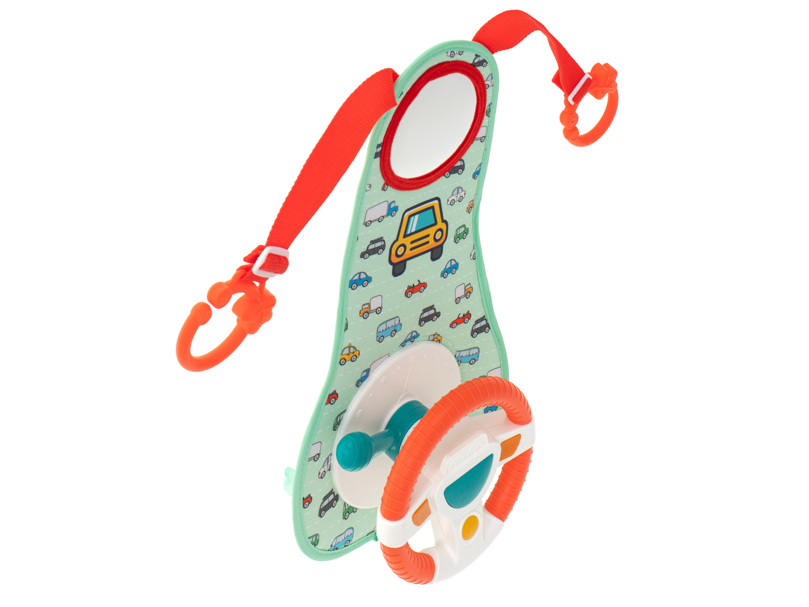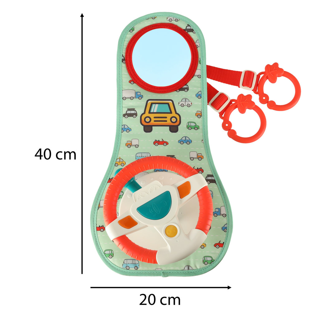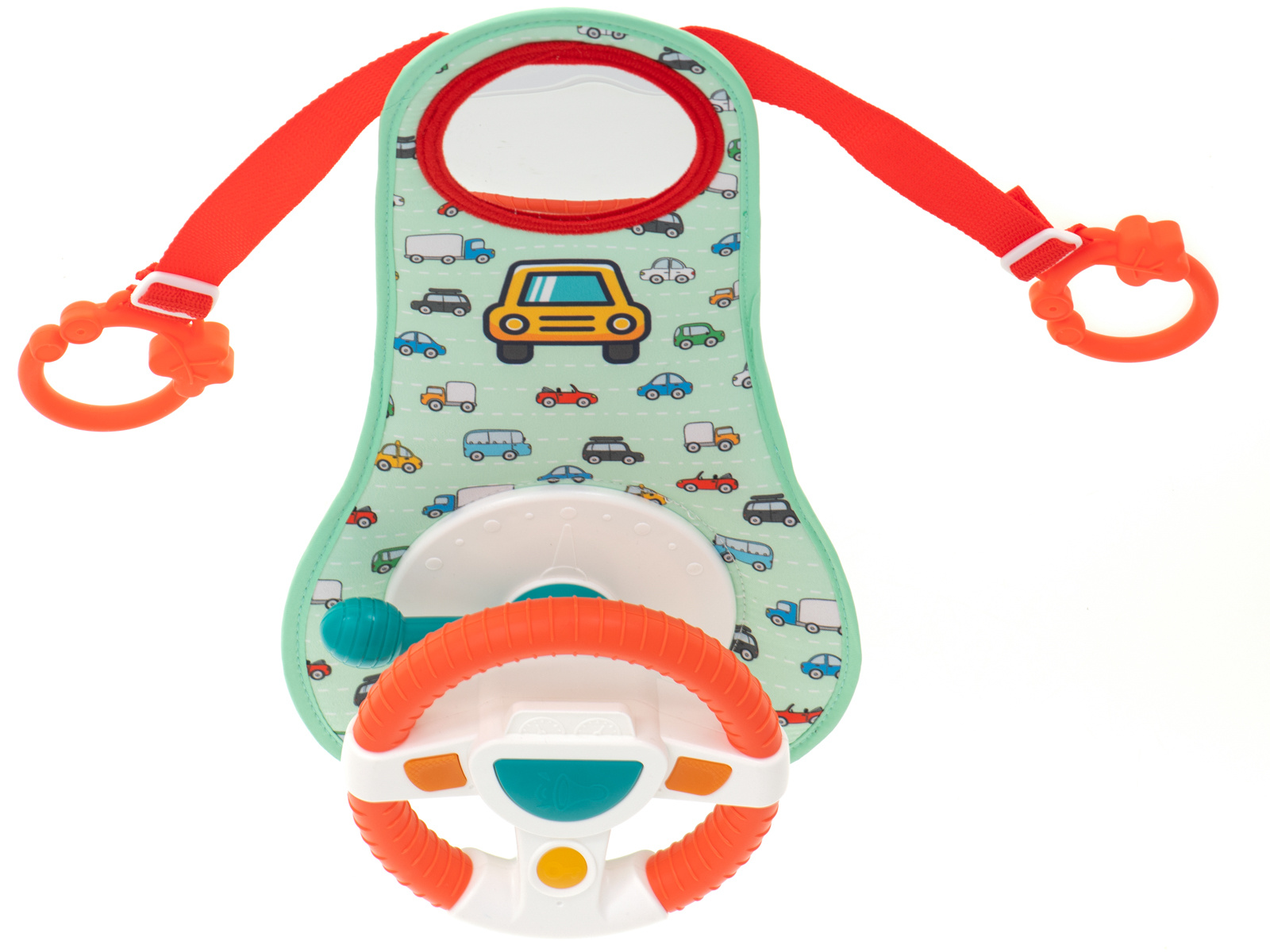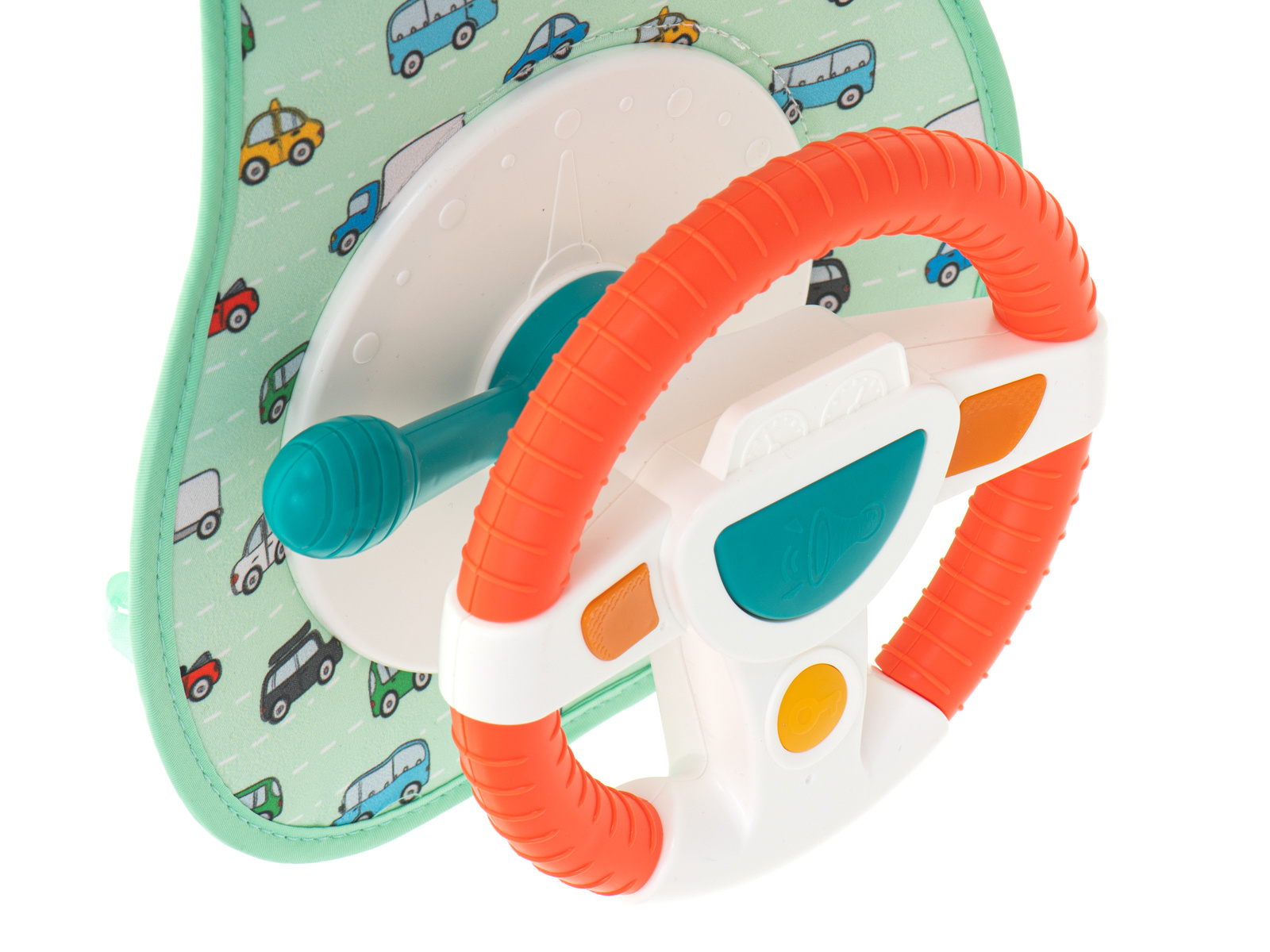 Razigran ali jokajoč otrok na zadnjem sedežu je za voznika vozila velik stres. Imamo rešitev za vas, ki bo vašemu malčku polepšala pot in zagotovila gladko vožnjo. Interaktivni volan je vrsta upravljalne plošče, ki uspešno zaposli majhne roke skozi celotno vožnjo. Sestavljen je iz volana s 4 gumbi, senzoričnega ročaja in plastičnega varnostnega ogledala. Kosi so nameščeni na trdni podlagi, prevlečeni s prijetno tkanino z motivom avtomobilčkov.