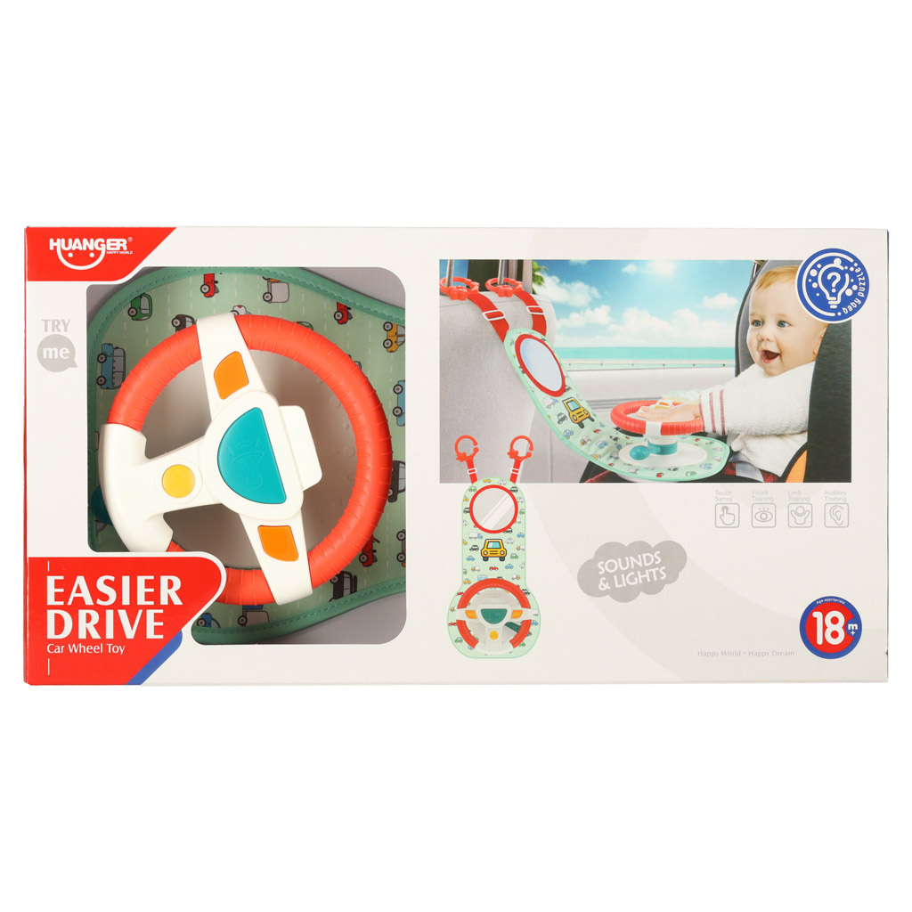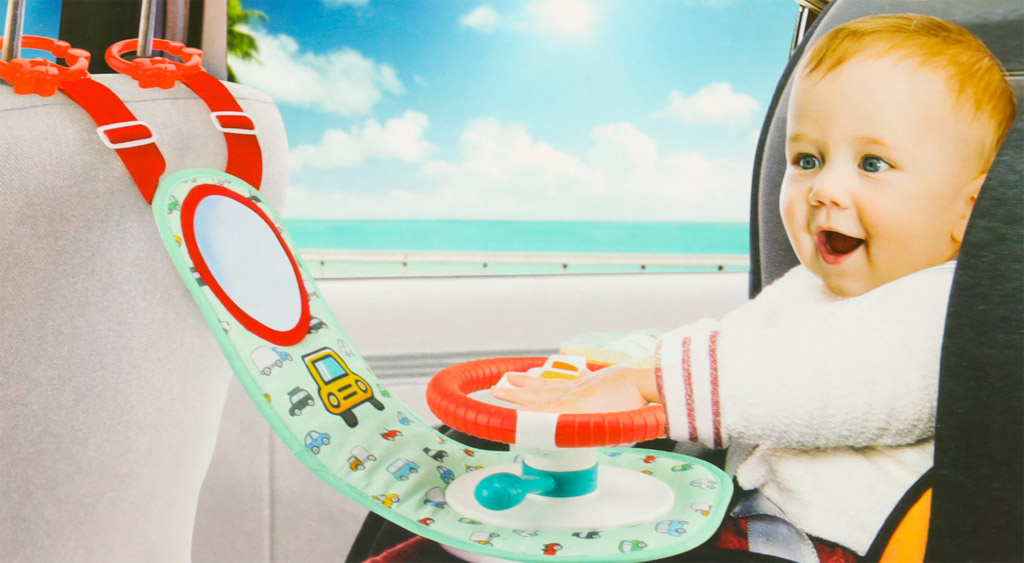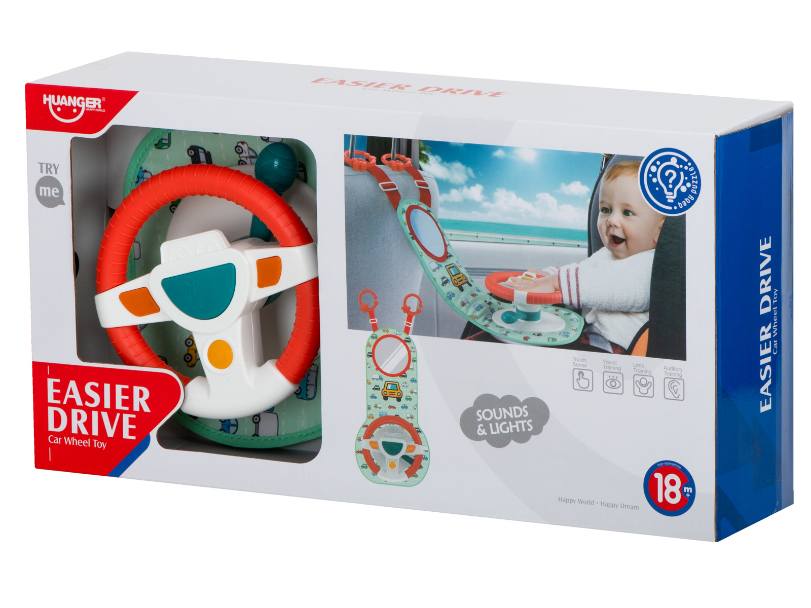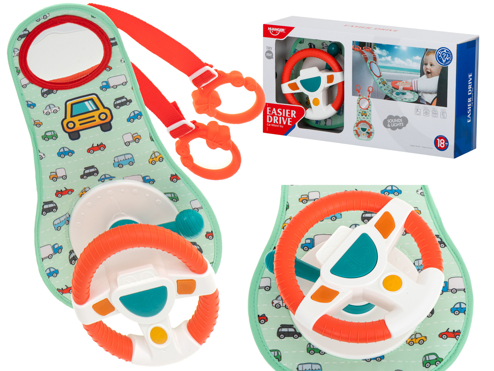 Razigran ali jokajoč otrok na zadnjem sedežu je za voznika vozila velik stres. Imamo rešitev za vas, ki bo vašemu malčku polepšala pot in zagotovila gladko vožnjo. Interaktivni volan je vrsta upravljalne plošče, ki uspešno zaposli majhne roke skozi celotno vožnjo. Sestavljen je iz volana s 4 gumbi, senzoričnega ročaja in plastičnega varnostnega ogledala. Kosi so nameščeni na trdni podlagi, prevlečeni s prijetno tkanino z motivom avtomobilčkov.