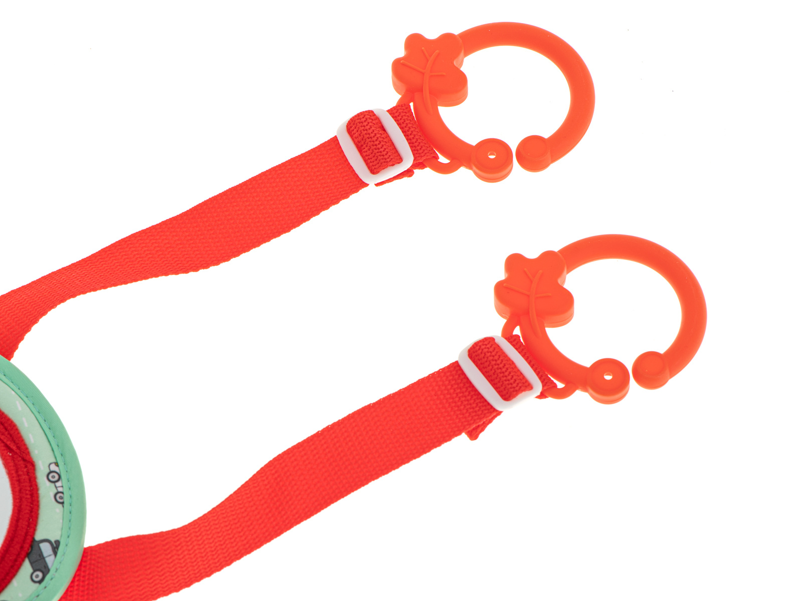 Igračo pritrdite na vzglavnike sprednjega sedeža s pomočjo plastičnih koles na nastavljivih trakovih.