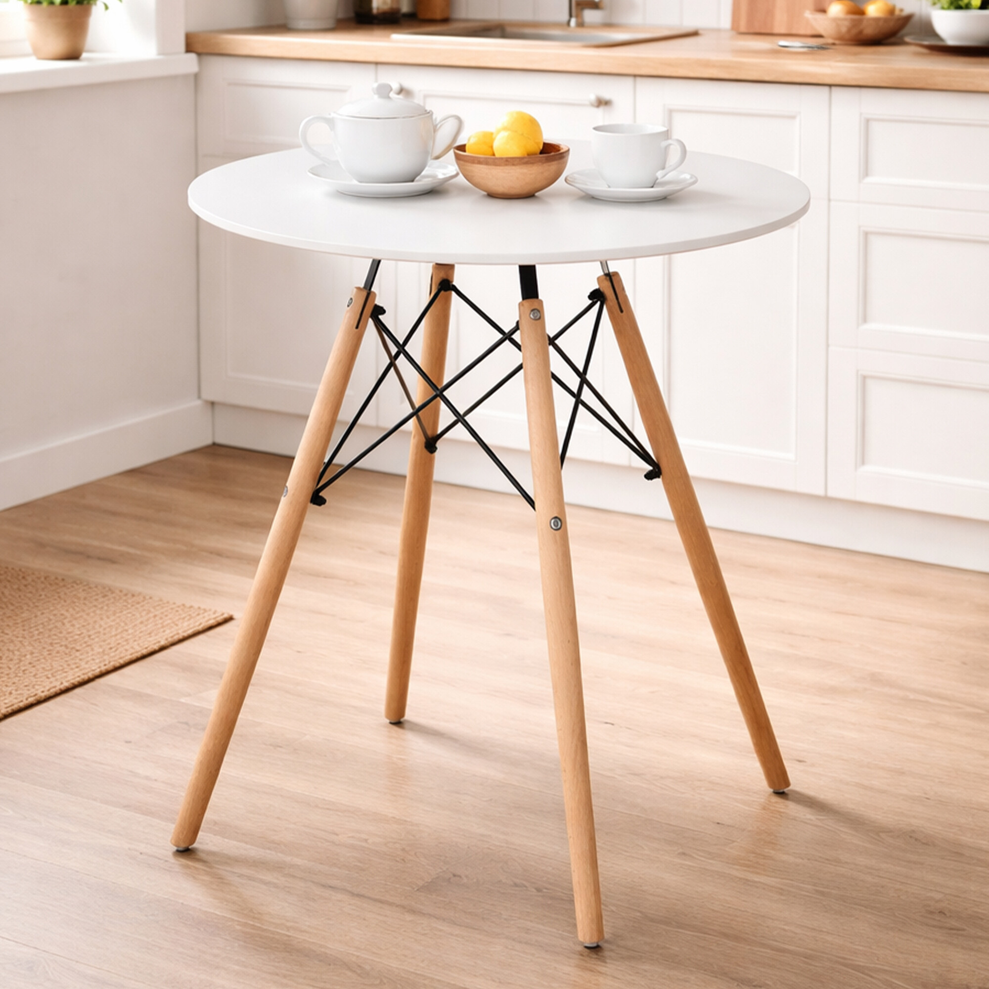 Jedilna miza v skandinavskem slogu se zlahka ujema z notranjostjo kuhinje ali jedilnice.