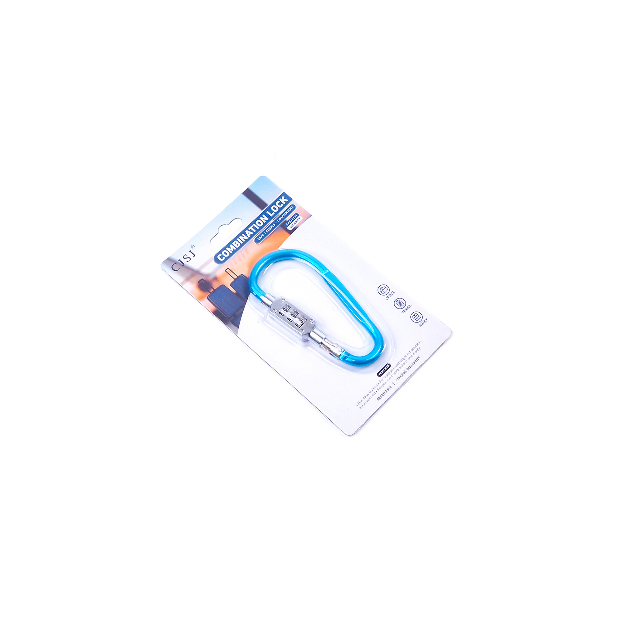 Kodirna ključavnica v obliki karabina bo povečala varnost vaše prtljage, torbe za prenosnik in z njo je mogoče zakleniti npr. in čelado za kolo. Uporabni pomočnik pri potovanju.