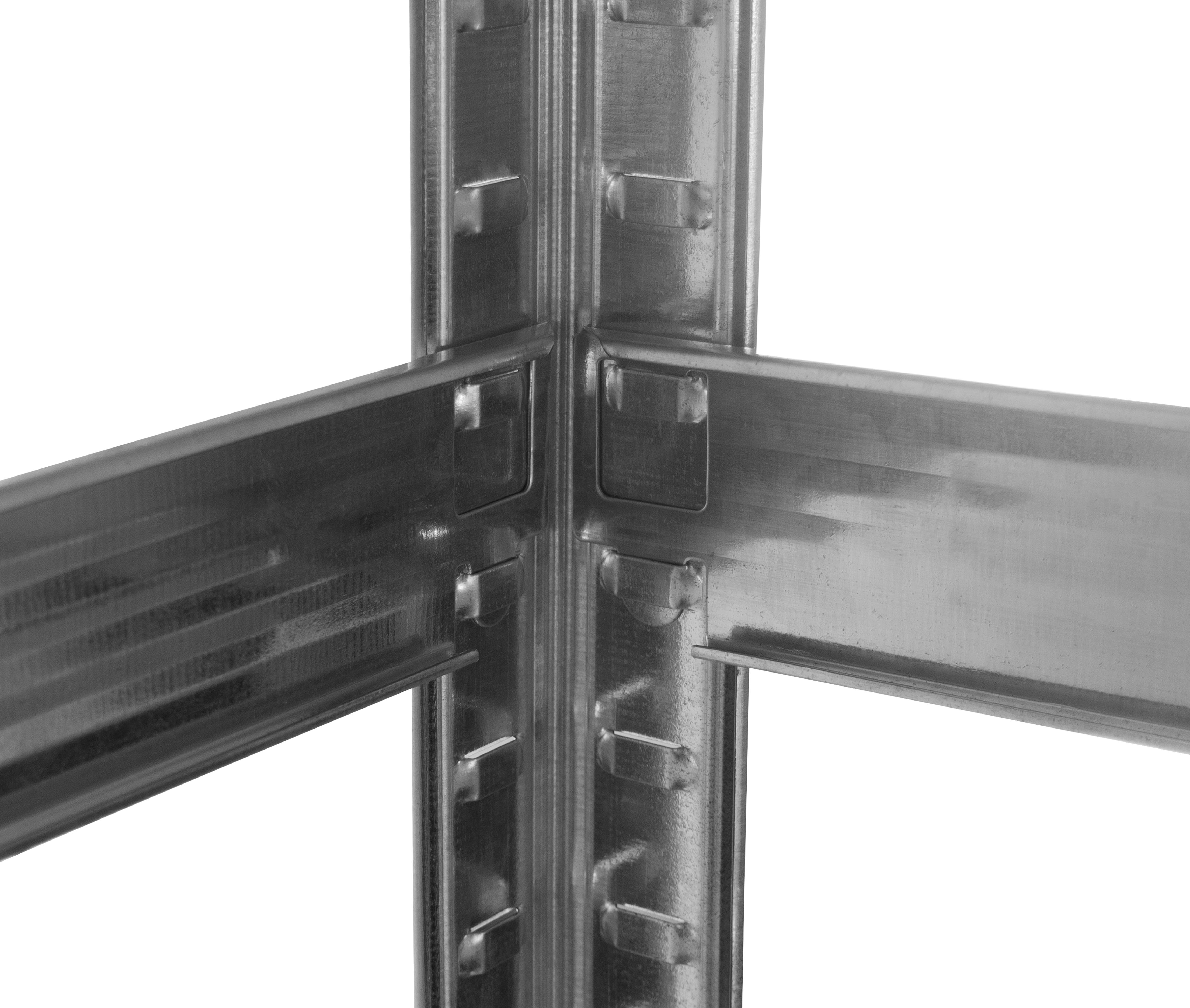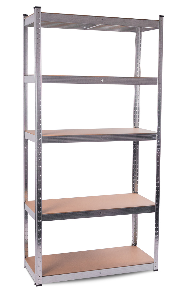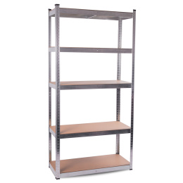 Okvir iz pocinkane jeklene srebrne barve zagotavlja stabilnost in veliko nosilnost približno 875 kg (za vsako polico približno 175 kg).Naj bo v shrambi ali delavnici - s tem praktičnim pomočnikom boste shranili ne le zaloge hrane, pijače, ampak tudi orodje!