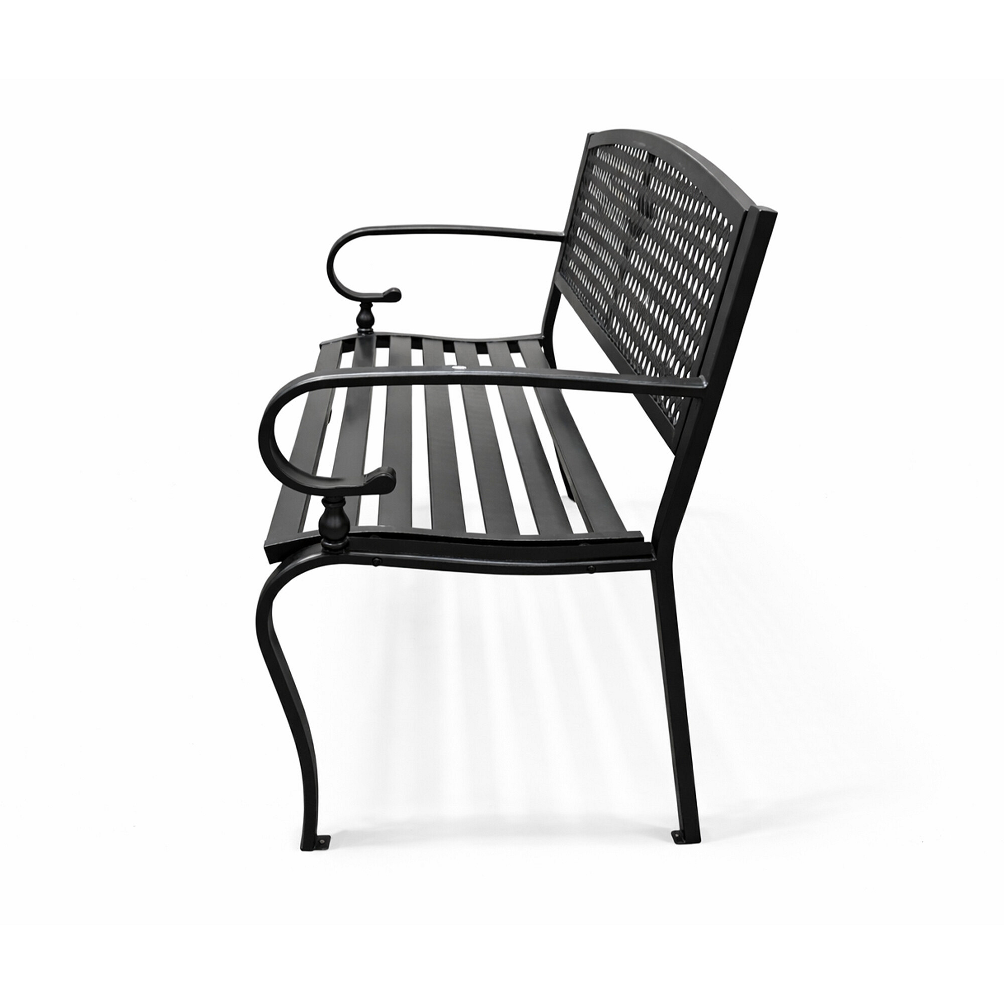 Konstrukcija vrtne klopi je izdelana iz jekla in litega železa, ti materiali so odporni in hkrati zagotavljajo stabilnost.