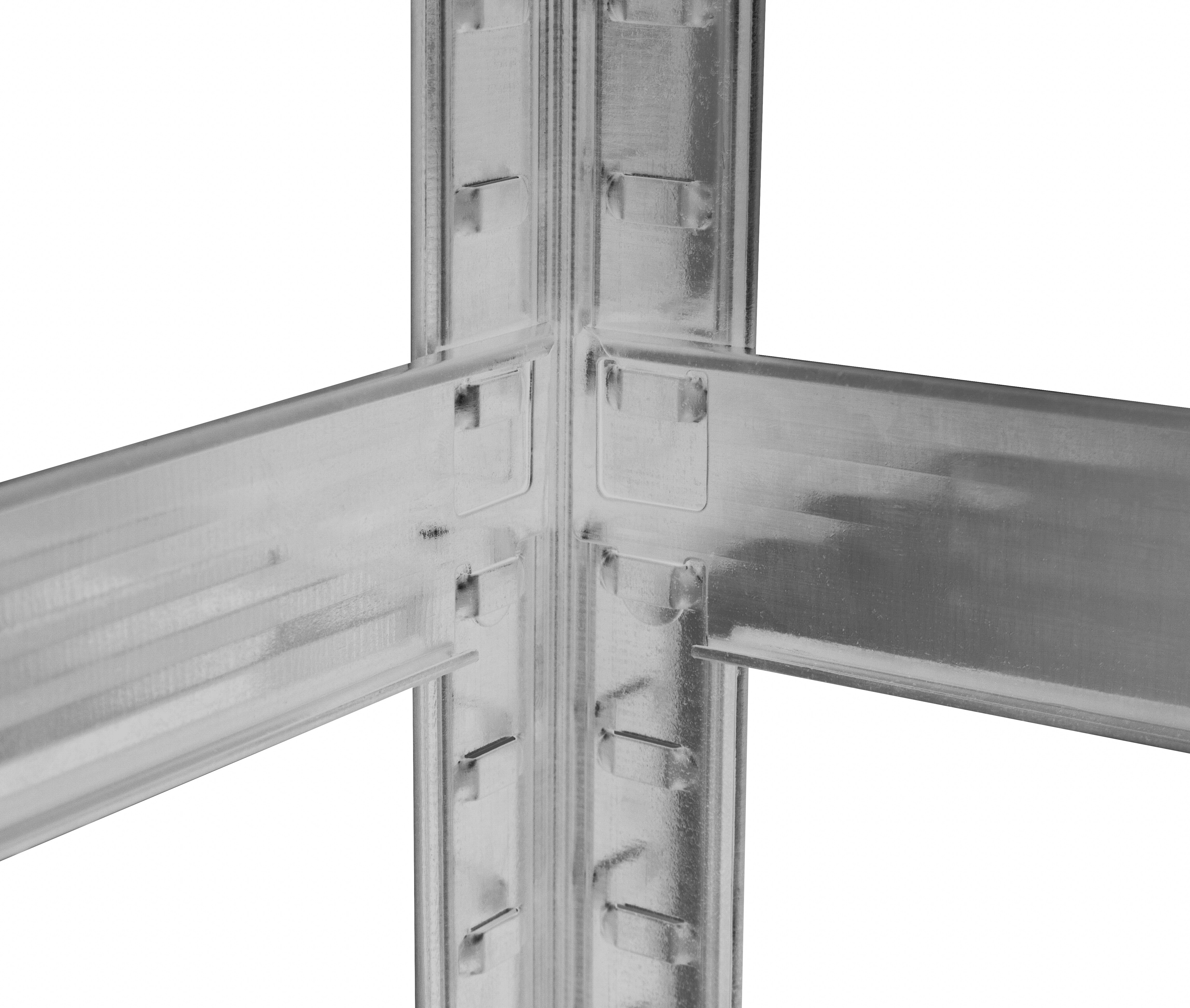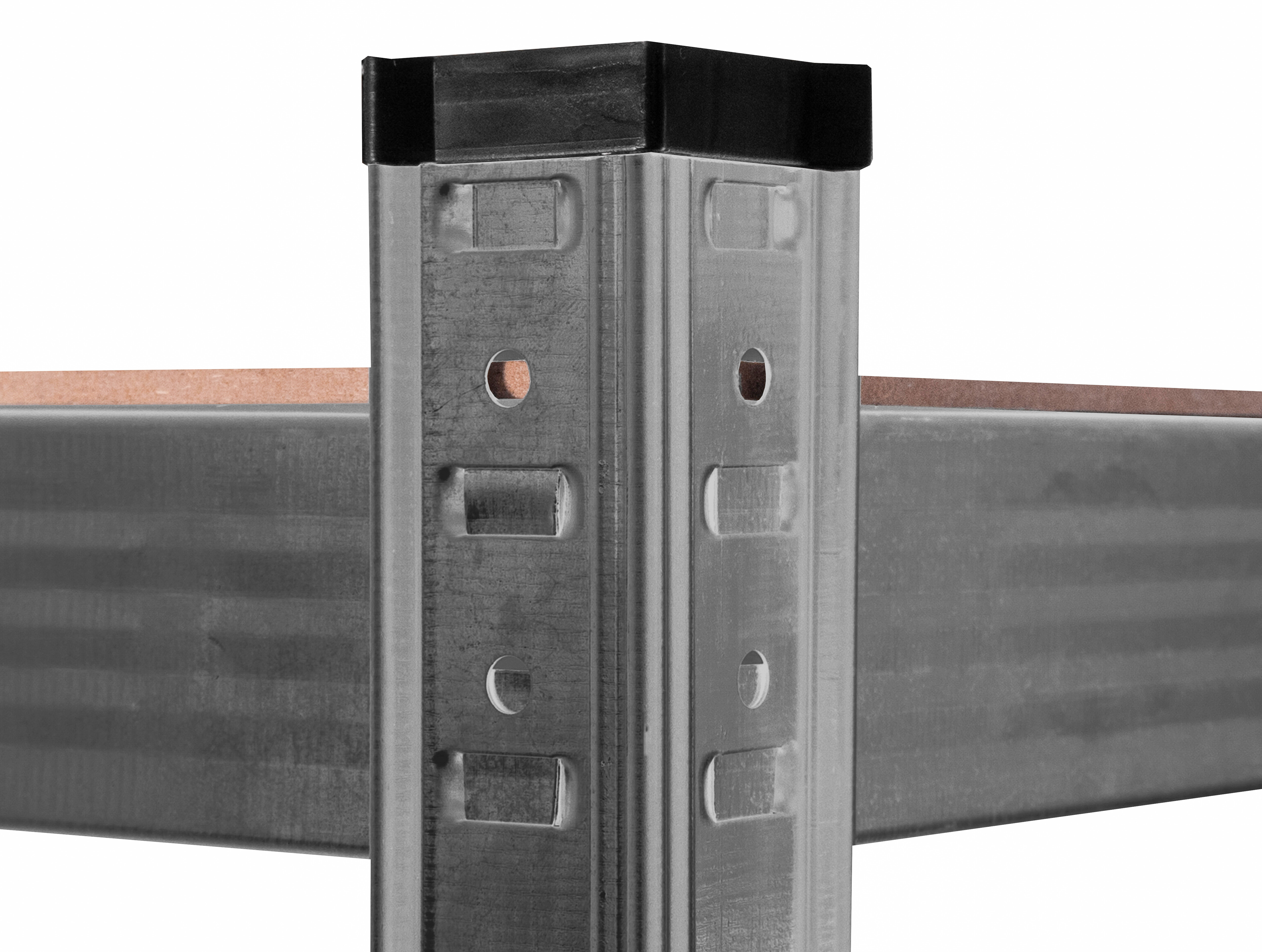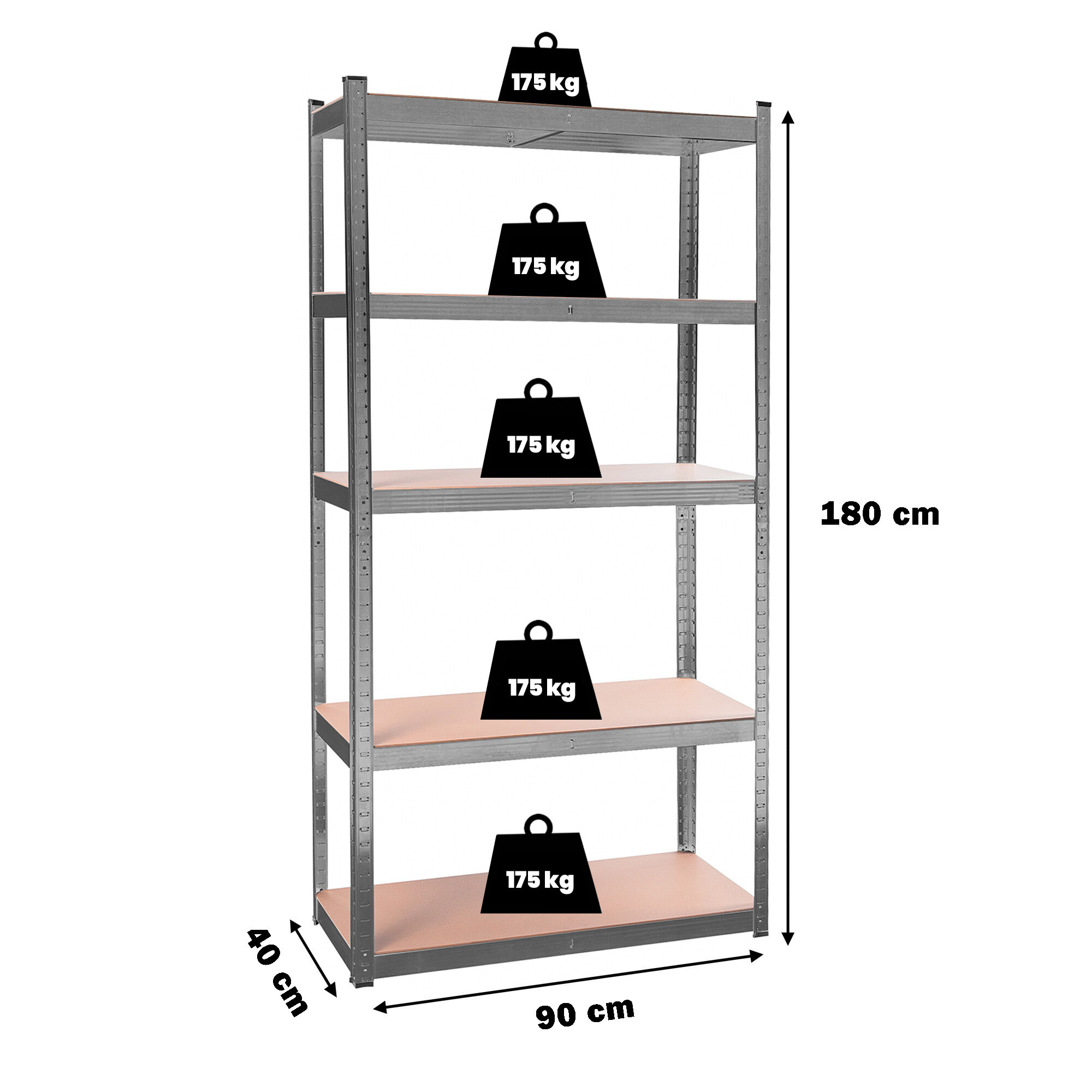 Okvir iz pocinkane jeklene v črni barvi zagotavlja stabilnost in veliko nosilnost približno 875 kg (za vsako polico približno 175 kg).Naj bo v shrambi ali delavnici - s tem praktičnim pomočnikom boste shranili ne le zaloge hrane, pijače, ampak tudi orodje!