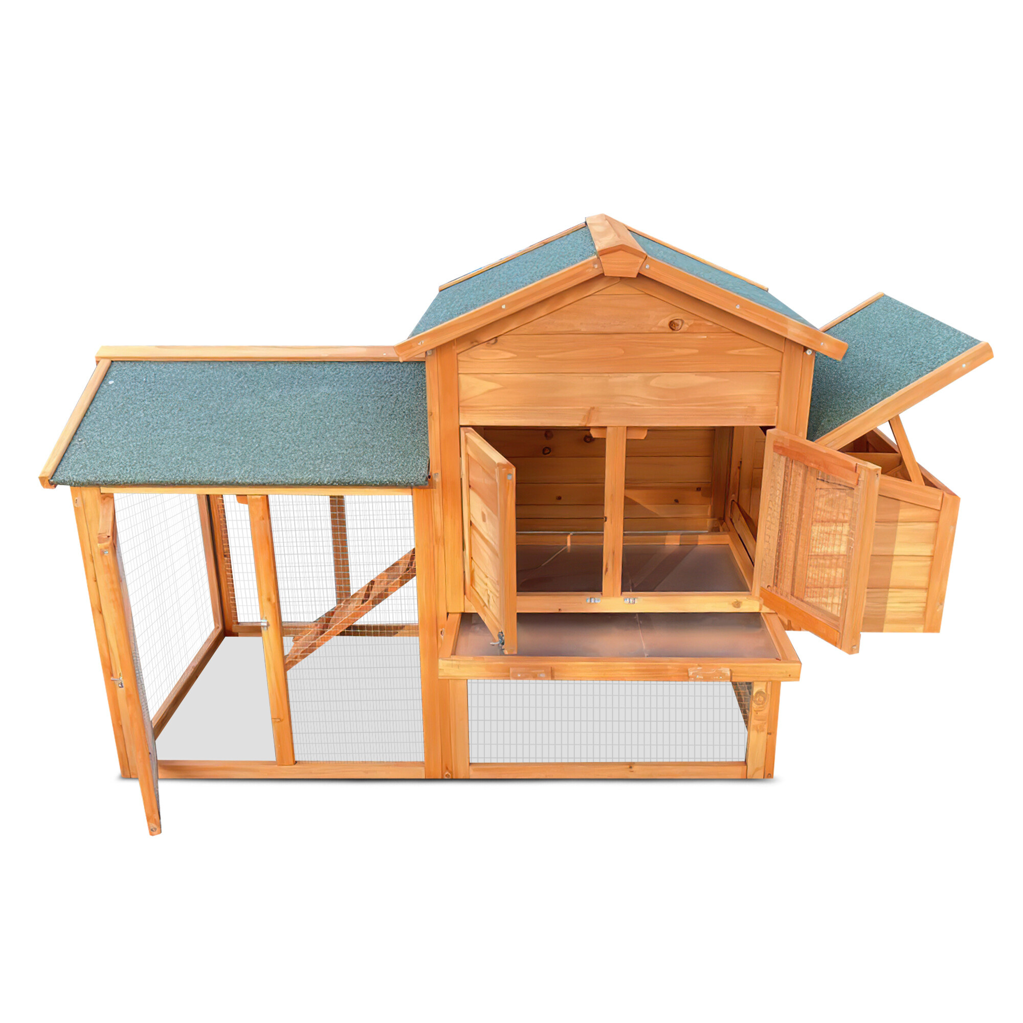 Izvlečni pladenj za steljo je odličen pripomoček za vzdrževanje čistoče, saj ga je enostavno izvleči, očistiti in vrniti nazaj.Univerzalna zasnova kokošnjaka omogoča njegovo uporabo za različne vrste živali.