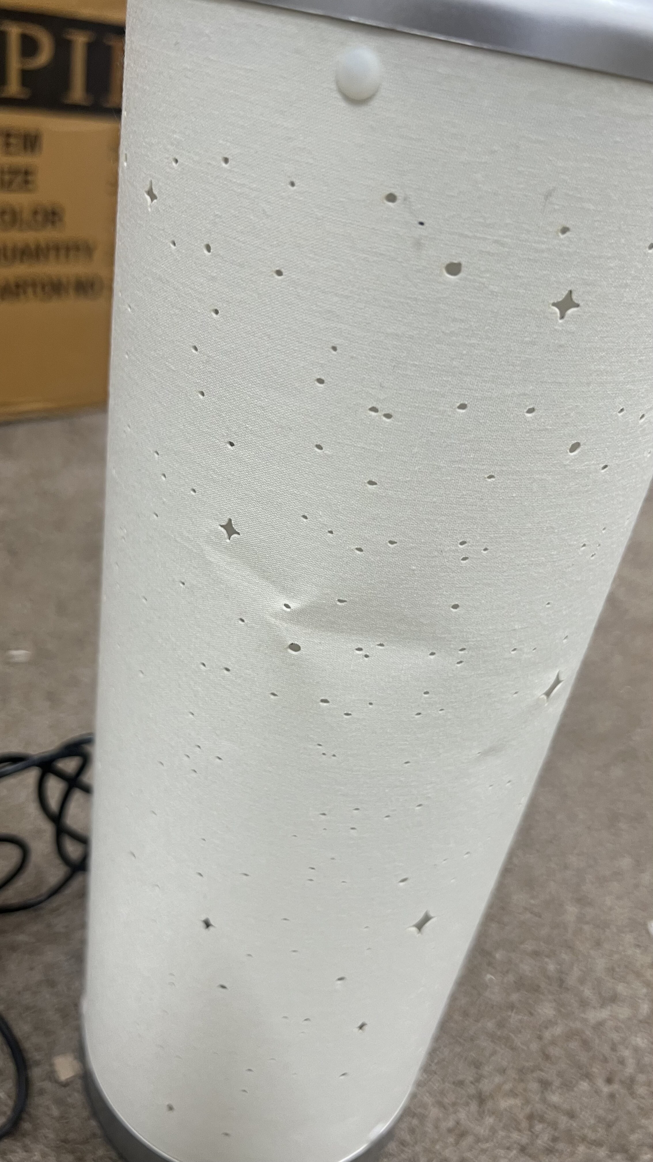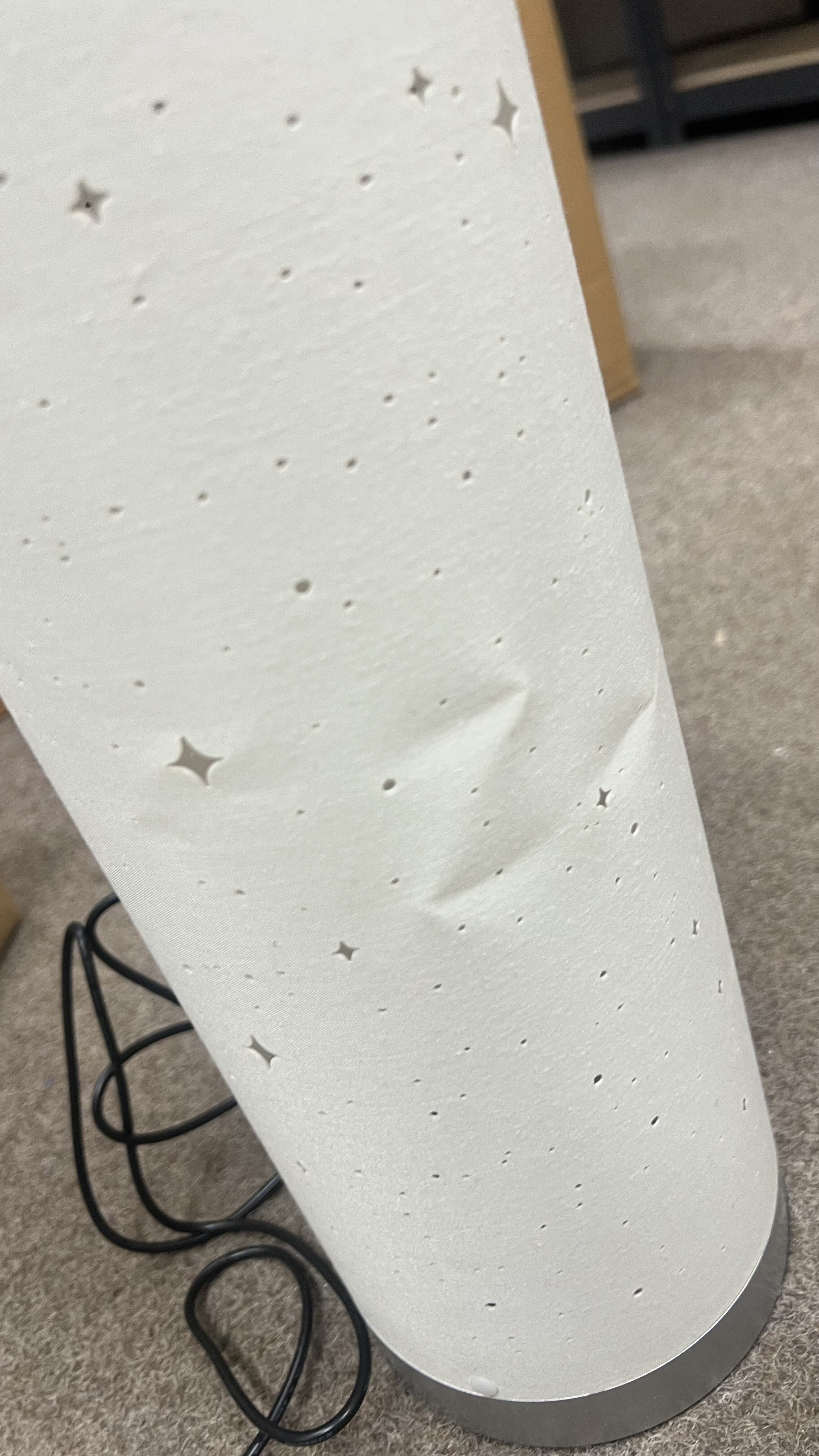Svetilka je uvrščena v kategorijo 2. kakovosti zaradi poškodovanega ohišja in več udrtin.