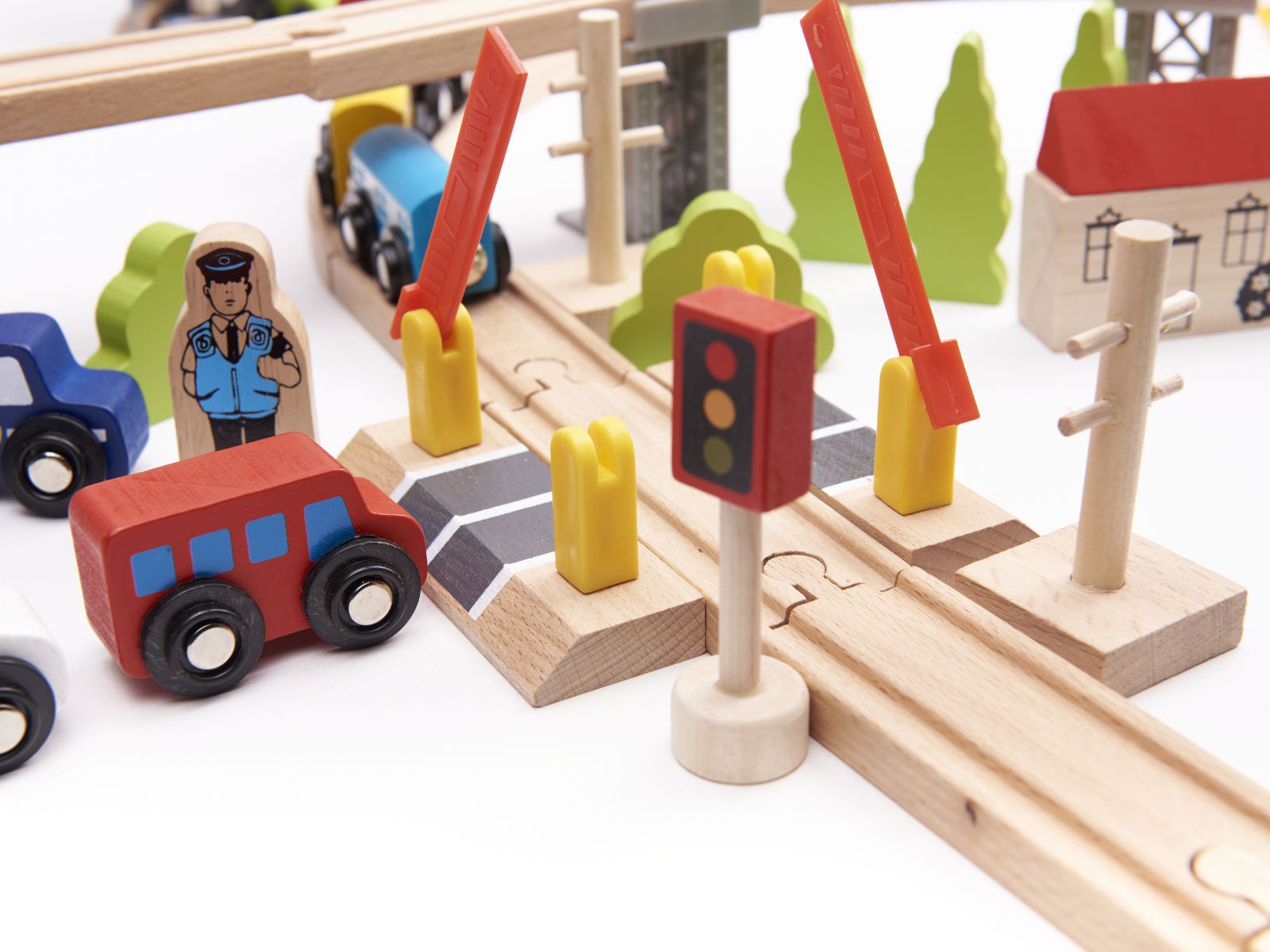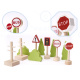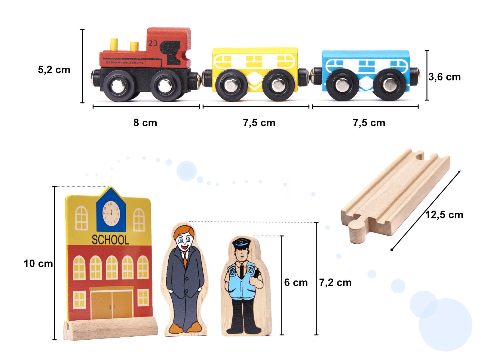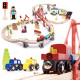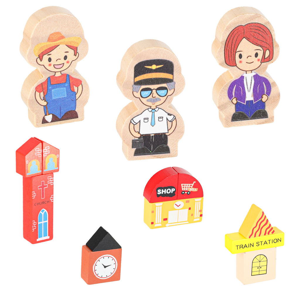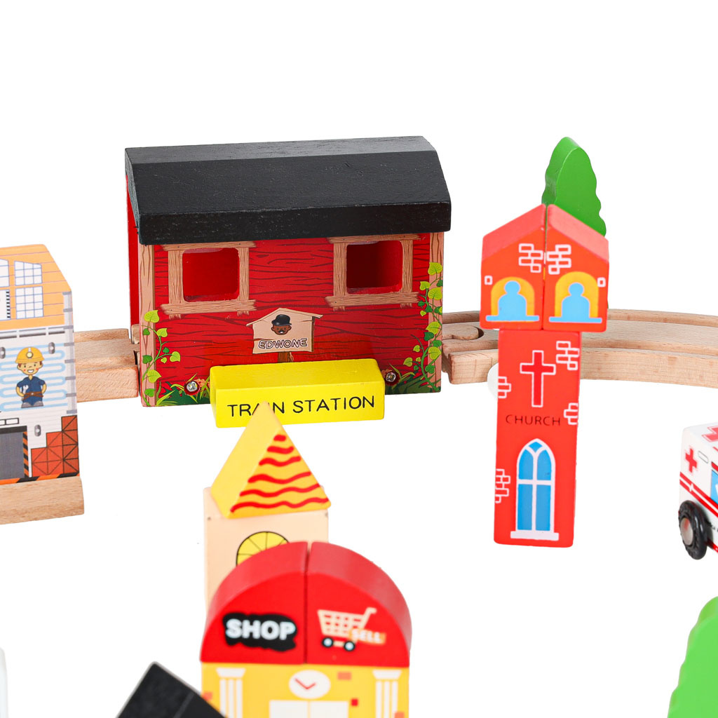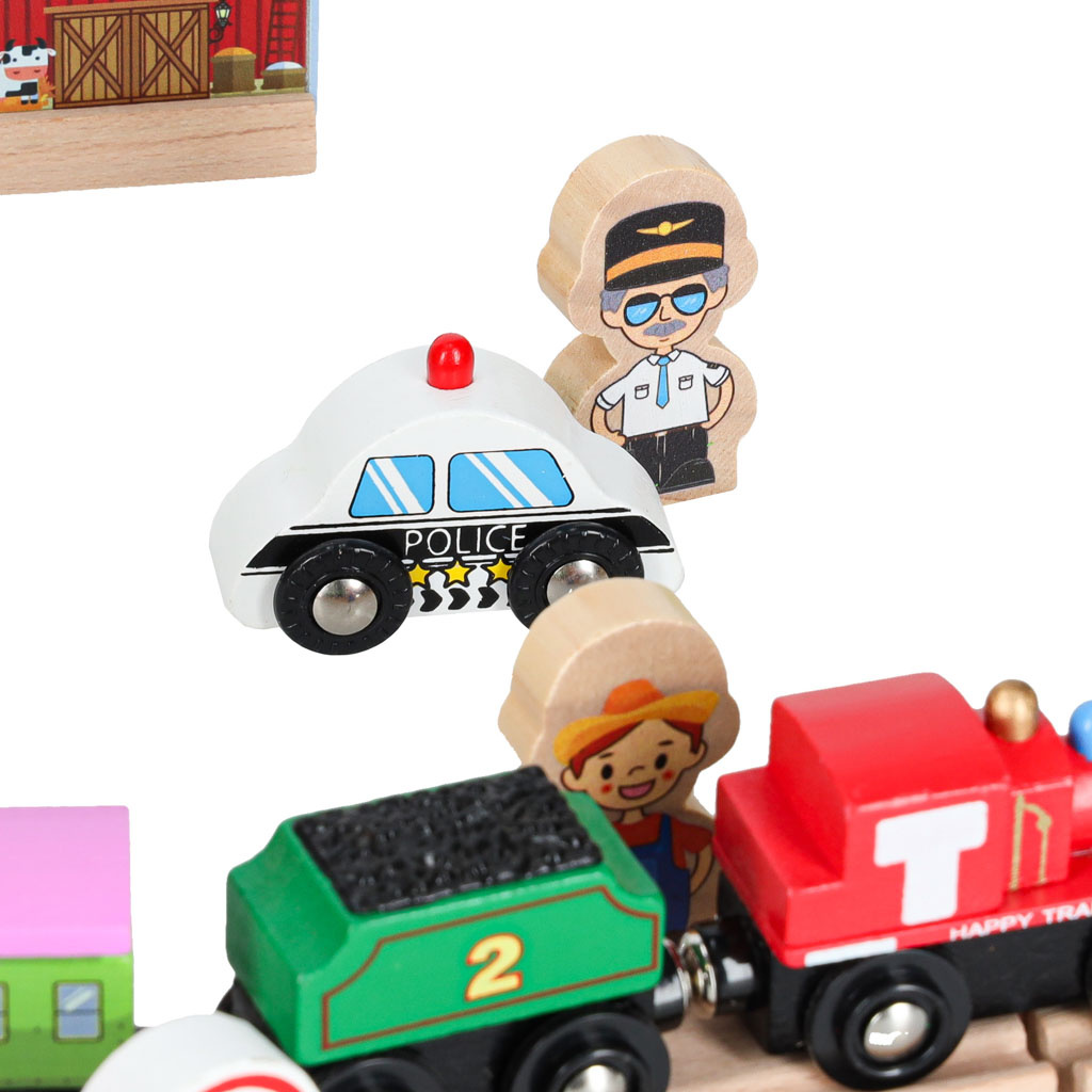 Pripravljen je današnjim otrokom zagotoviti ure kreativne zabave in staršem nostalgičen povratek v preteklost. Lesena železnica je za najmlajše pravo doživetje! Barvni elementi, iz katerih nastajajo izjemne pokrajine. Bogat komplet - do 70 elementov! - ponuja praktično neomejene ustvarjalne možnosti.Vključno:
