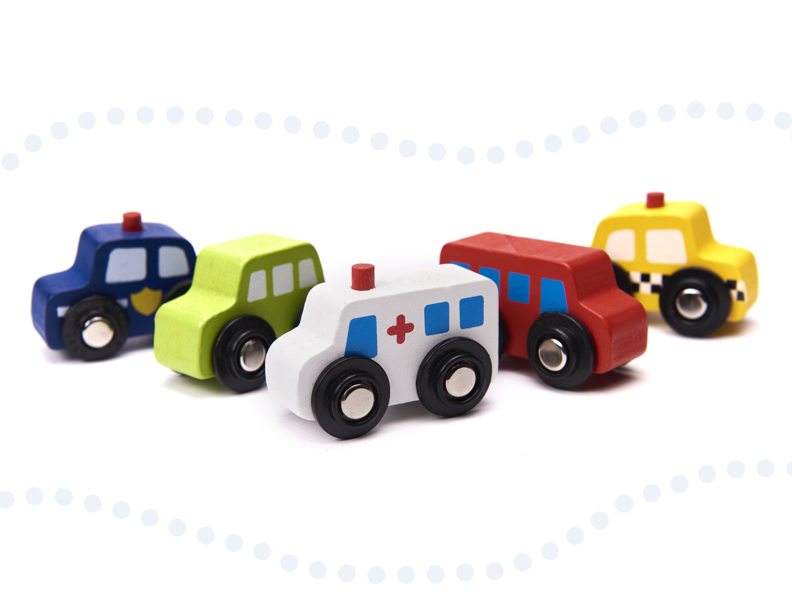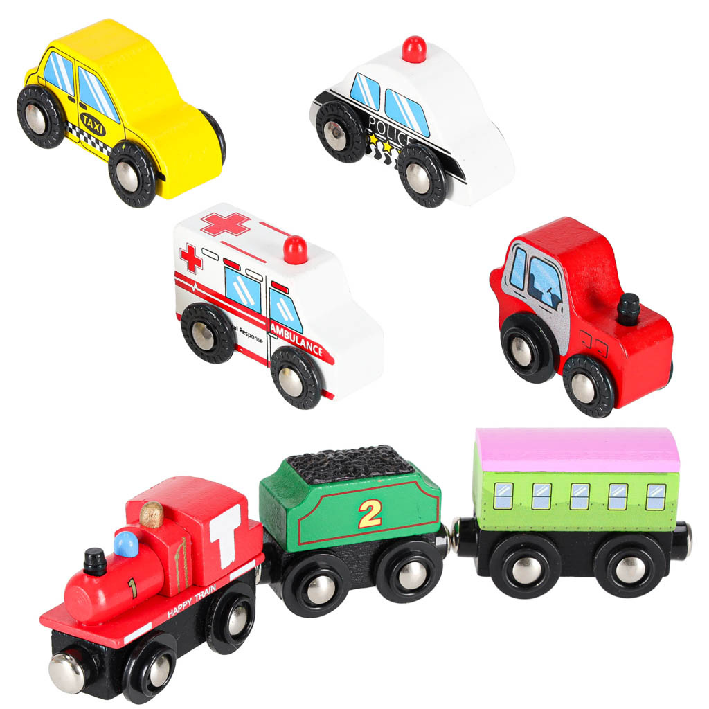 8 vozil, vključno z m.in. lokomotiva z dvema vagoni, reševalno vozilo, policijsko vozilo
