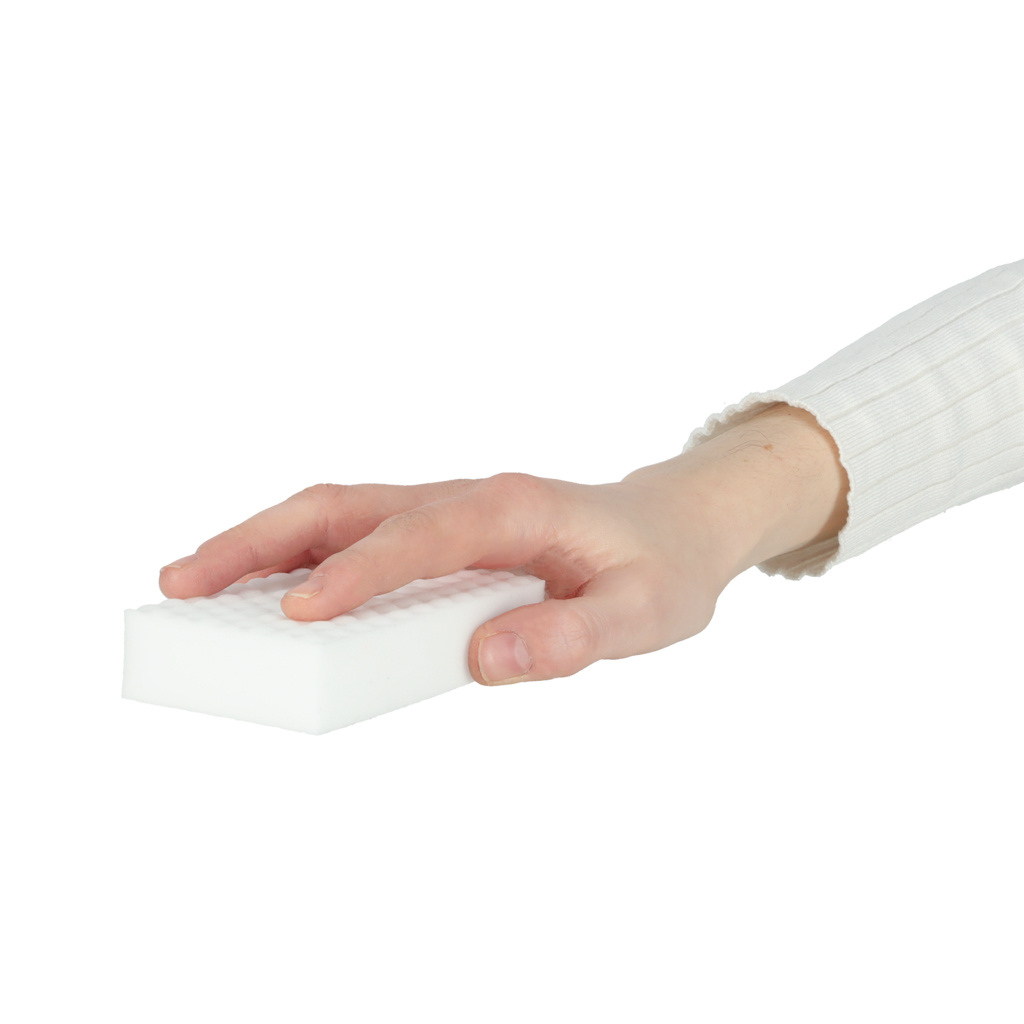 Obvlada madeže na omaricah, sledi po peresu in celo madeže na oblazinjenju.Visoka učinkovitost gobice je dana z njenimi nežnimi abrazivnimi lastnostmi.