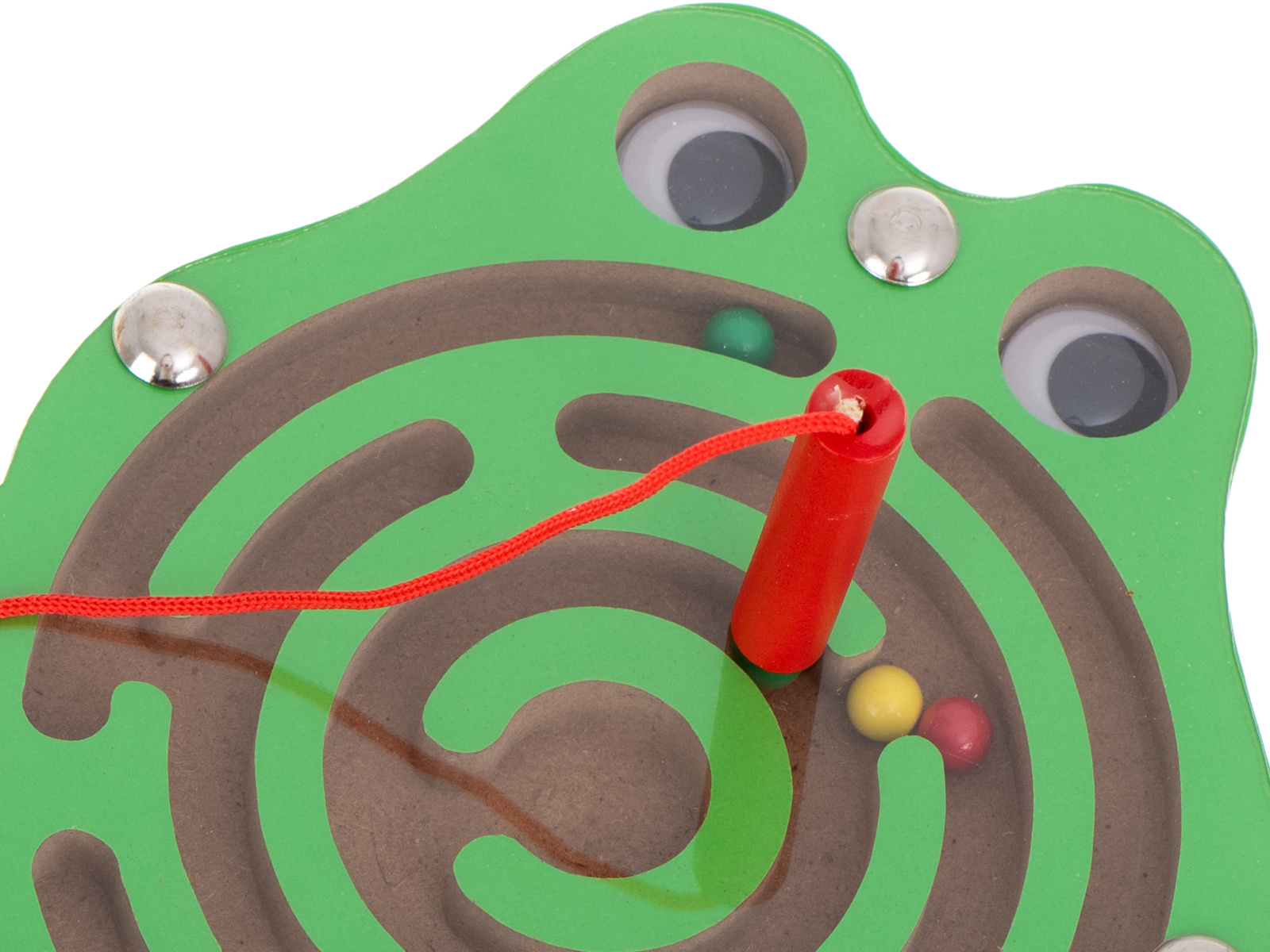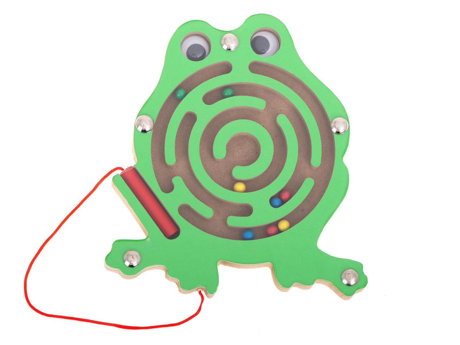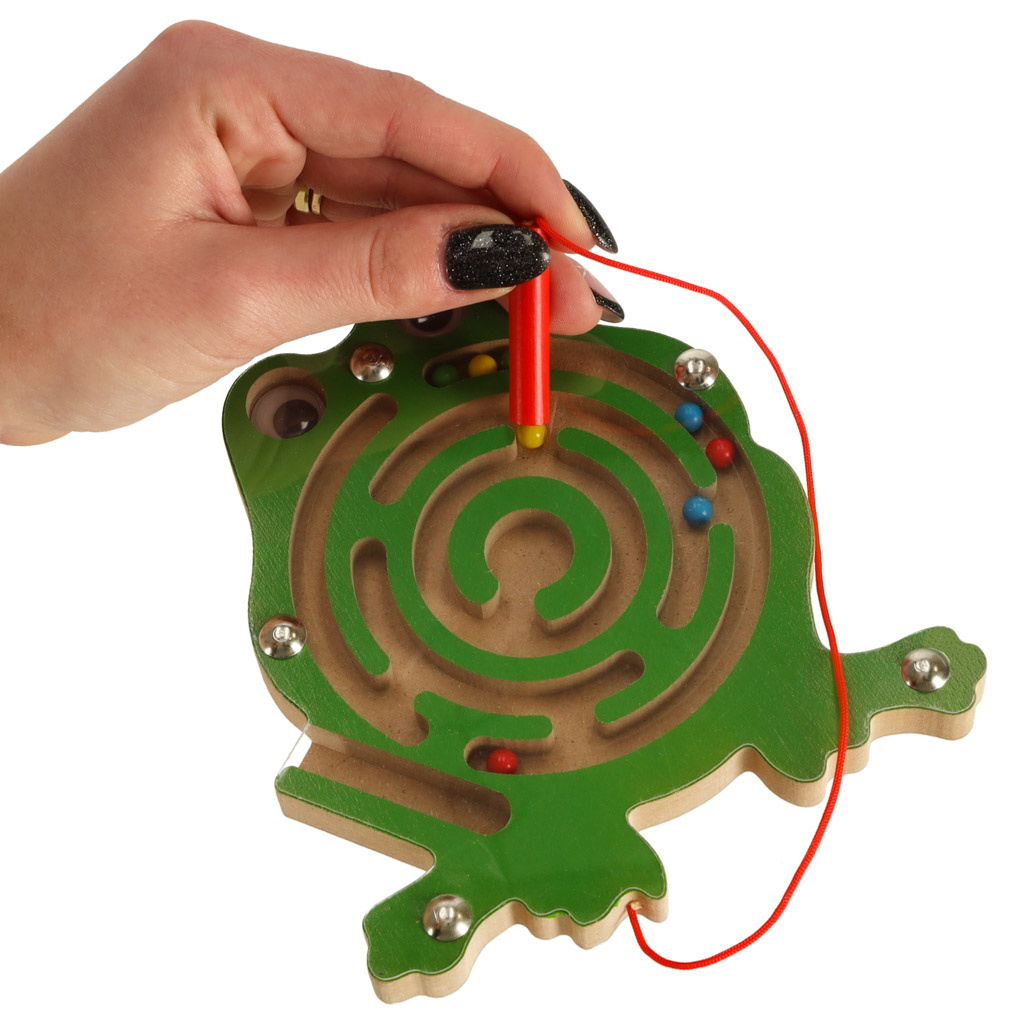 Prijazna žaba je bila zaprta v labirintu iz kovinskih kroglic. Igra je v tem, da s pomočjo palčke z magnetom premikate barvne kroglice na osrednje mesto. Da bi bila naloga težja, lahko kroglice vodite skozi labirint z vrtenjem igrače v različne smeri.