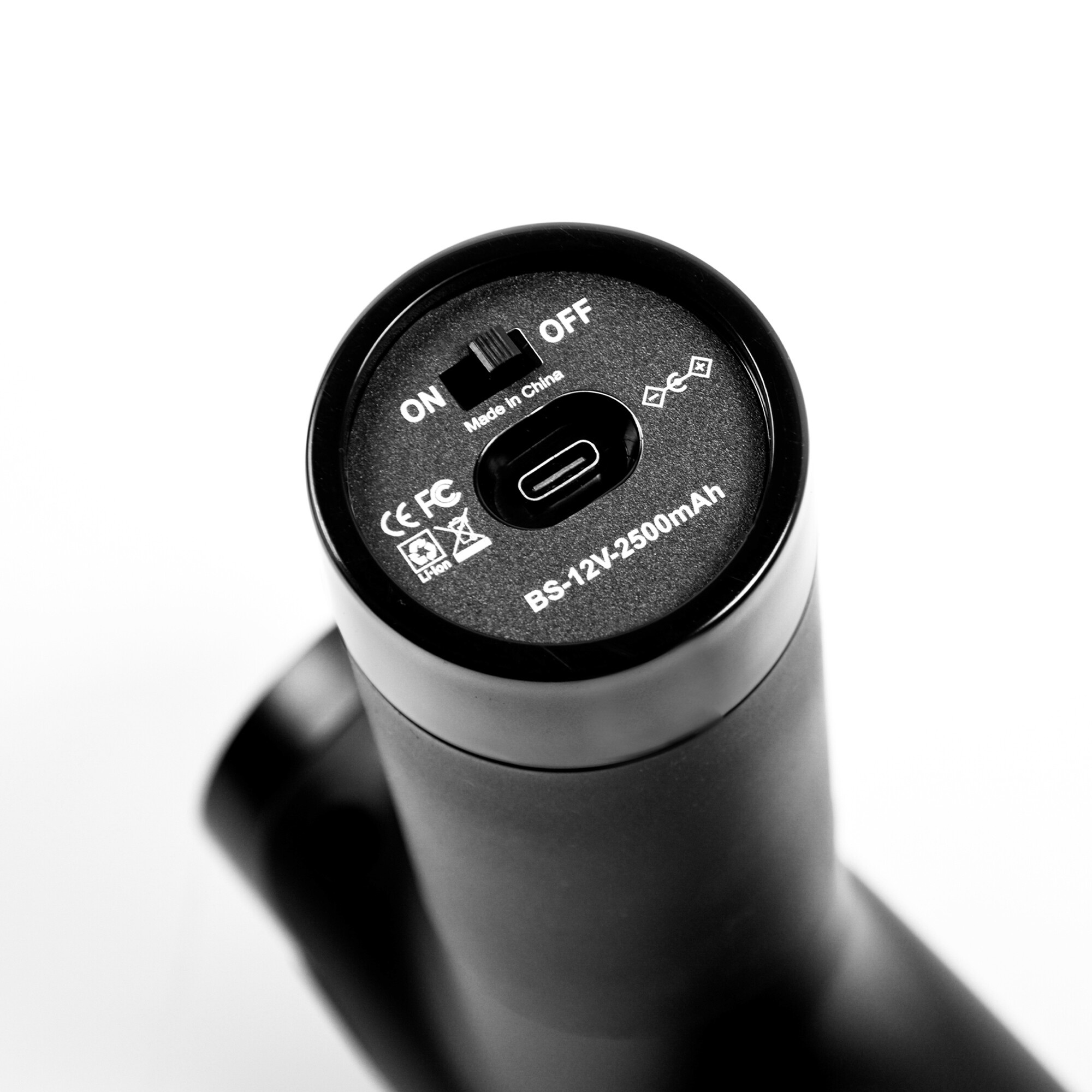 Masažna pištola ima vgrajeno litij-ionsko baterijo s kapaciteto 2500mAh, ki zdrži do 3 ure z enim polnjenjem, odvisno od uporabljenega hitrostnega načina.