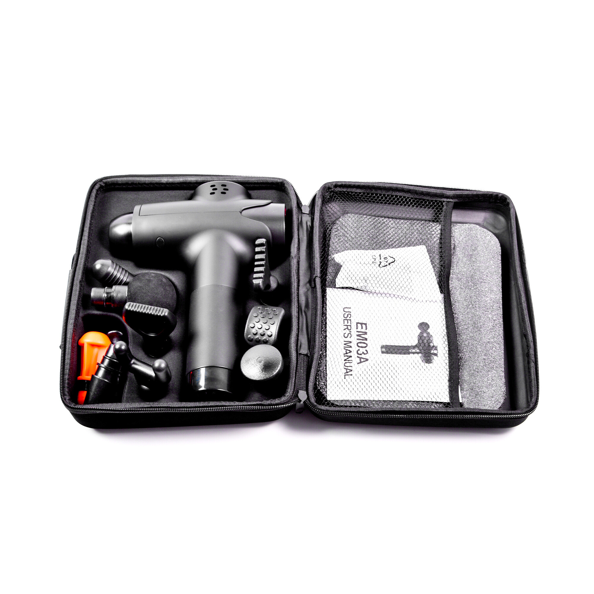 Zagotovo boste cenili nedrseč ročaj za trden oprijem.Masažna pištola je priložena v praktičnem kovčku za enostaven prevoz, tako da jo lahko brez težav vzamete s seboj kamorkoli.