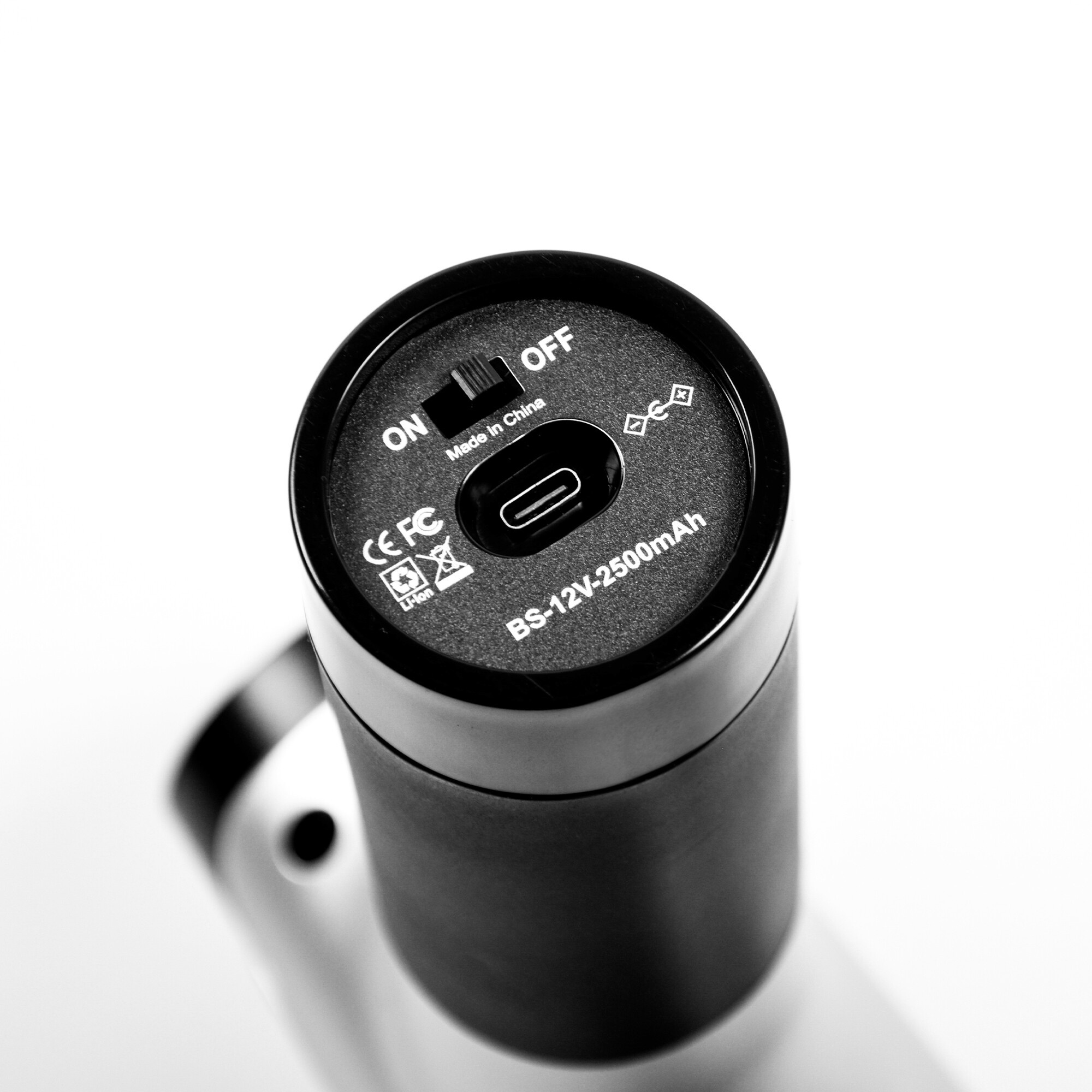 Masažna pištola ima vgrajeno litij-ionsko baterijo s kapaciteto 2500mAh, ki zdrži do 3 ure z enim polnjenjem, odvisno od uporabljenega hitrostnega načina.