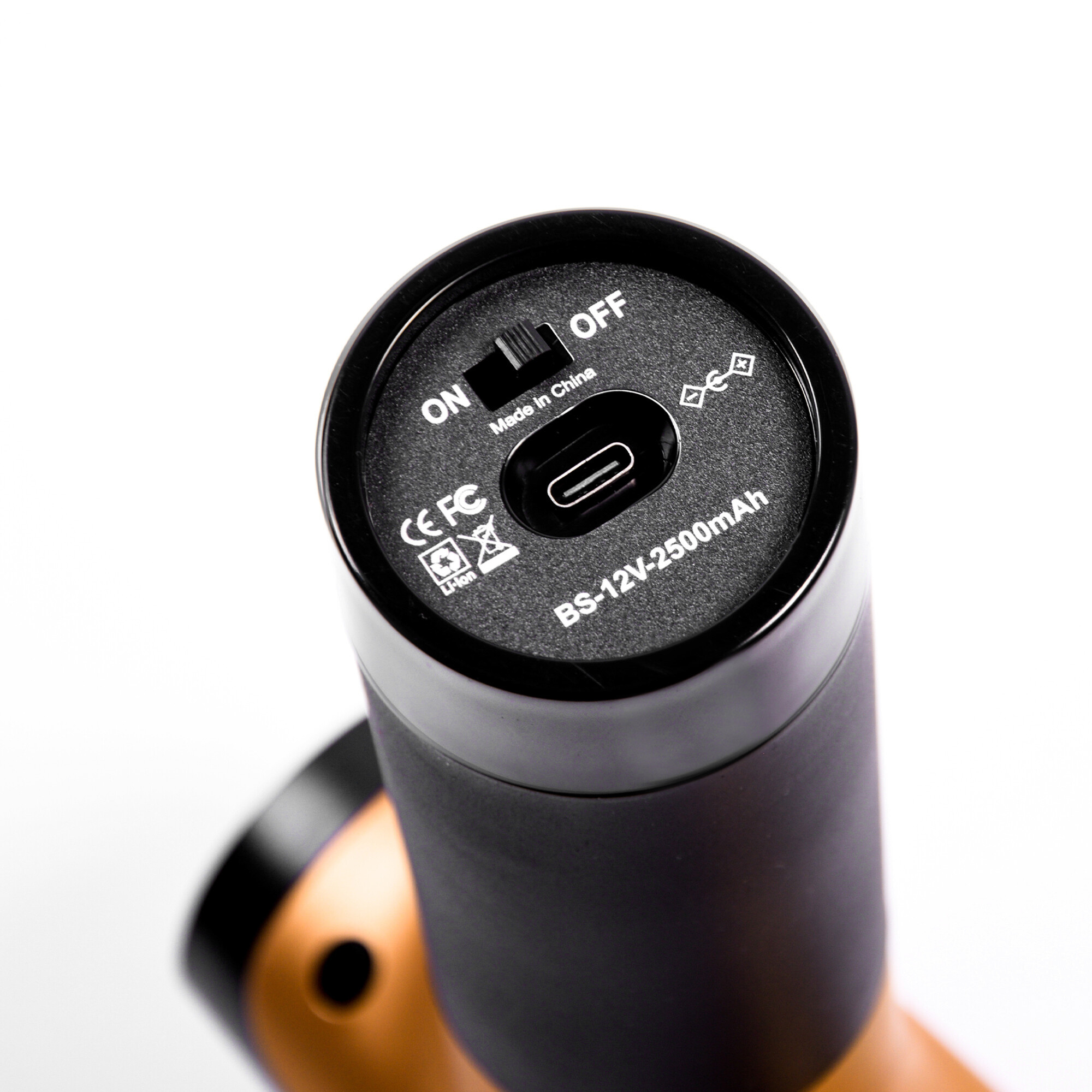Masažna pištola ima vgrajeno litij-ionsko baterijo s kapaciteto 2500mAh, ki zdrži do 3 ure z enim polnjenjem, odvisno od uporabljenega hitrostnega načina.