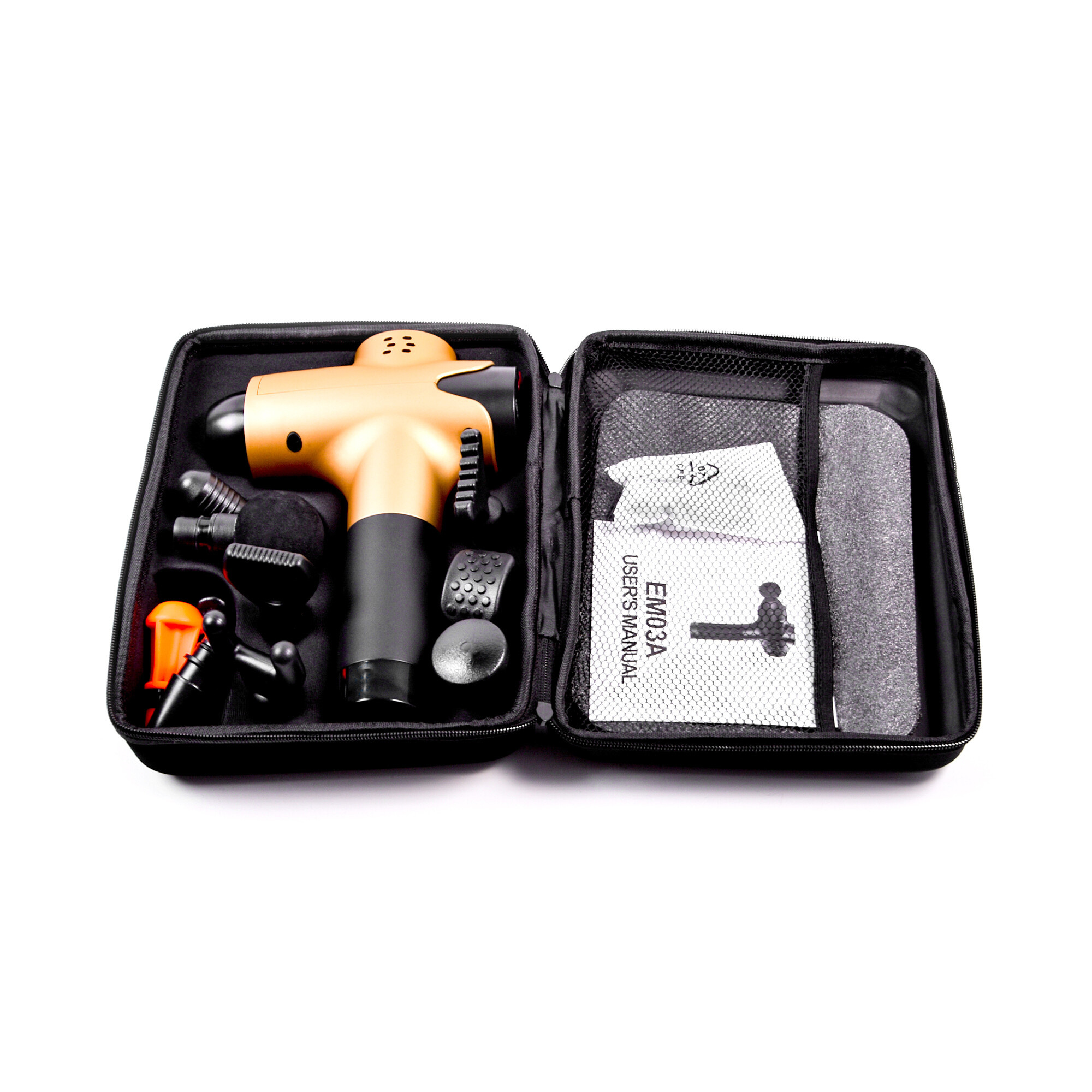 Zagotovo boste cenili nedrseč ročaj za trden oprijem.Masažna pištola je priložena v praktičnem kovčku za enostaven prevoz, tako da jo lahko brez težav vzamete s seboj kamorkoli.