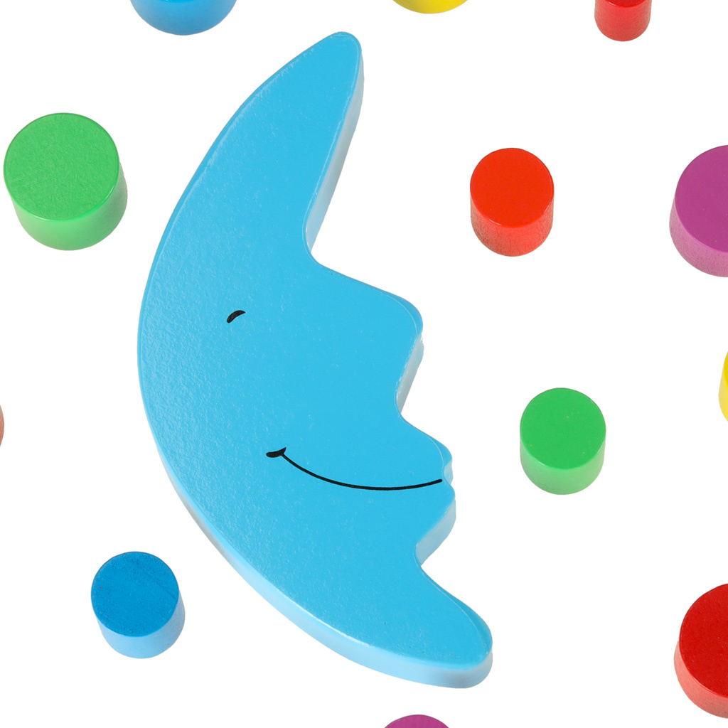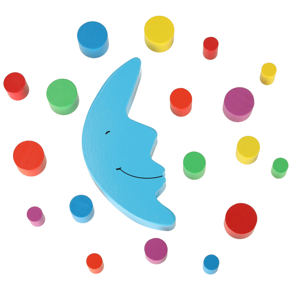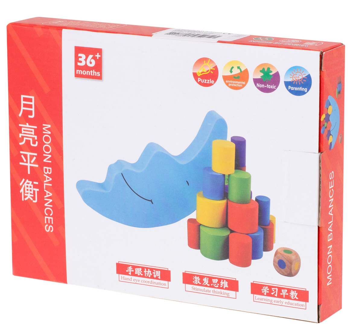 Posamezni elementi so izdelani iz masivnega lesa in pobarvani z modernimi barvami.Naloga igre je postopoma dodajati valjček za valjčkom, vendar tako, da se mesec ne prevrne.