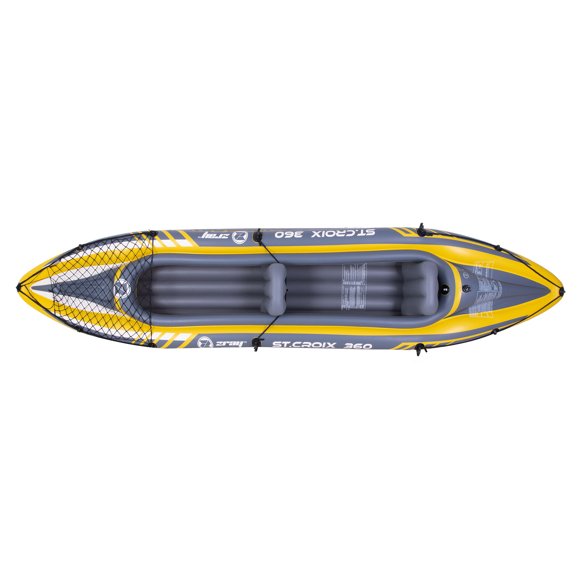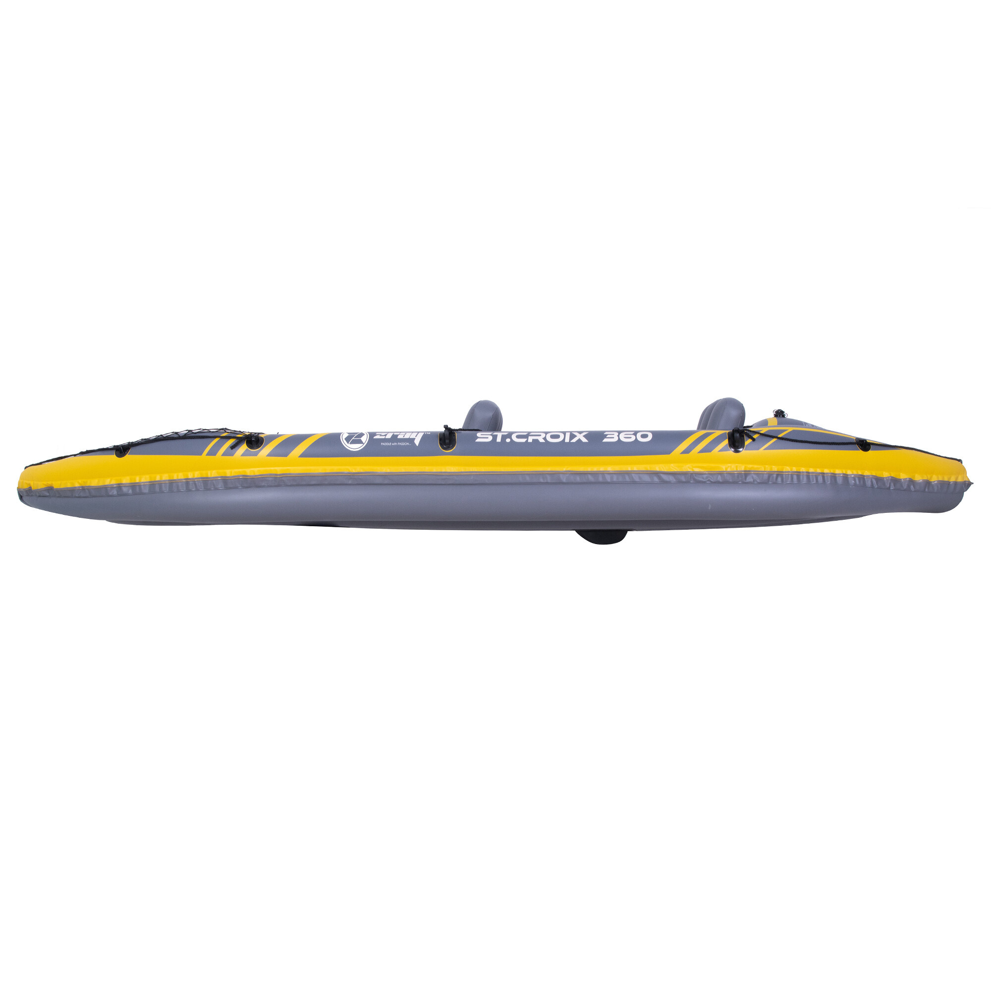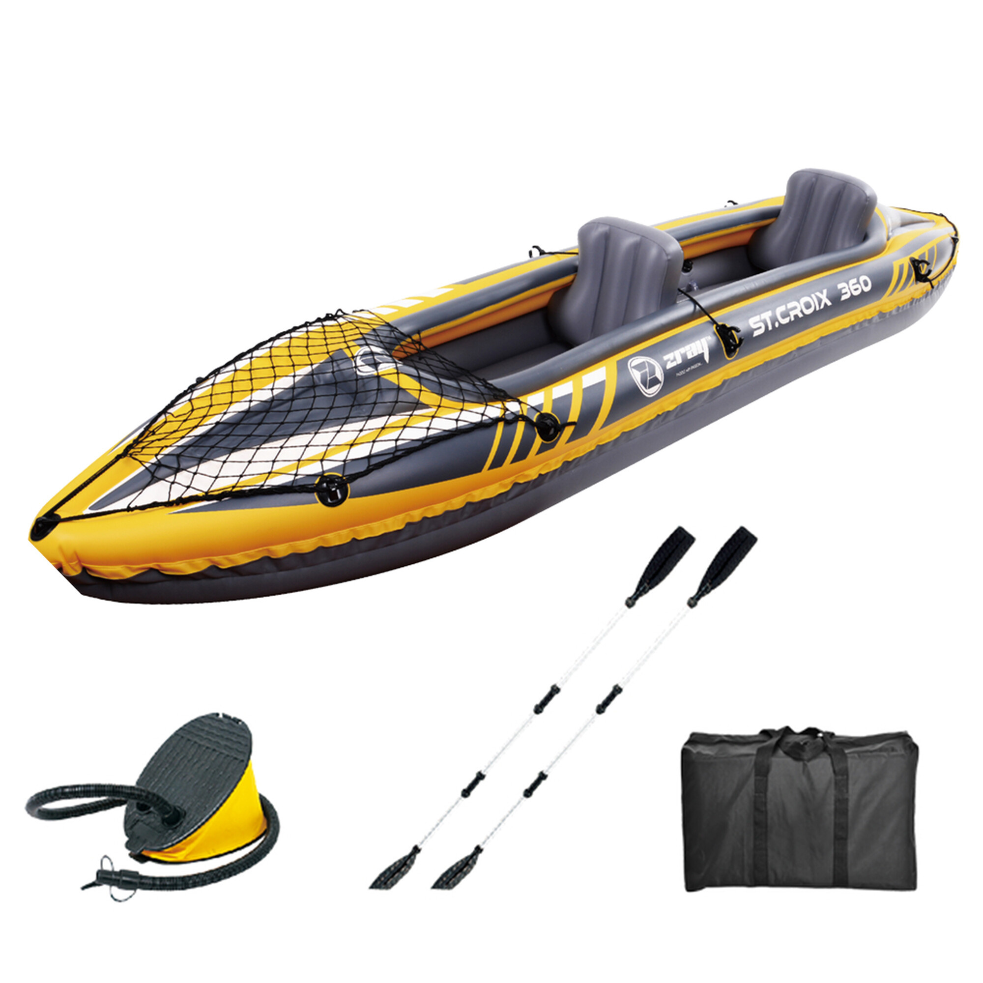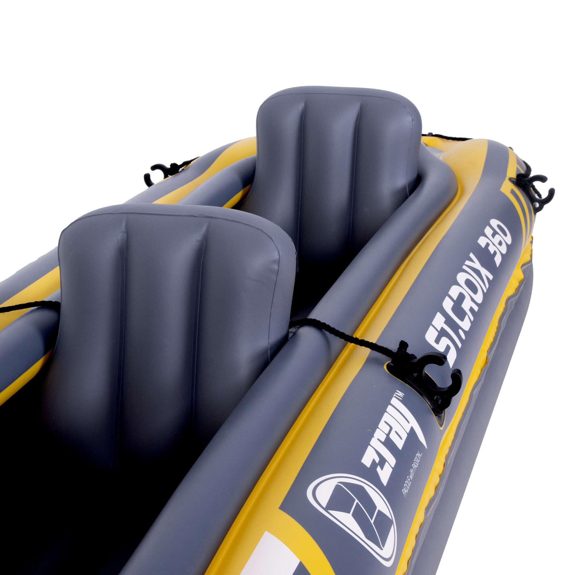 Kajak je opremljen z dvema zračnima komorama za večjo varnost, tako da varno priplujete do obale tudi v primeru predrtja ene plasti.Nosilci za vesla bodo zagotovili, da bodo vaša vesla vedno na svojem mestu in enostavno dostopna.