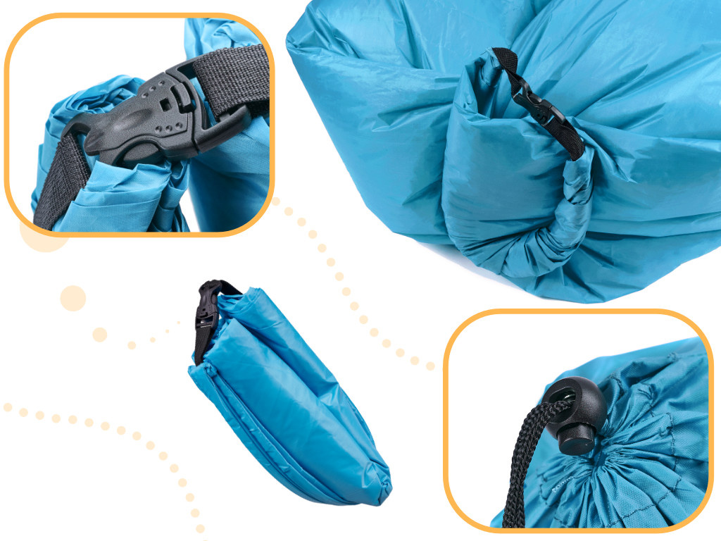 Praktičen etui olajša shranjevanje in prenašanje kavča. Lahko jo imate vedno pri sebi.In ko se sezona konča. Ni vam ga treba skrivati globoko v omari, lahko ga uspešno uporabite tudi doma, na primer na zabavah, ko je za goste odpeljano sedenje.