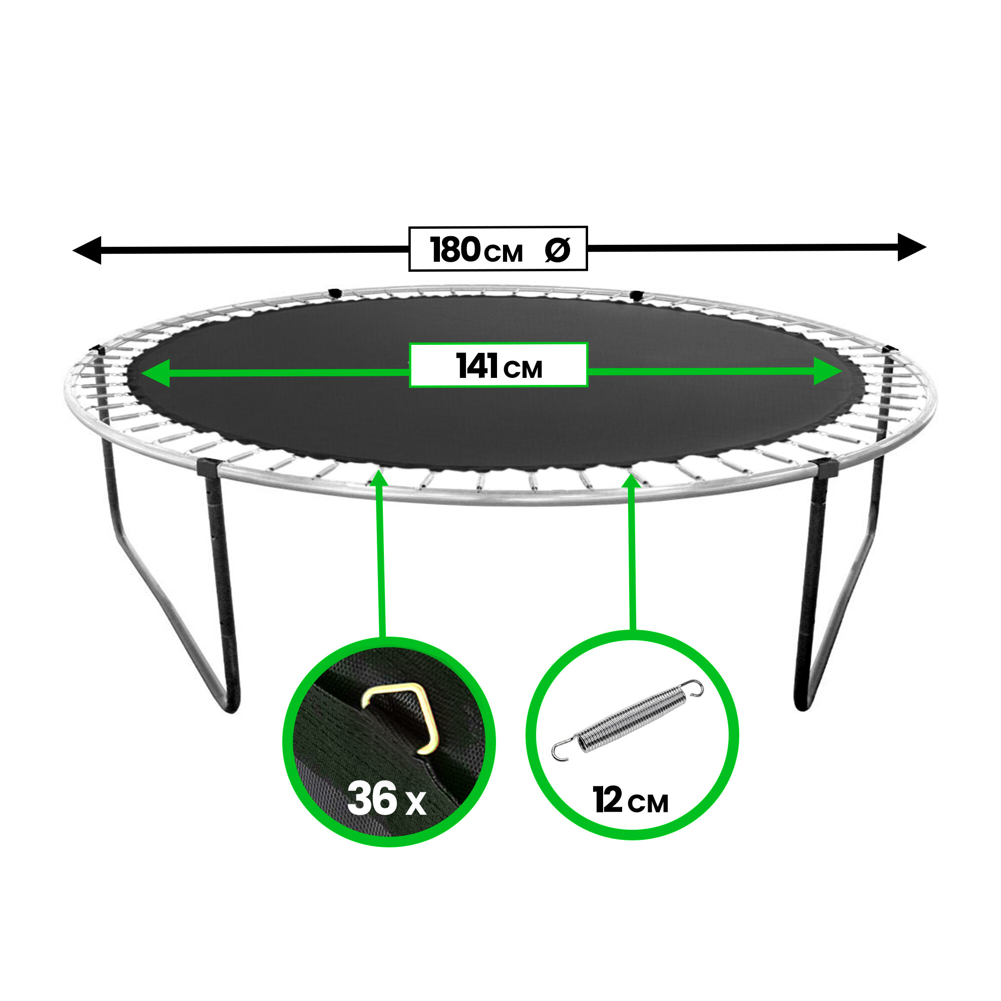 Nadomestna odbojna površina za trampolin velikosti 180 cm s 36 obroči.