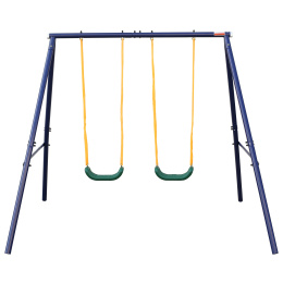 Otroška vrtna gugalnica za dva otroka, v modernem dizajnu, primerna za zunanjo uporabo.