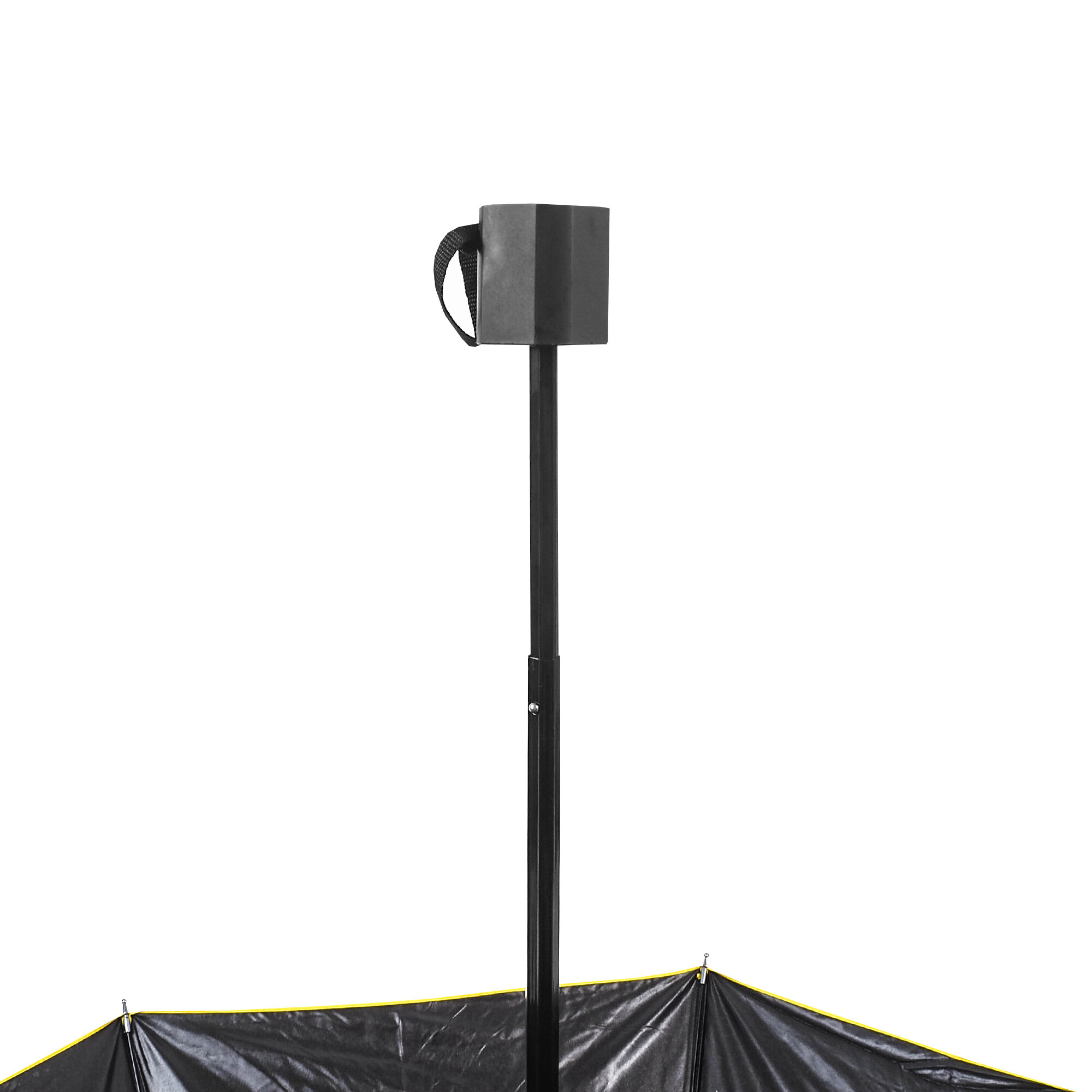 Dežnik ima zaobljene konce in trdno konstrukcijo, ki prenese tudi močnejši veter.