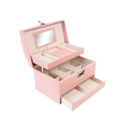Elegantna rožnata barva daje škatlici za nakit brezčasen videz, ki se prilega vsakemu interierju. Naj bo v spalnici, kopalnici ali na toaletni mizici, vedno bo delovala kot stilski dodatek.