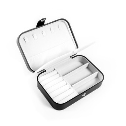 Elegantna črna barva daje škatli za nakit brezčasen videz, ki se prilega vsakemu interierju. Naj bo v spalnici, kopalnici ali na toaletni mizici, vedno bo delovala kot stilski dodatek.