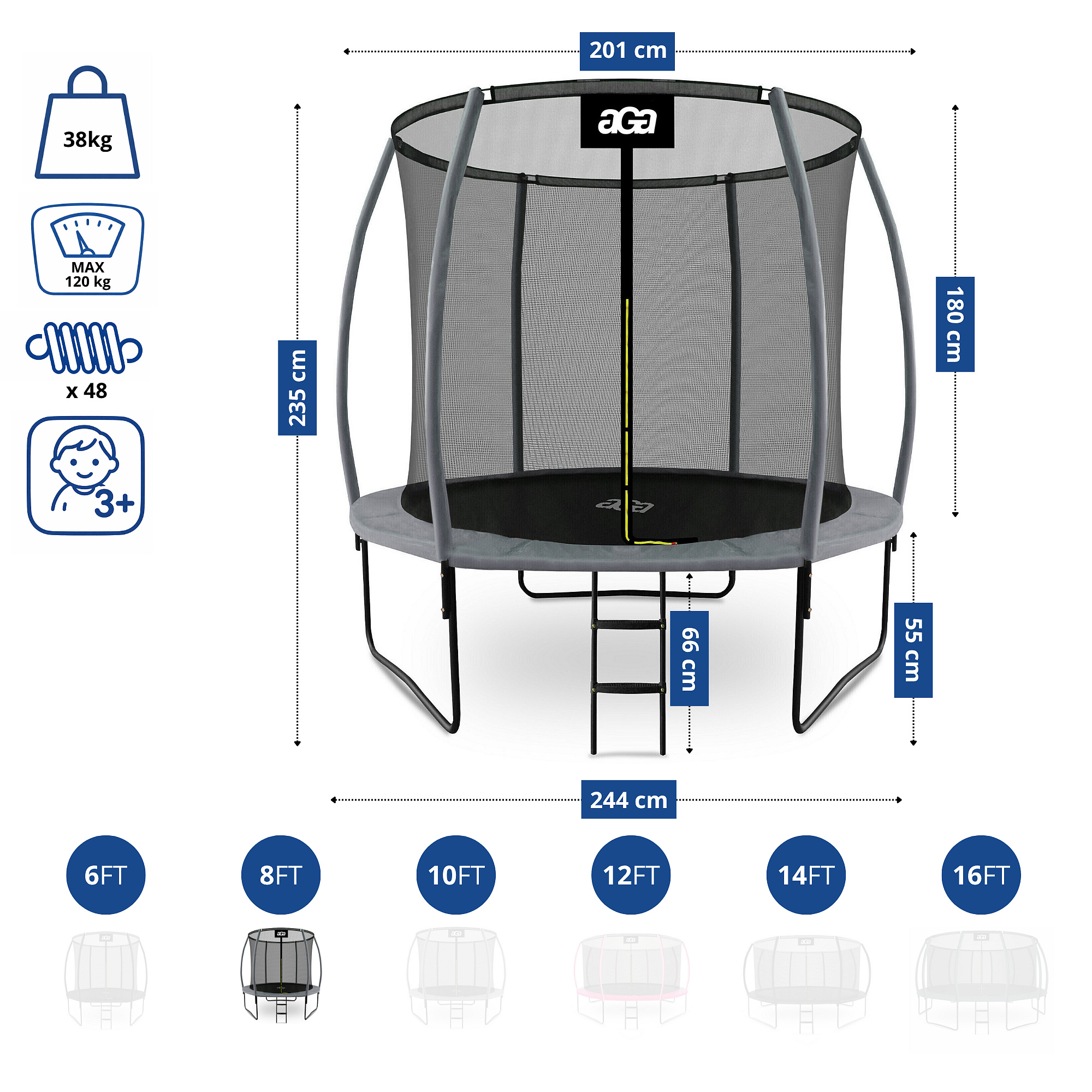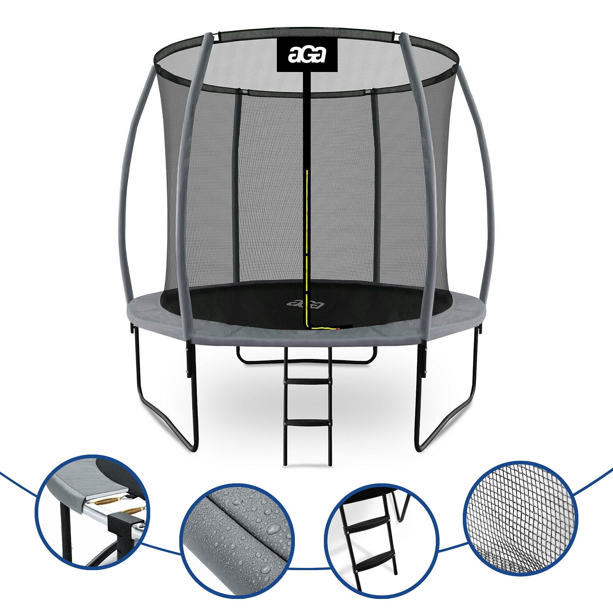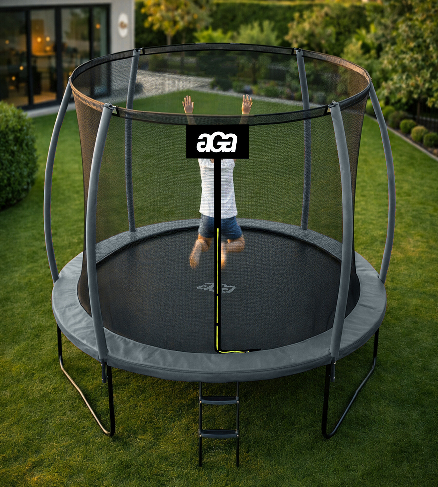 Trampolin Aga z notranjo zaščitno mrežo je bila posebej zasnovana in izdelana za varno zabavo otrok in odraslih.