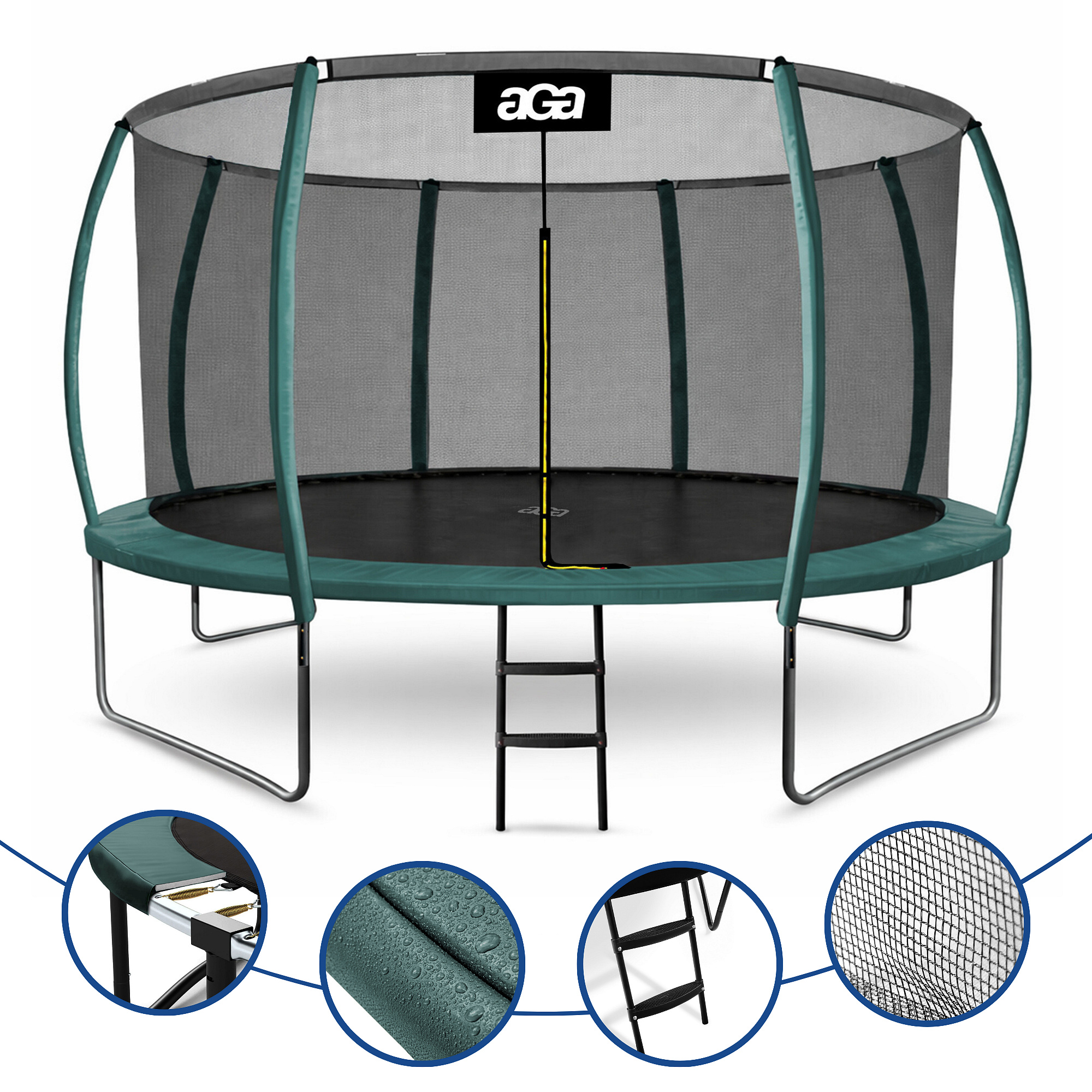 Trampolin Aga z notranjo zaščitno mrežo je bila posebej zasnovana in izdelana za varno zabavo otrok in odraslih.
