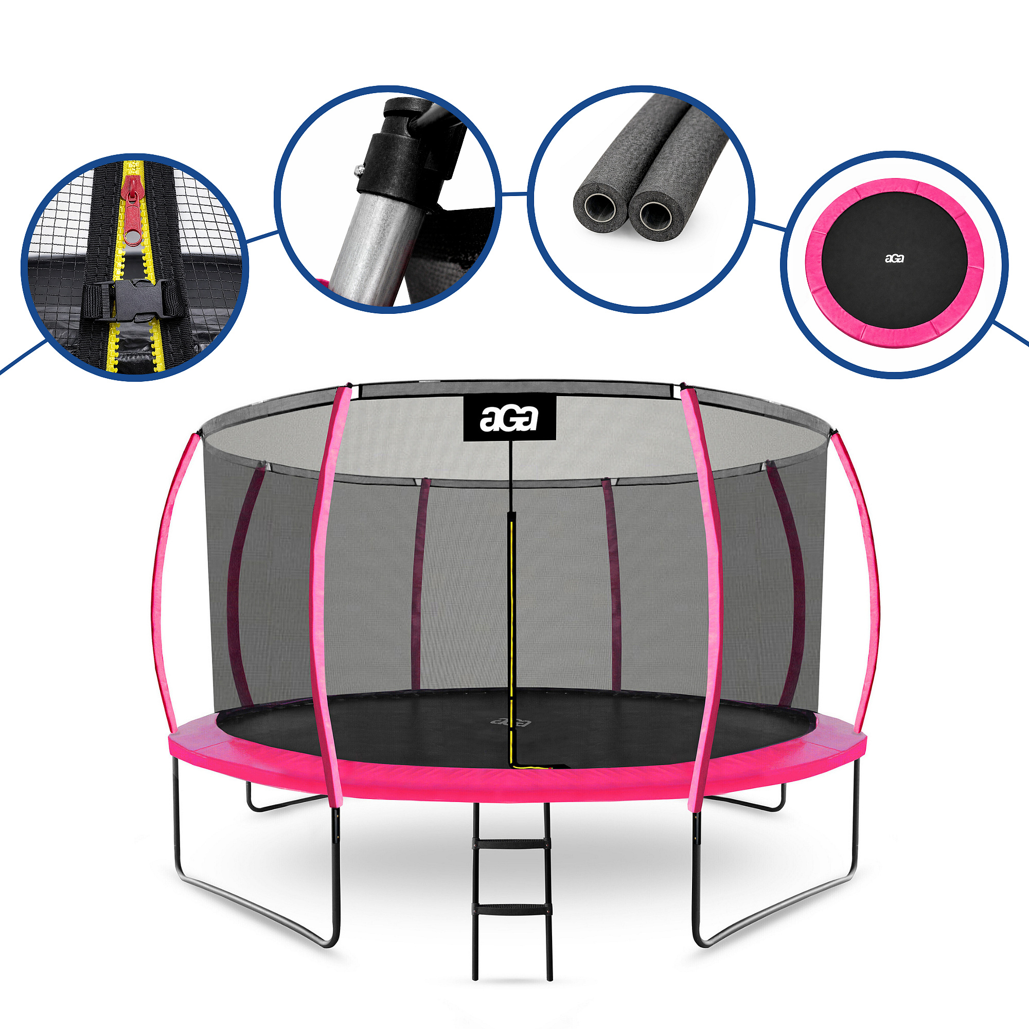Trampolin Aga z notranjo zaščitno mrežo je bila posebej zasnovana in izdelana za varno zabavo otrok in odraslih.