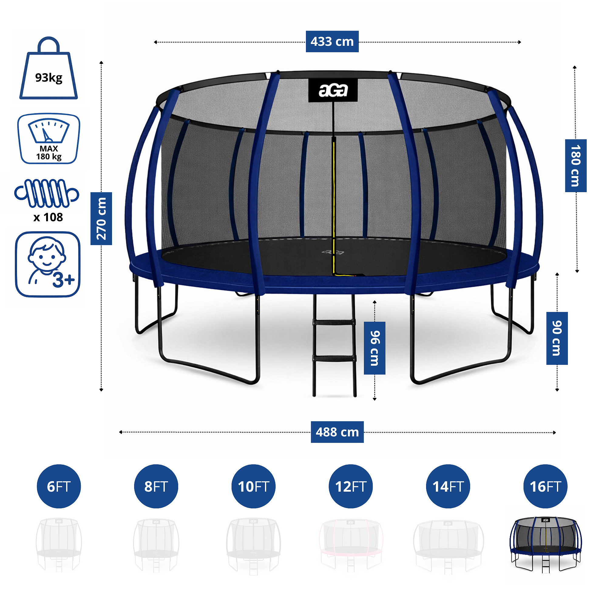 - Premer trampolina: 500 cm (16 ft)