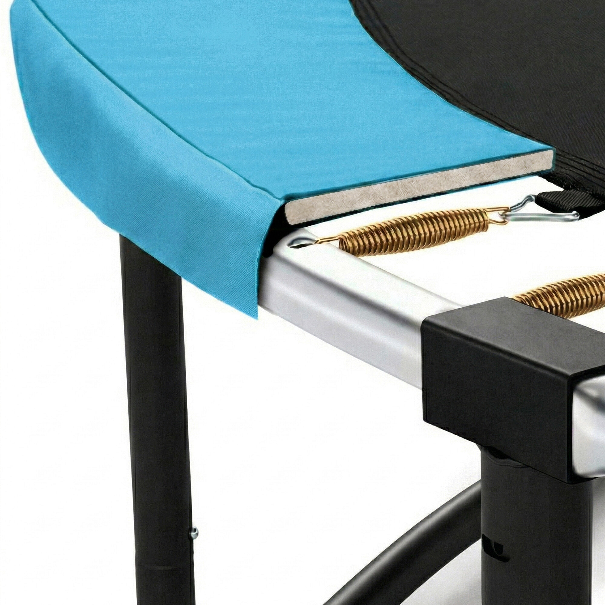 Maksimalno možno varnost zagotavlja oblazinjen obod (pokrov vzmeti), ki prekriva vzmeti po celotnem obodu trampolina.