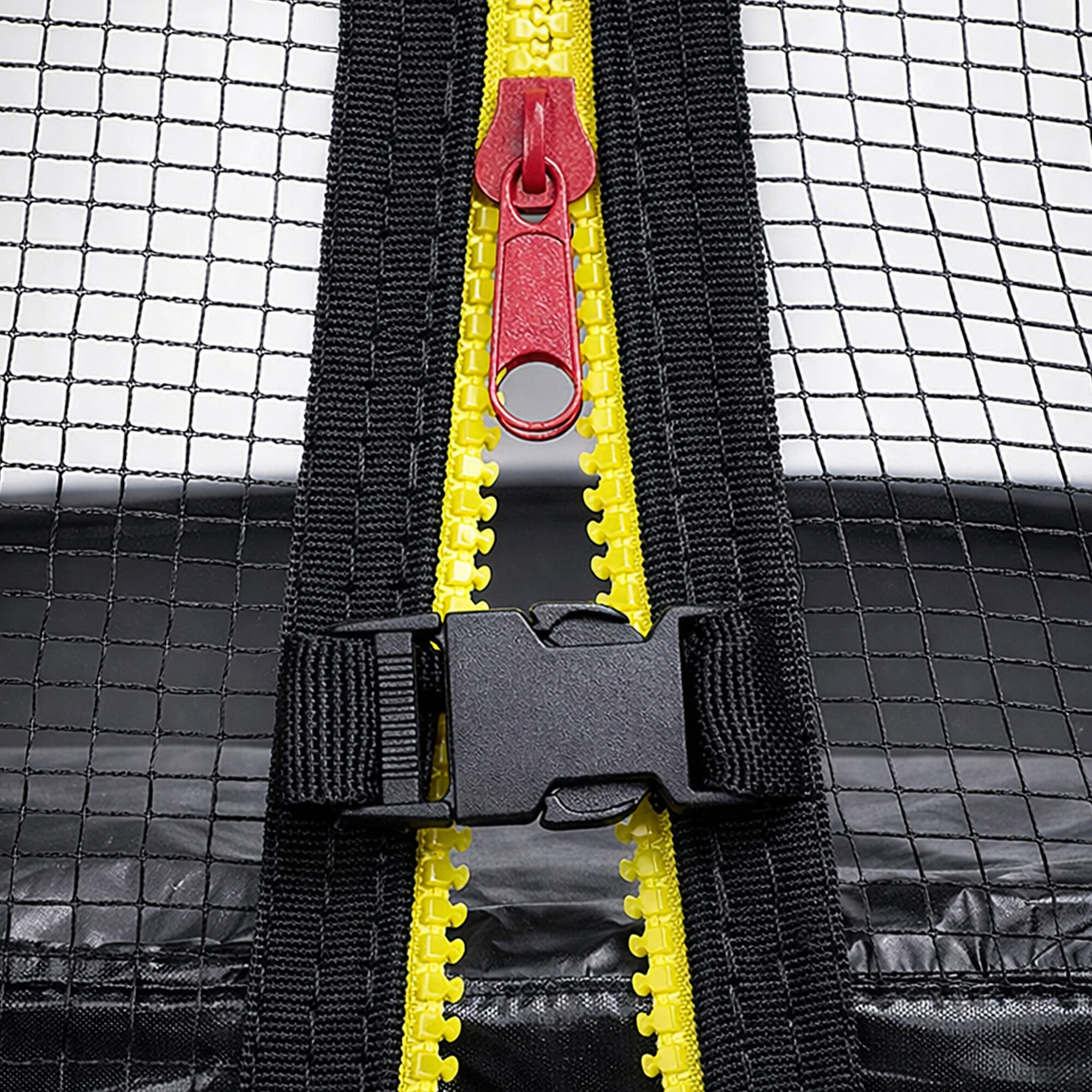 Zgornja zaščitna mreža ima vhod z zadrgo in varnostno ključavnico proti nenamernemu odpiranju.