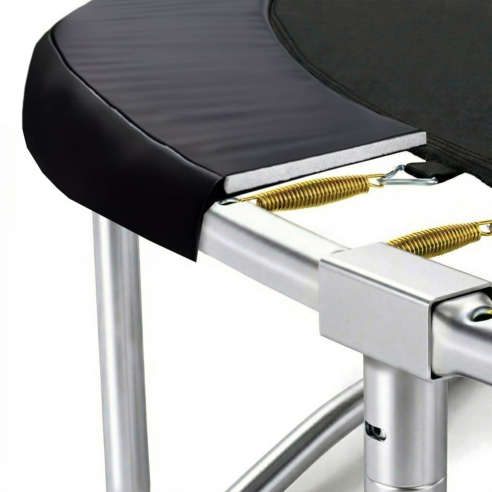 Maksimalno možno varnost zagotavlja oblazinjen obod (pokrov vzmeti), ki prekriva vzmeti po celotnem obodu trampolina.