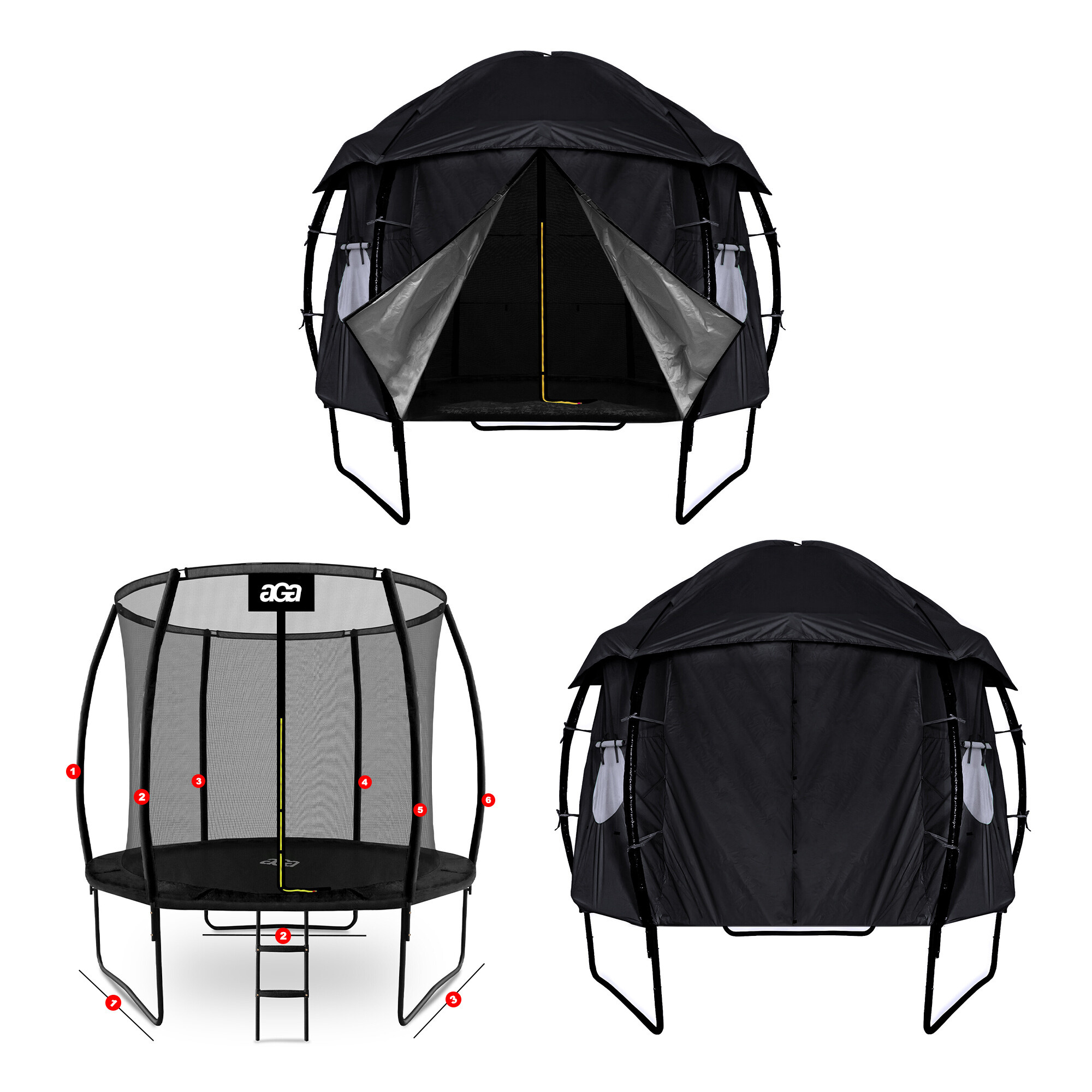 Specifikacije šotora Aga za trampolin EXCLUSIVE velikosti 250 cm (8 ft).