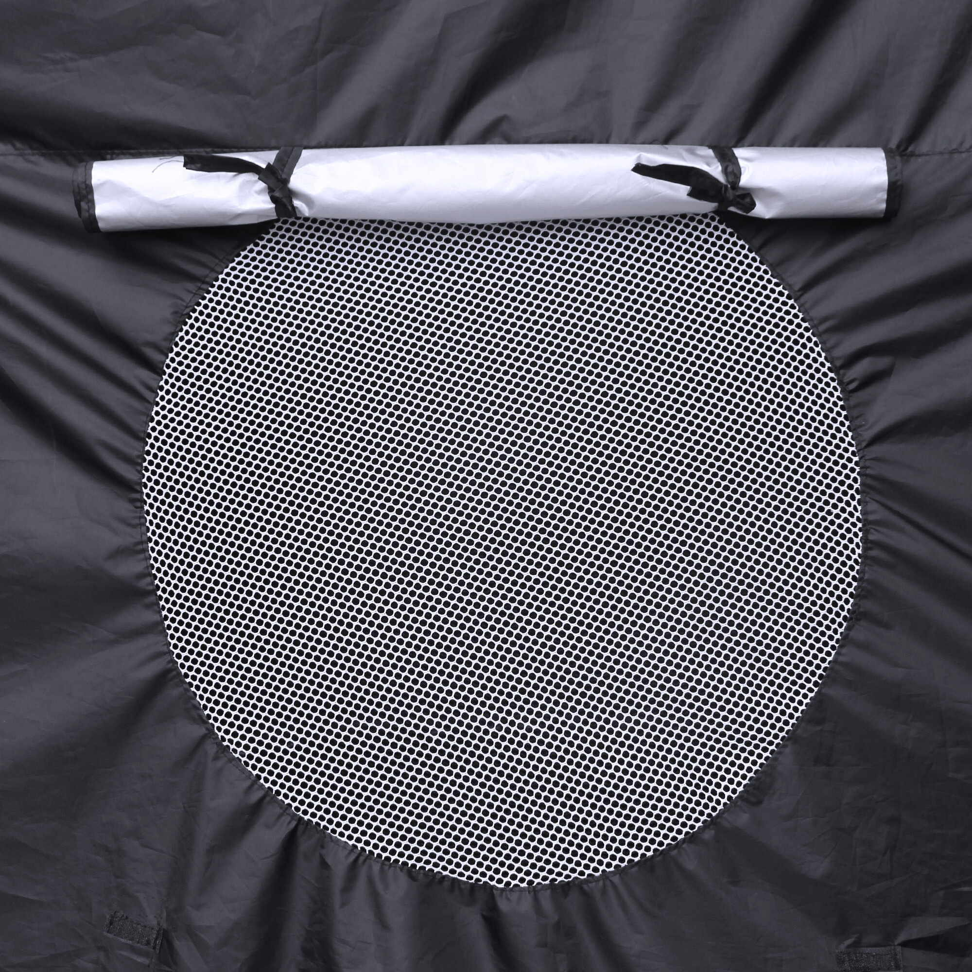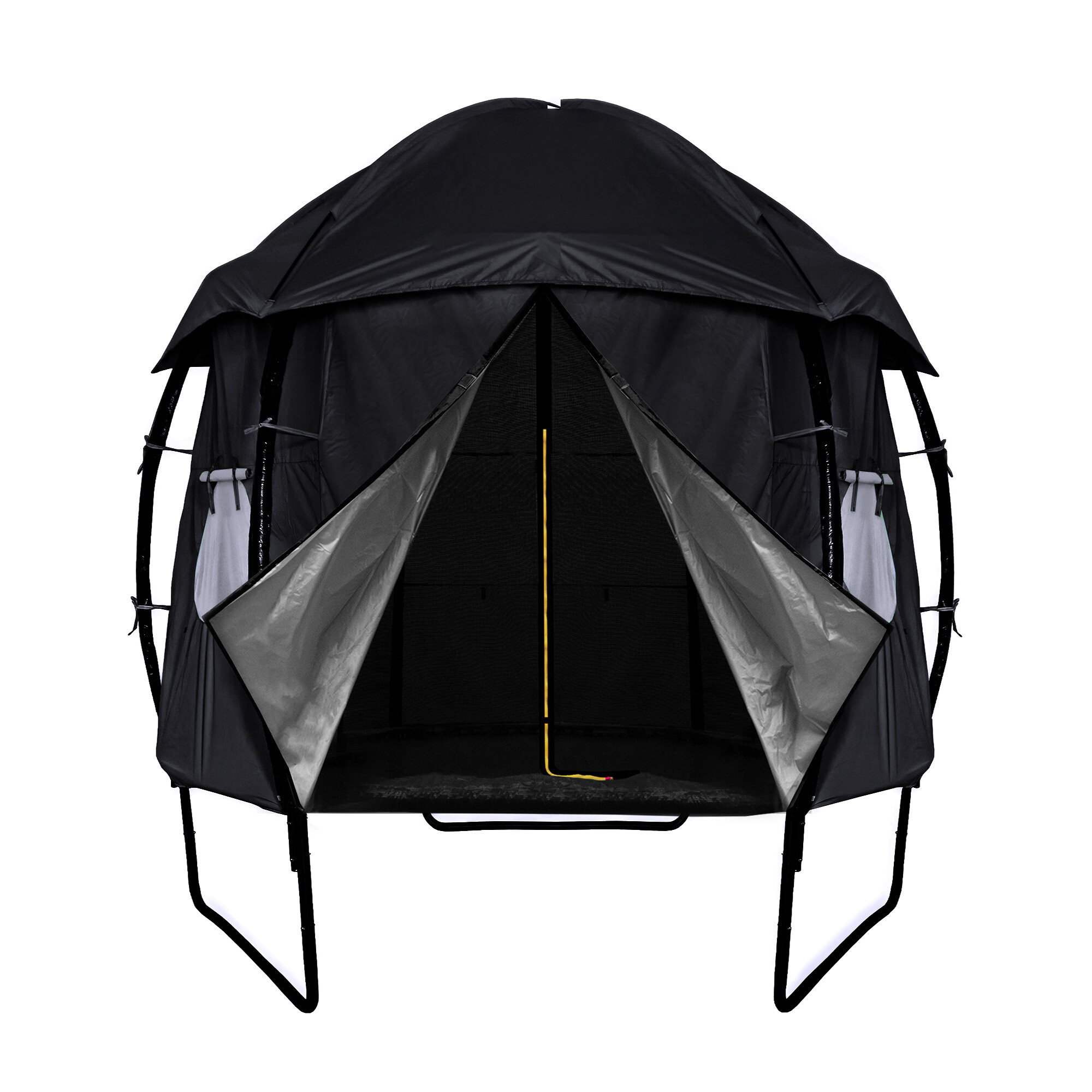 In v času, ko trampolina ni aktivno uporabljena, pomaga šotor zaščititi odbojno površino pred onesnaženjem in UV sevanjem.