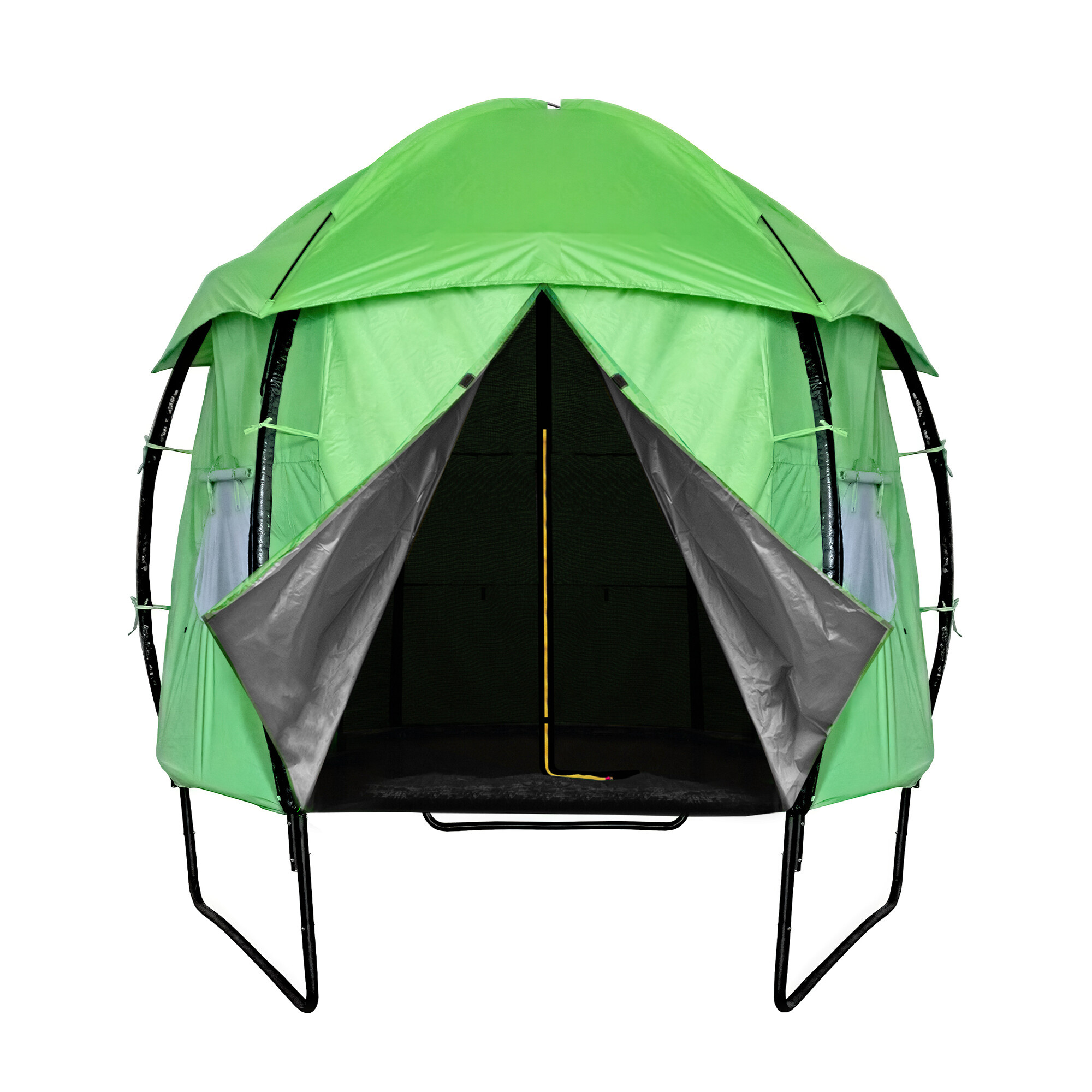 In v času, ko trampolina ni aktivno uporabljena, pomaga šotor zaščititi odbojno površino pred onesnaženjem in UV sevanjem.
